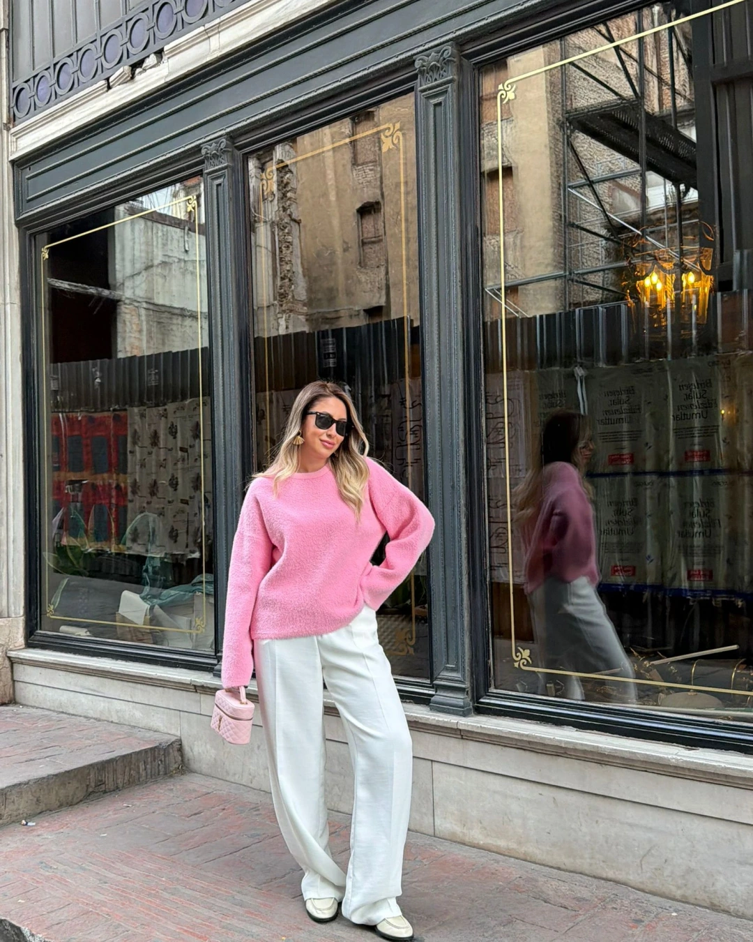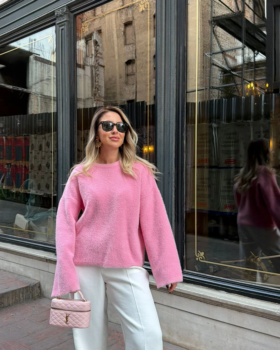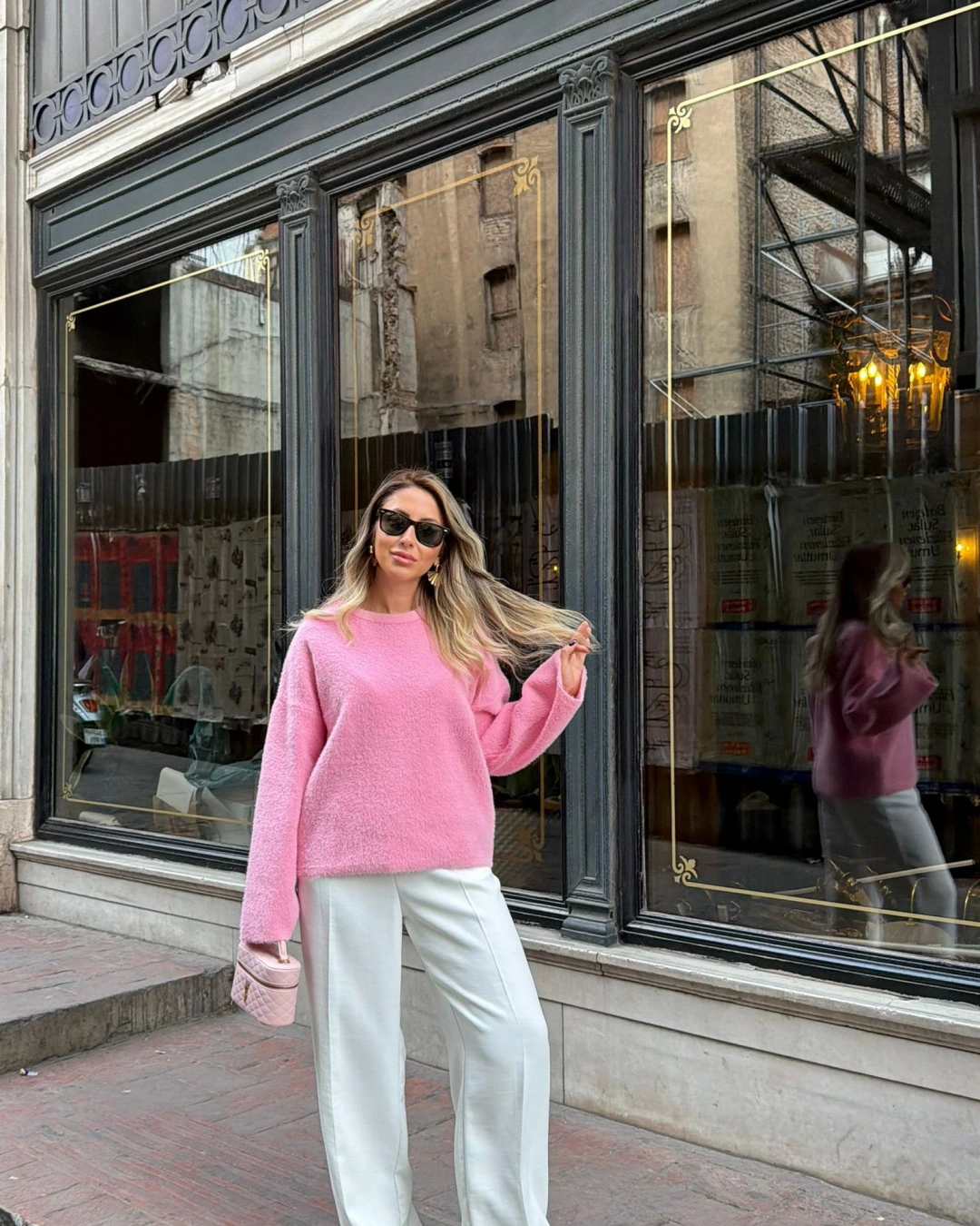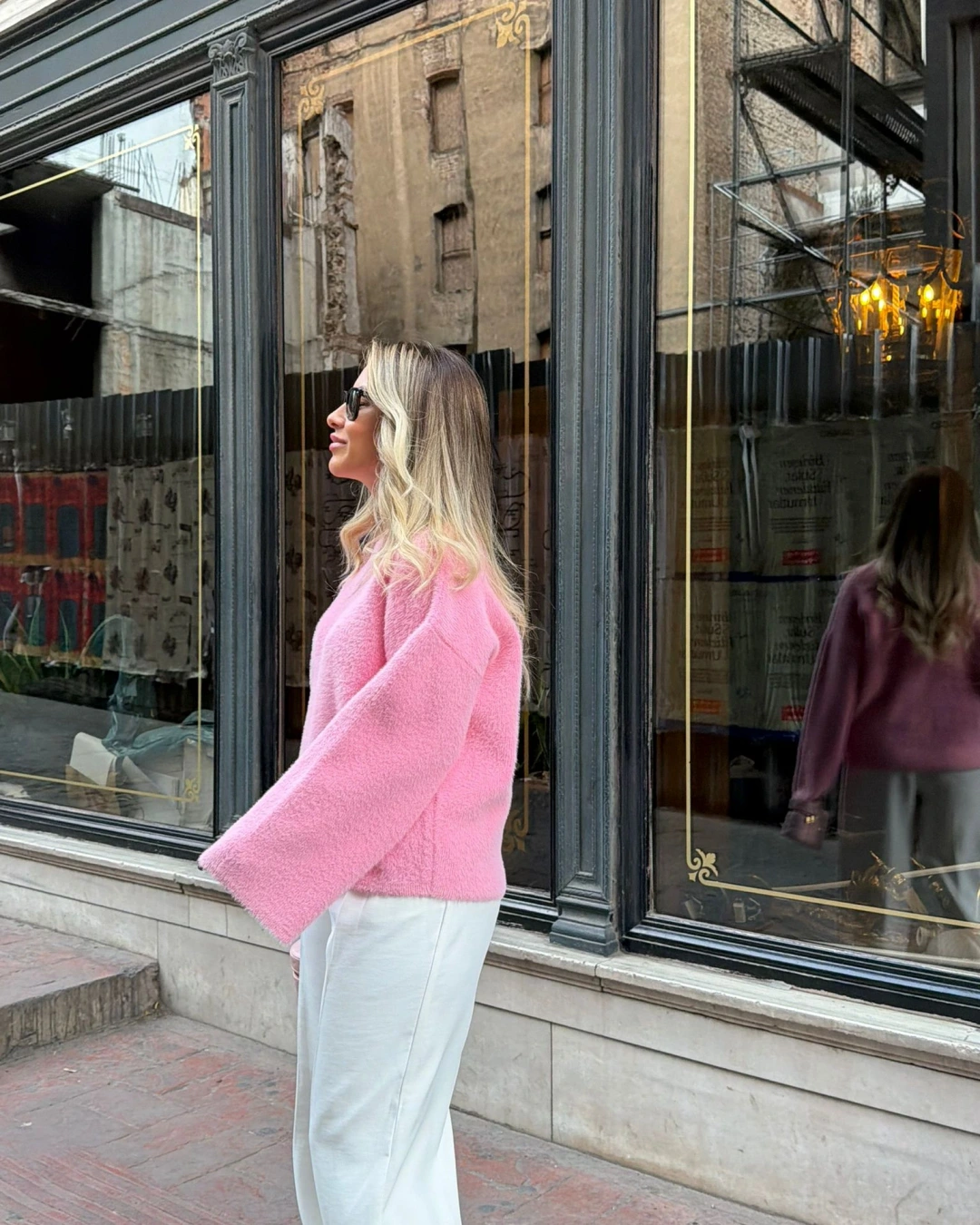 PEMBE YUMOŞ DOKULU KAŞMİR KAZAK
