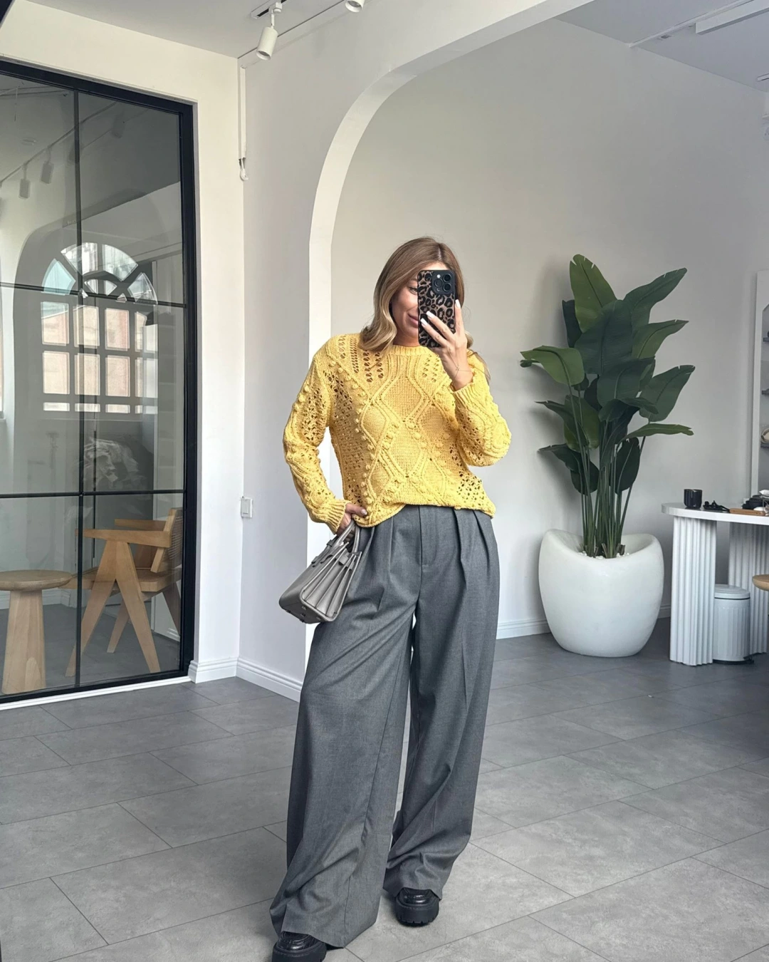 SARI BİSİKLET AJURLU TRİKO KAZAK