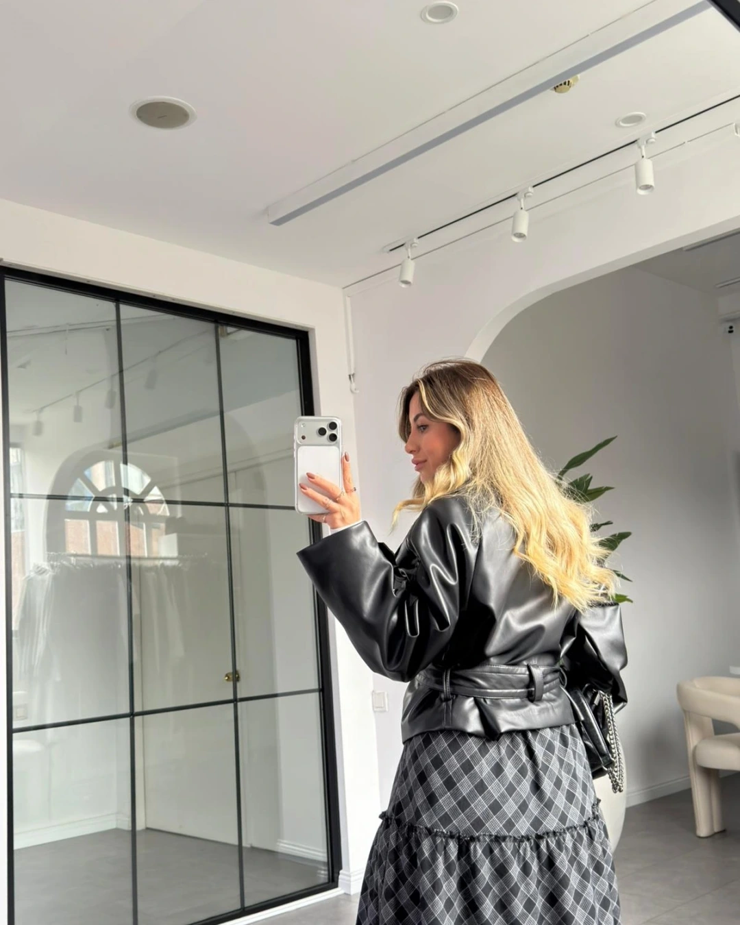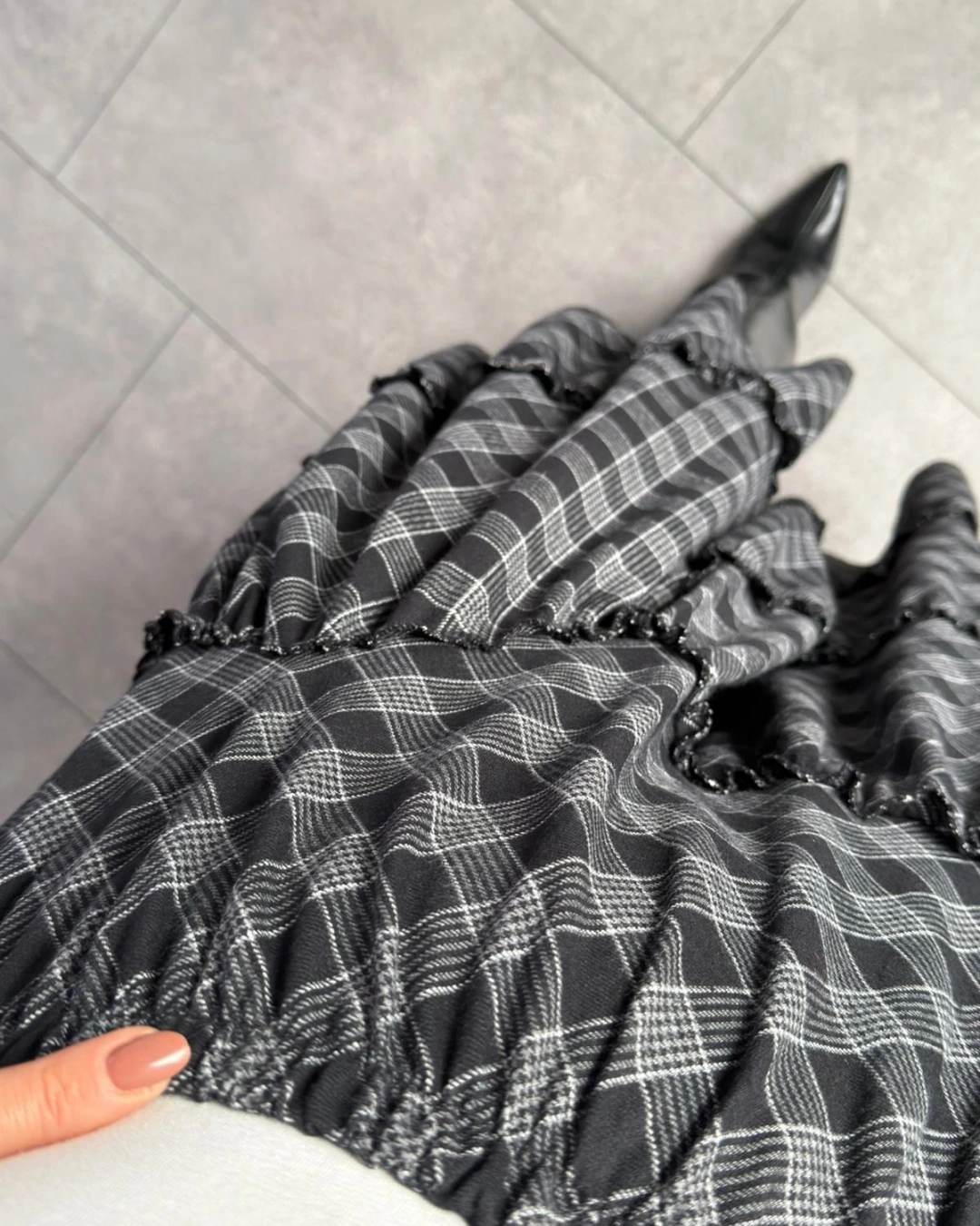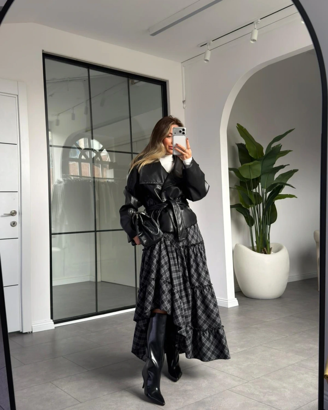 SİYAH ANTRASİT EKOSE DESENLİ ASİMETRİK ETEK