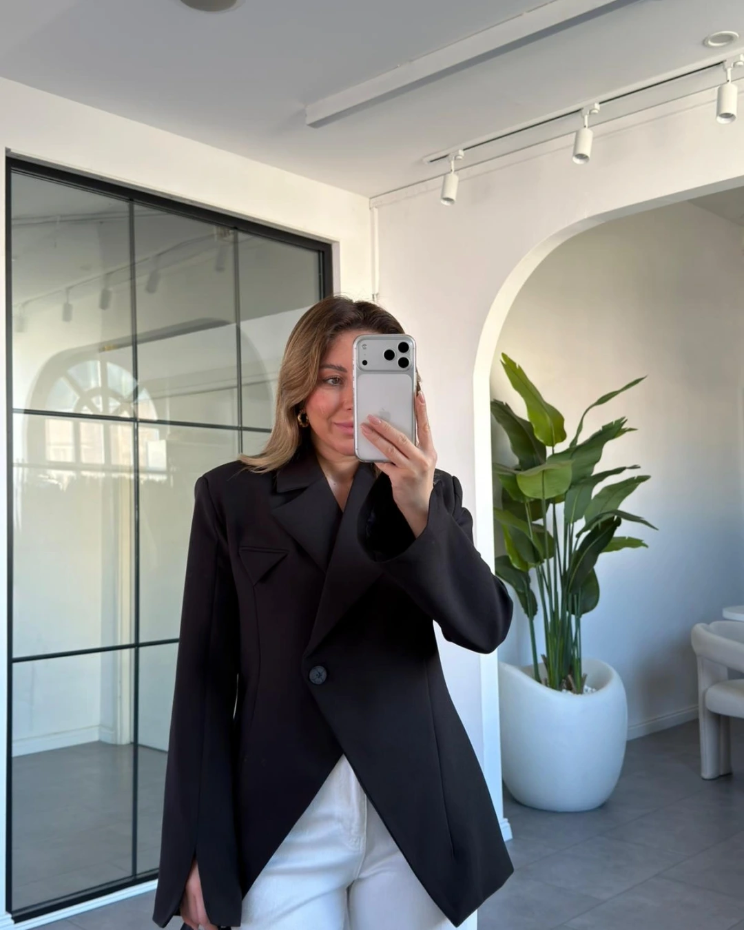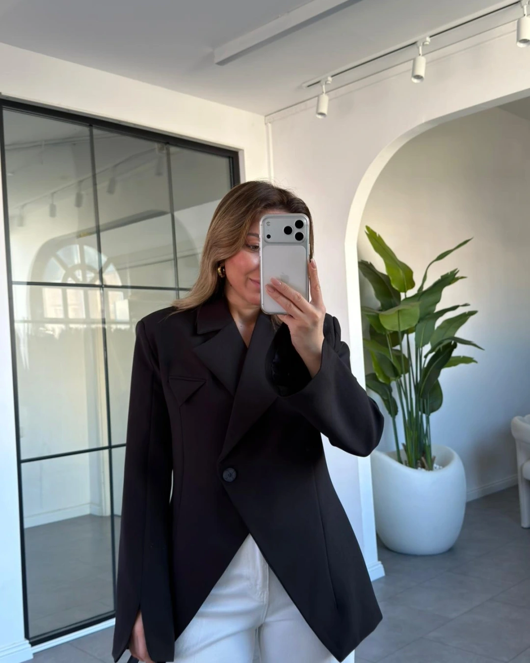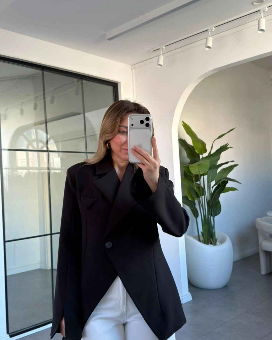 SİYAH ASİMETRİK ATLAS CEKET 9703