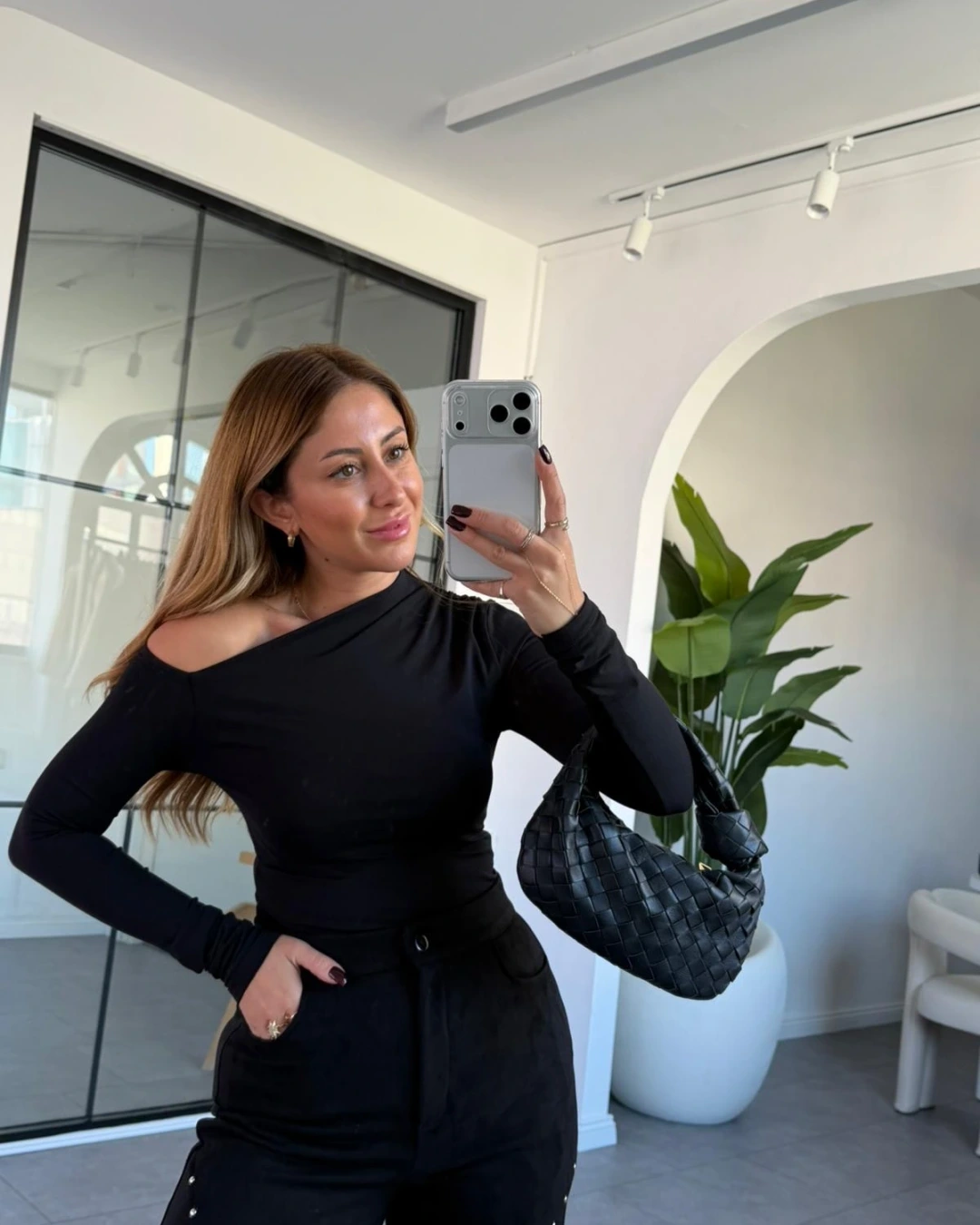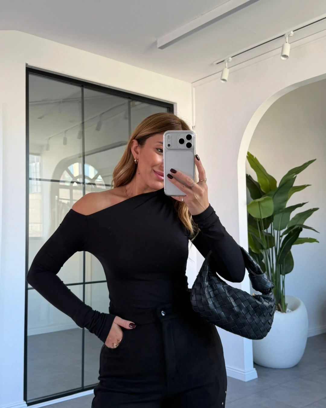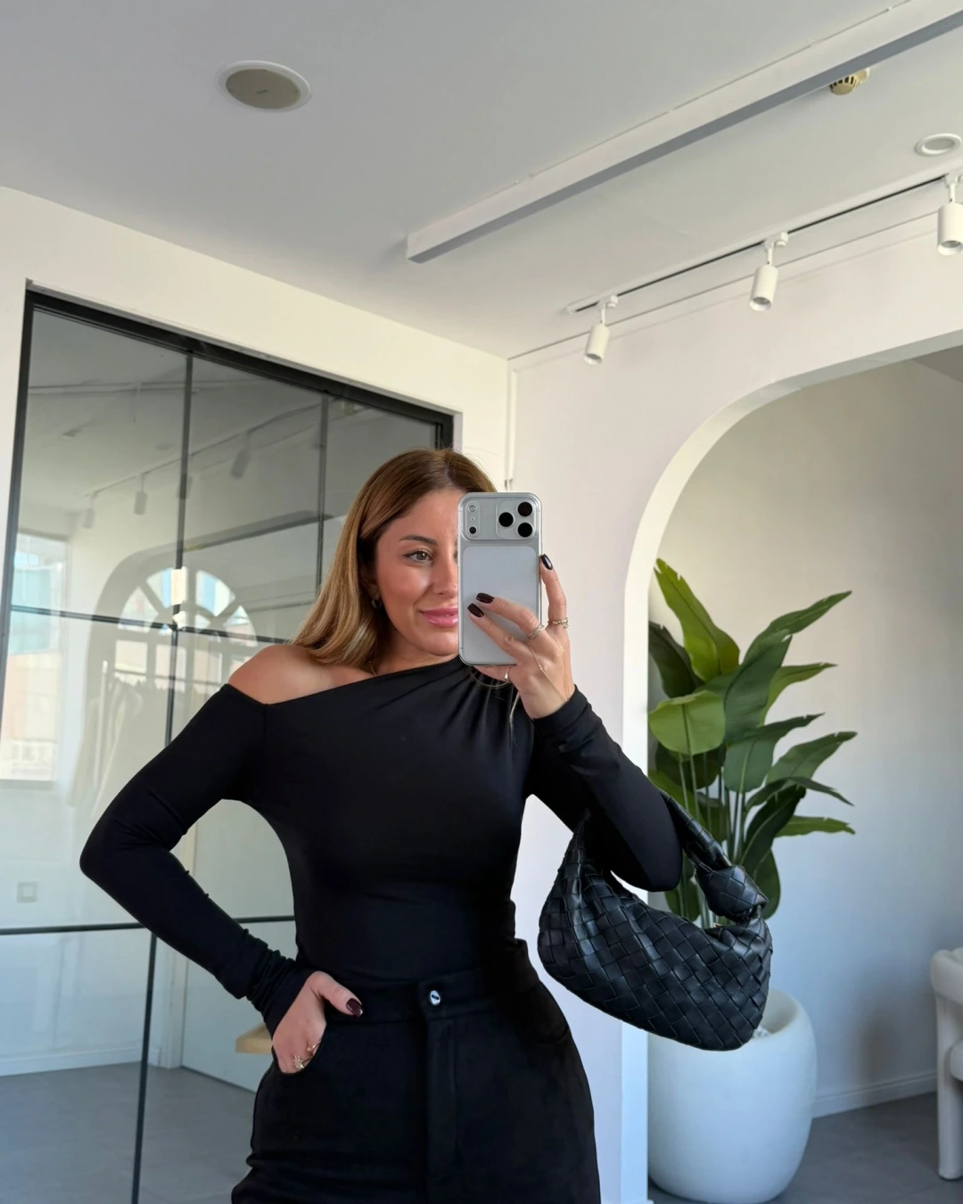 SİYAH ASİMETRİK YAKA BLUZ