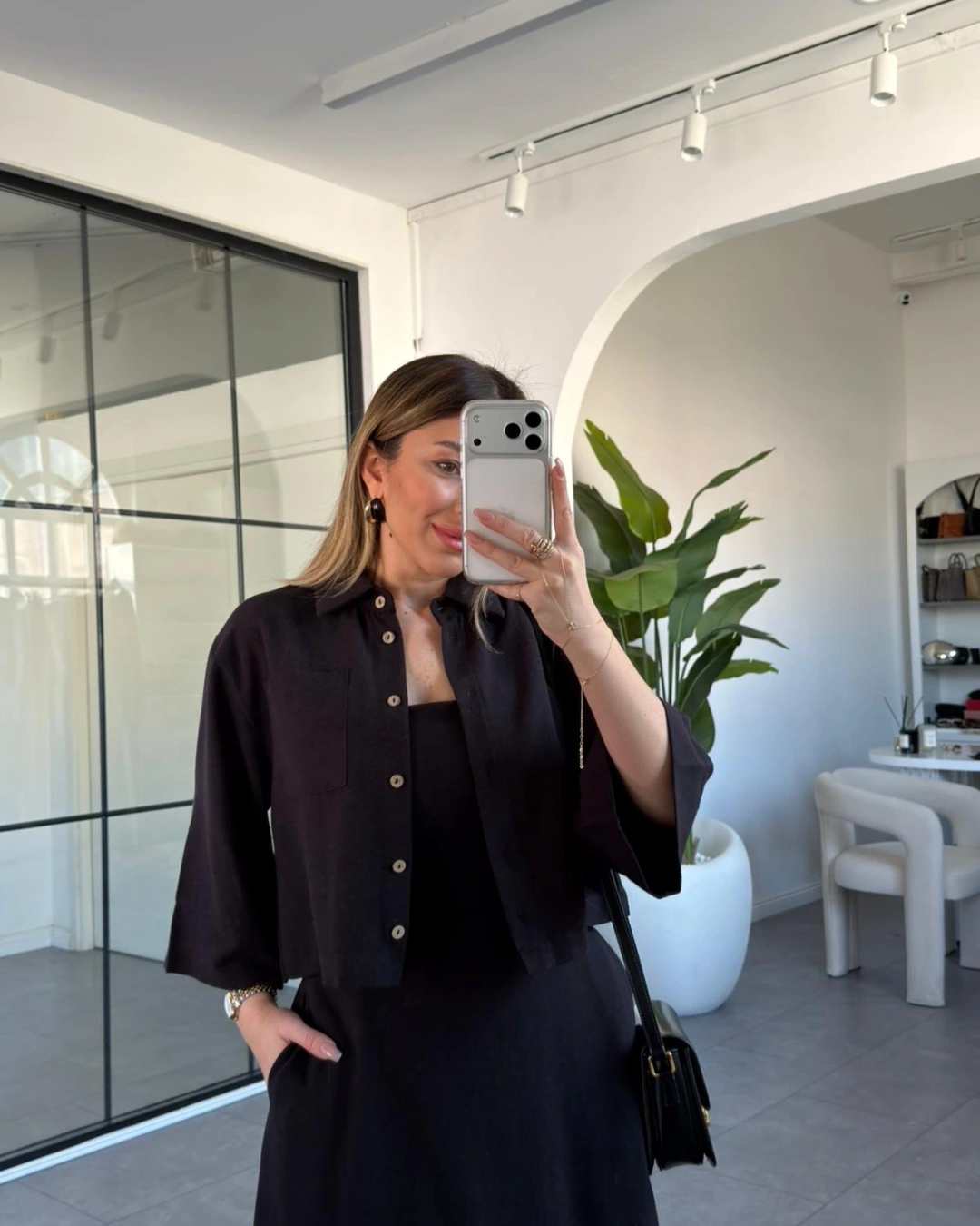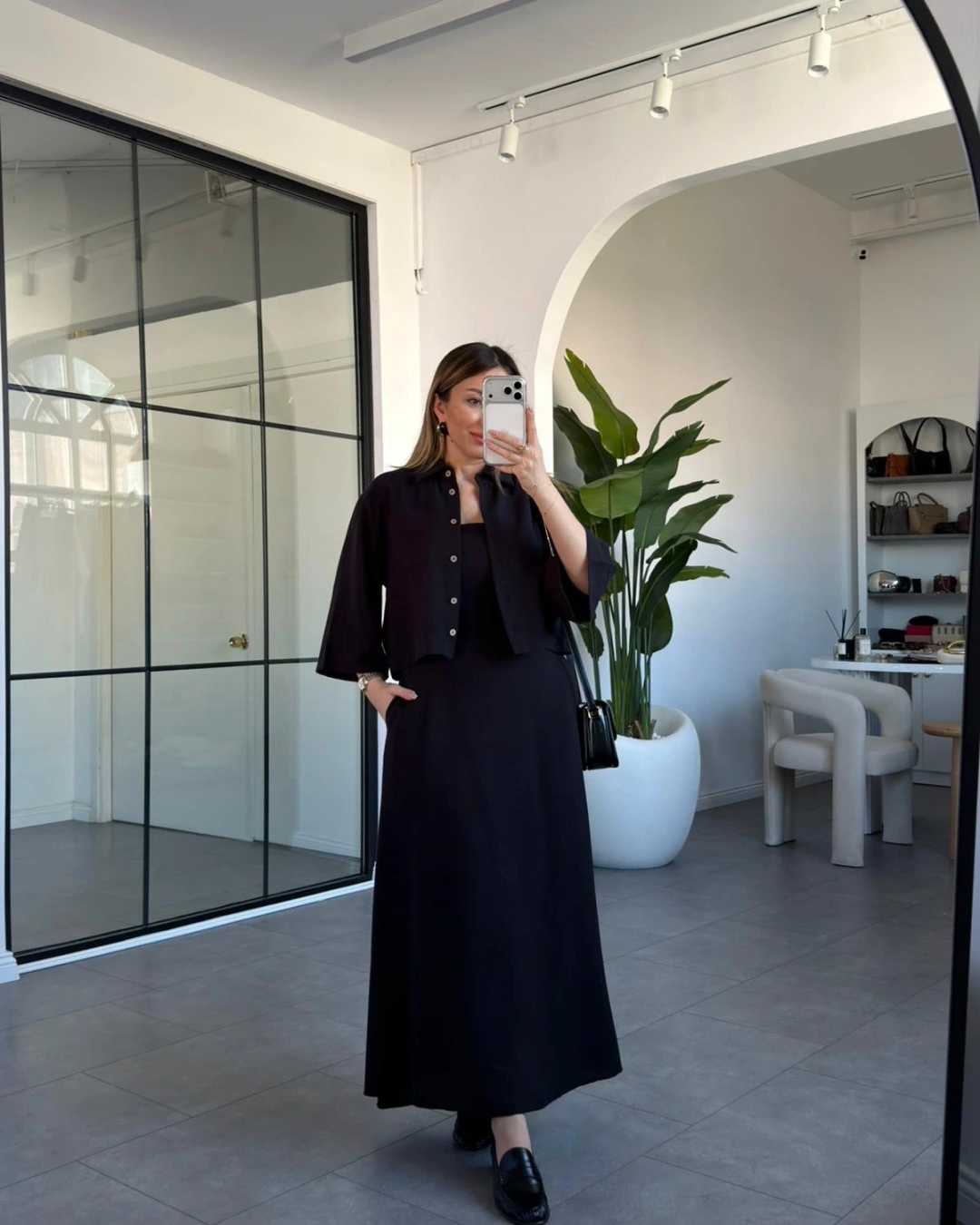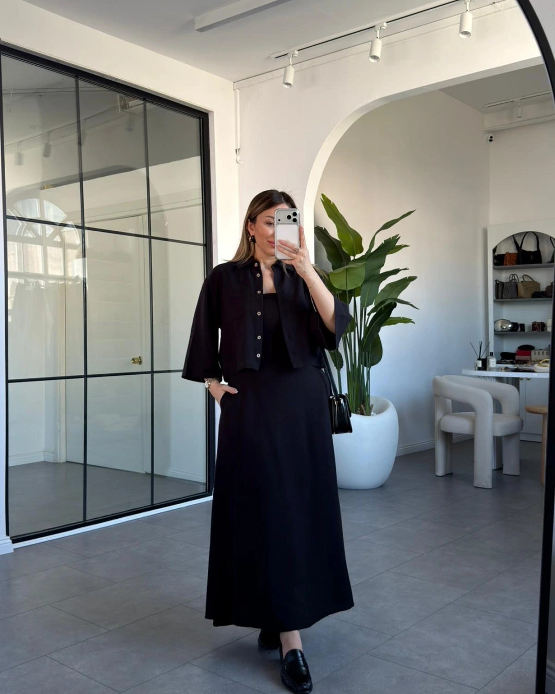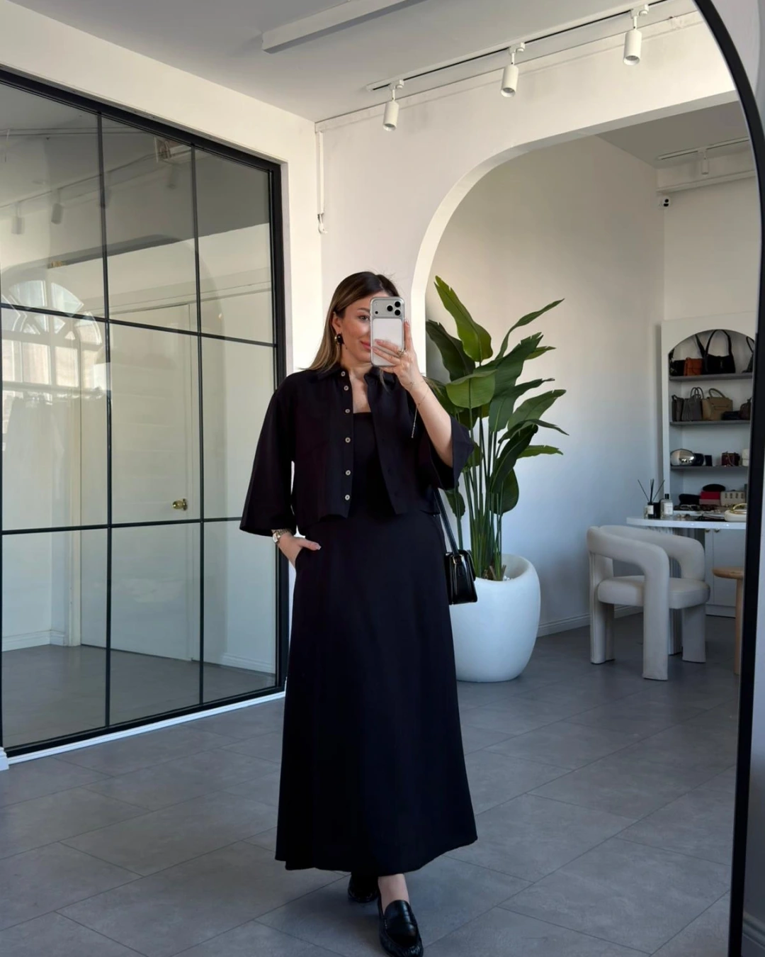 SİYAH ASKILI ELBİSE VE GÖMLEK TAKIM 9679