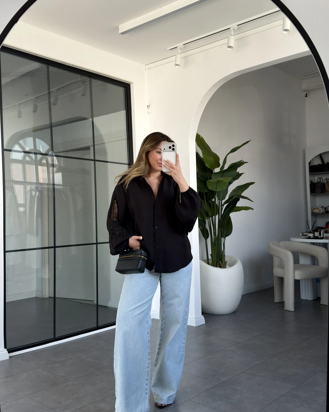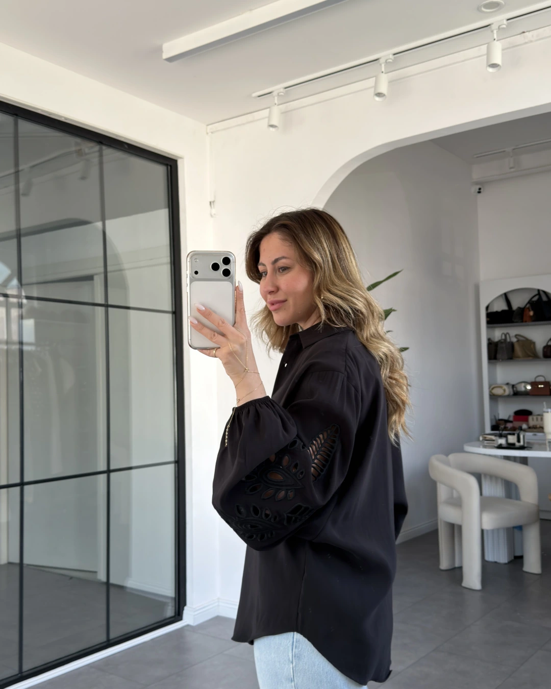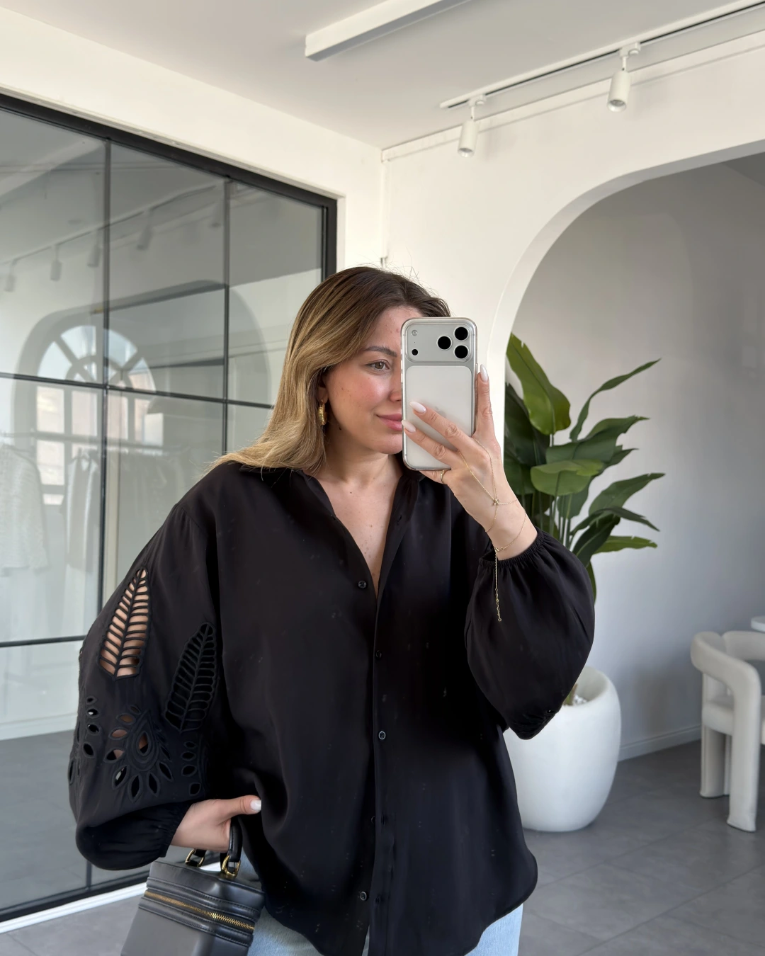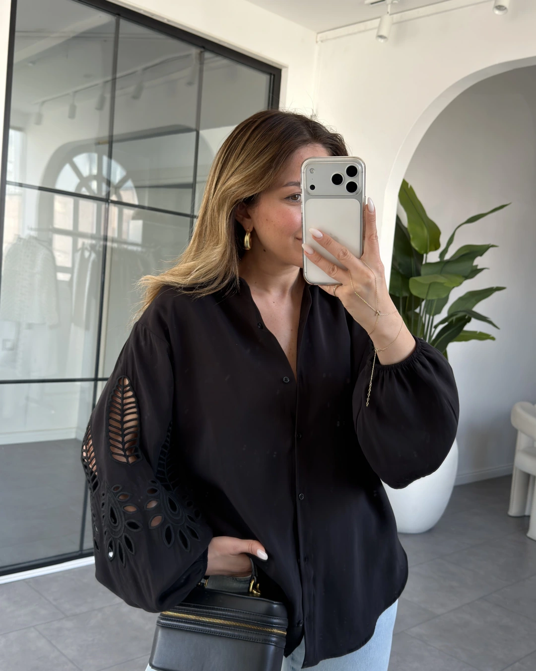 SİYAH BALON KOL NAKIŞLI GÖMLEK 4588