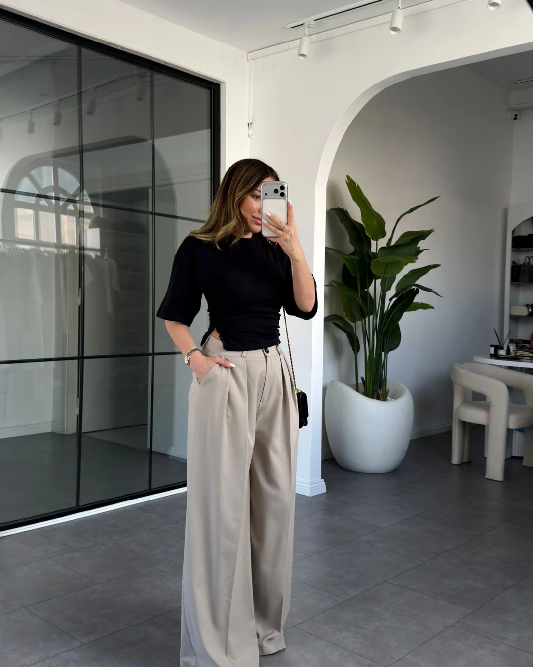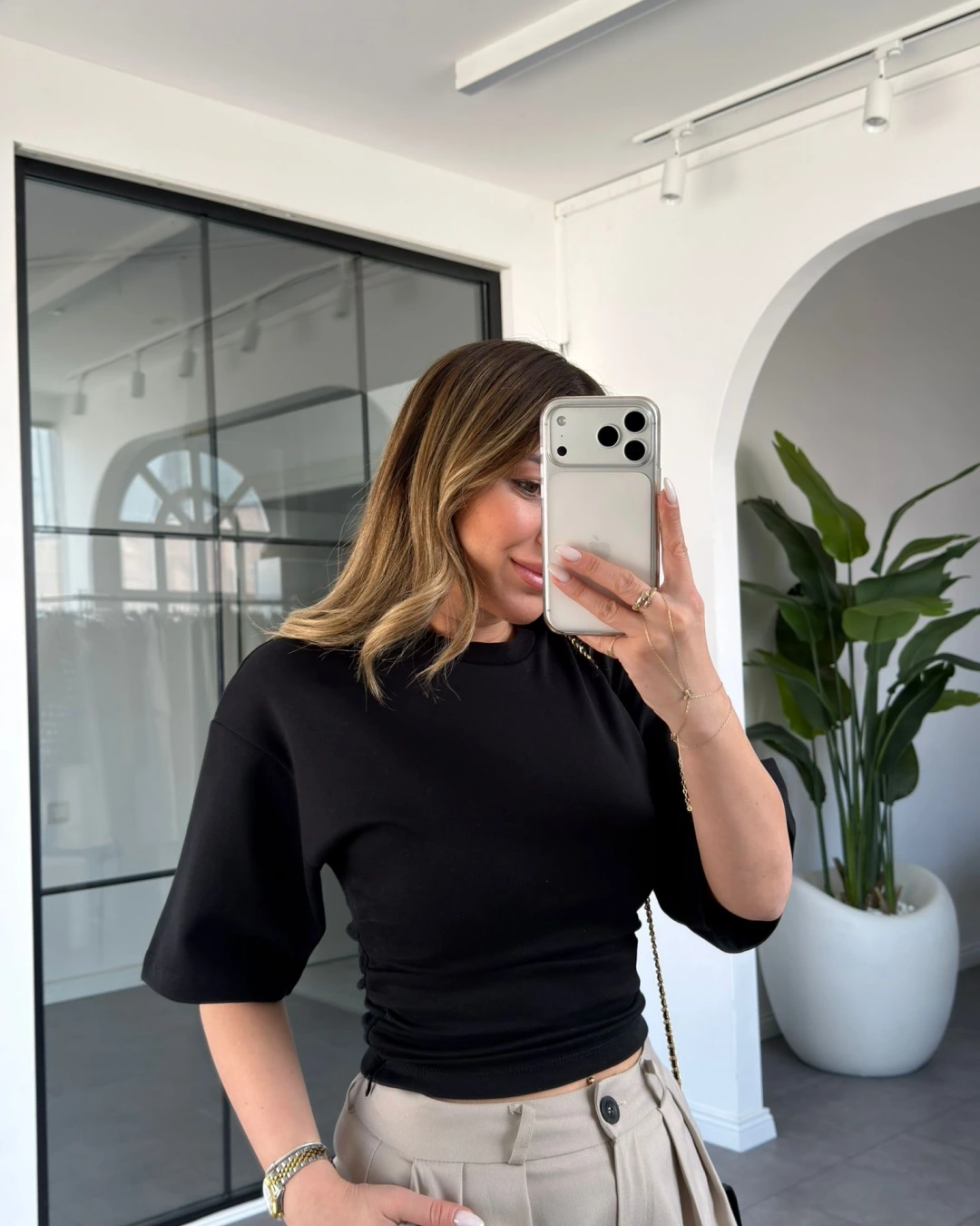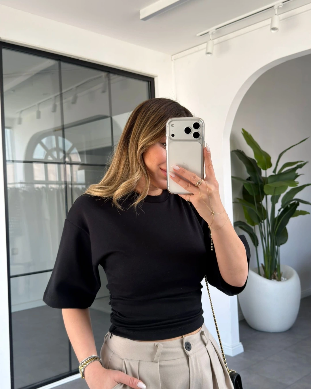 SİYAH BELDEN FERMUAR DETAYLI T-SHIRT 1003