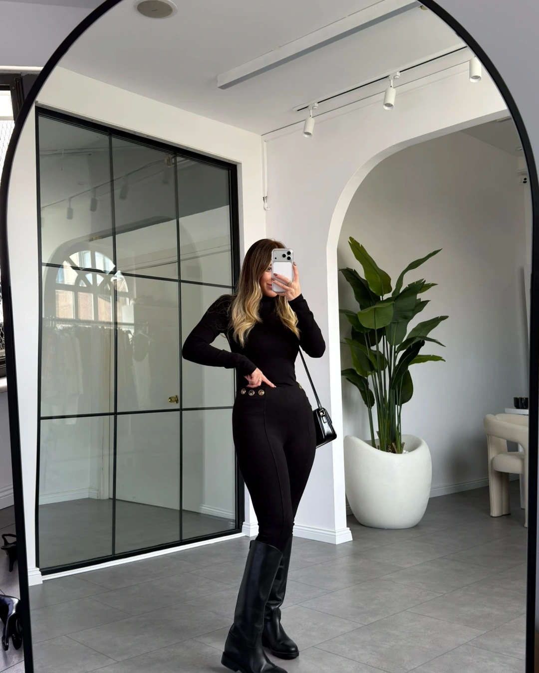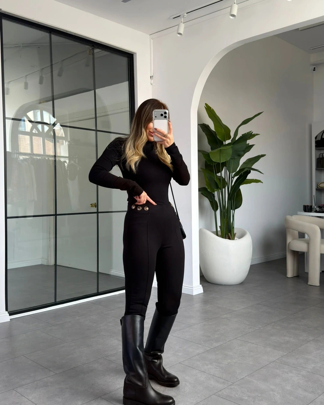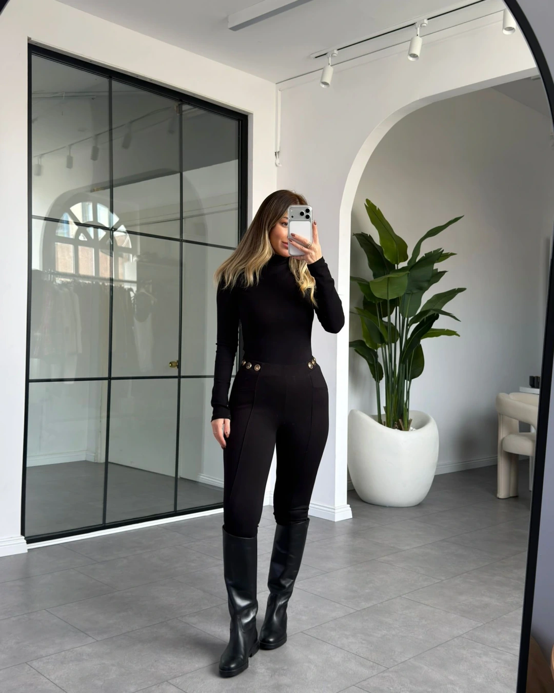 SİYAH BELİ GOLD DÜĞME DETAYLI ÇELİK TAYT