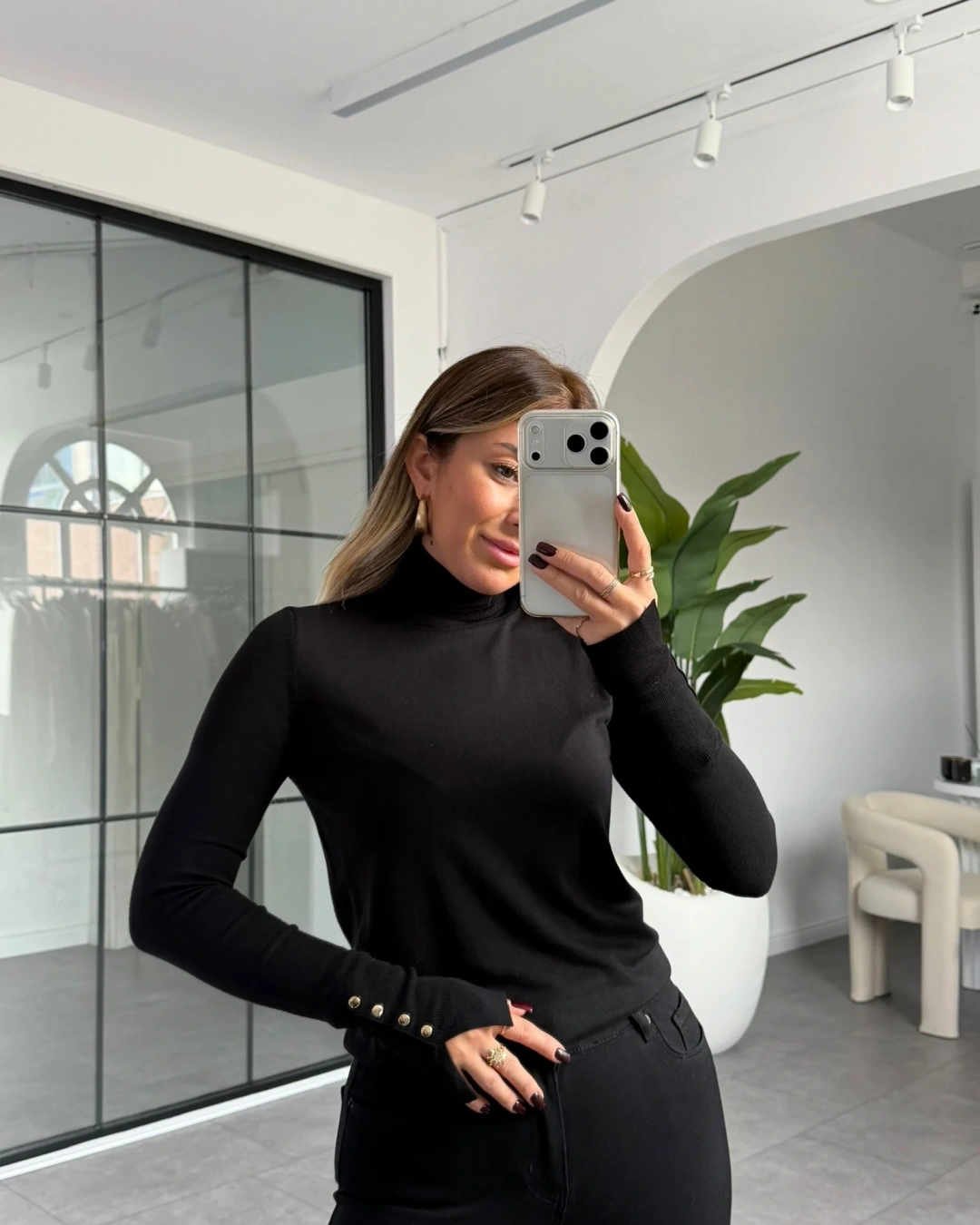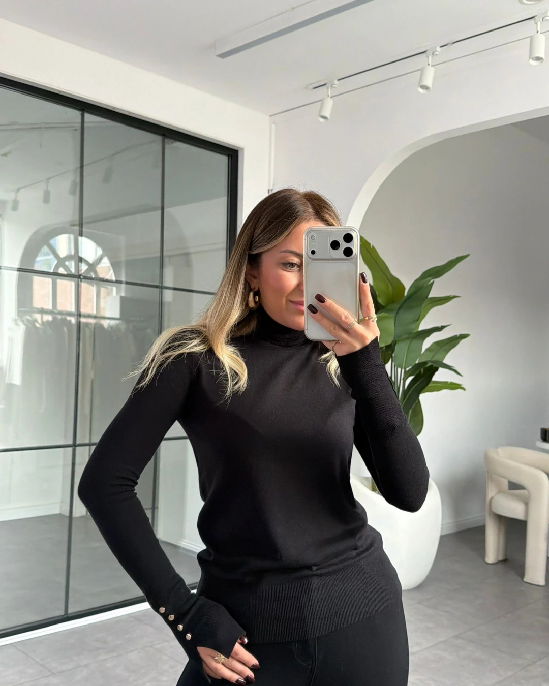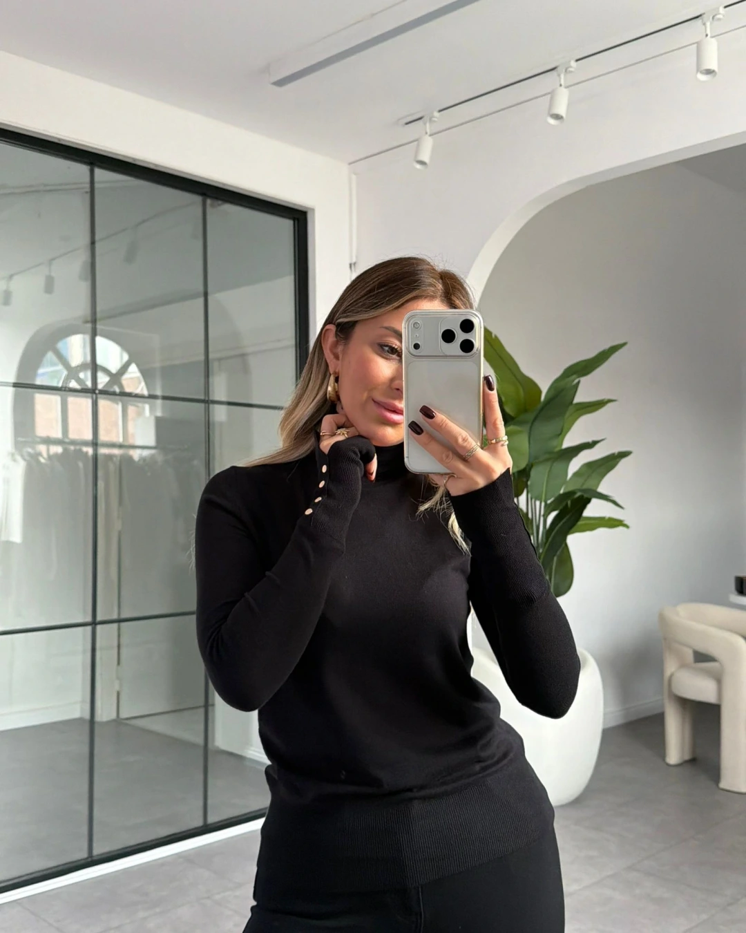 SİYAH BOĞAZLI KOLU DÜĞME DETAYLI KAZAK