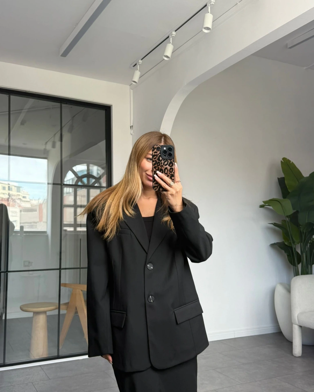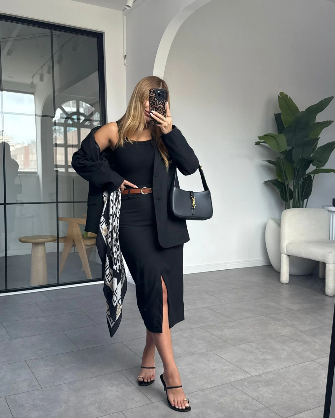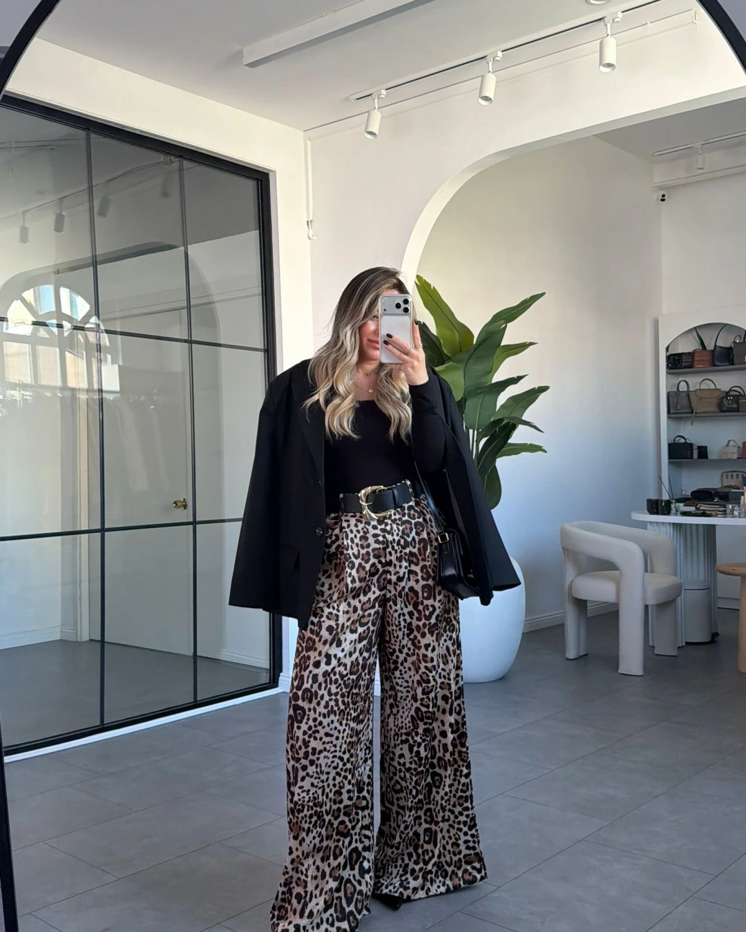 SİYAH LEOPAR DESEN KEMERLİ SATEN PANTOLON