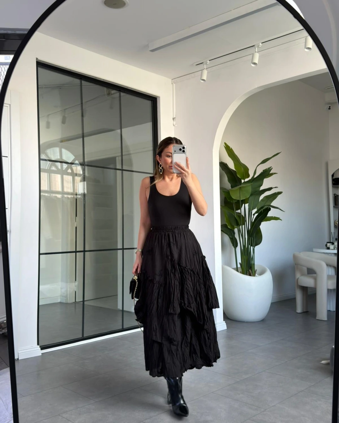 SİYAH ÇİFT KRAŞLI ETEK 3387