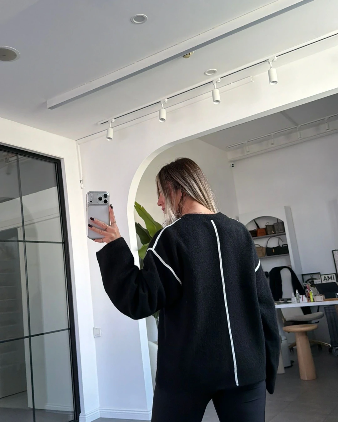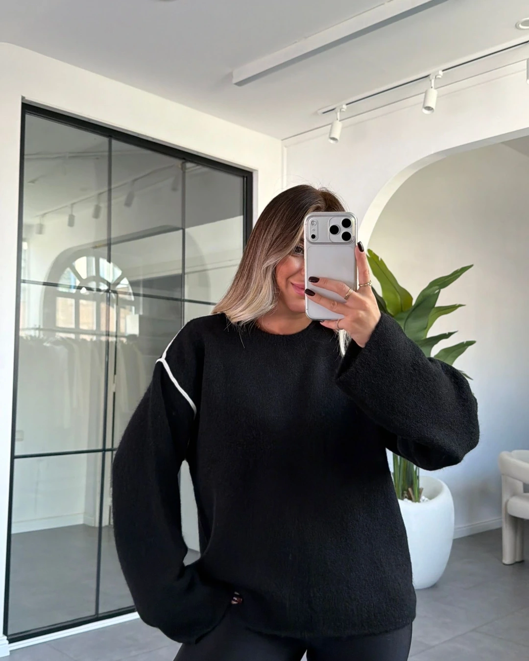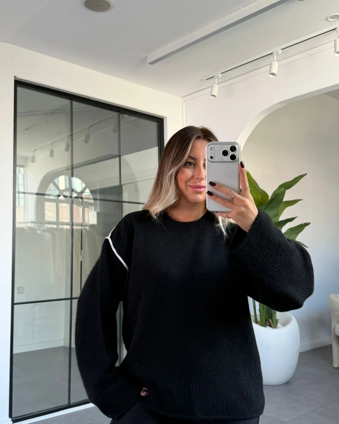 SİYAH ÇİZGİ DETAY YUMOŞ KAZAK