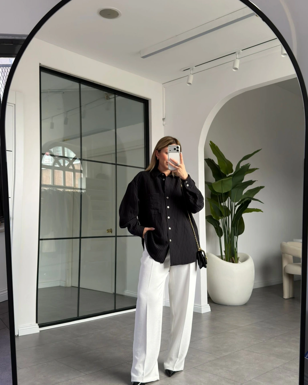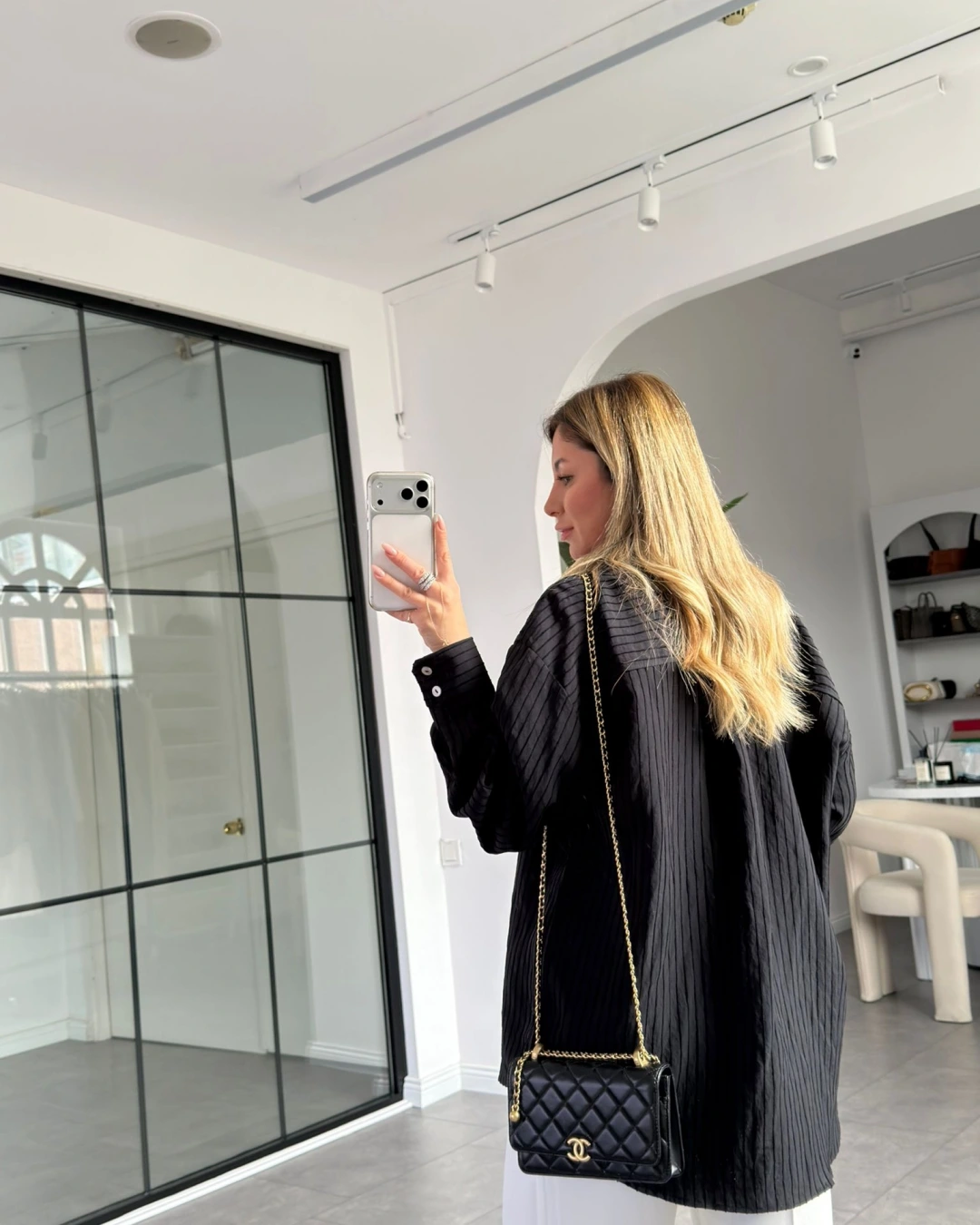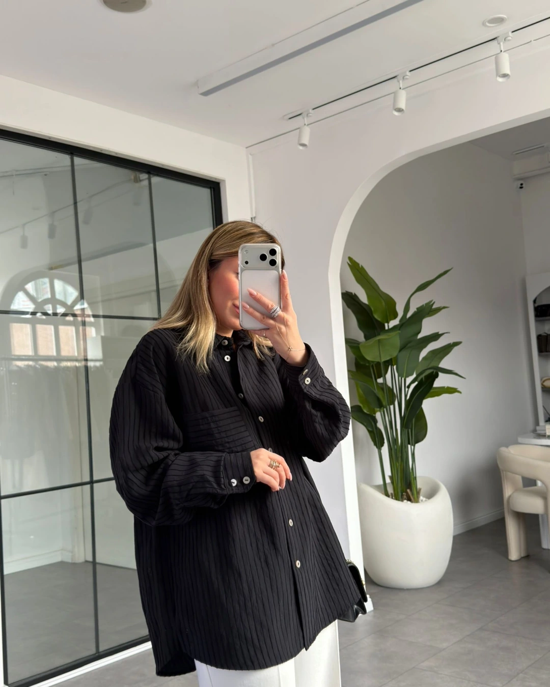 SİYAH ÇİZGİLİ DOKULU GÖMLEK