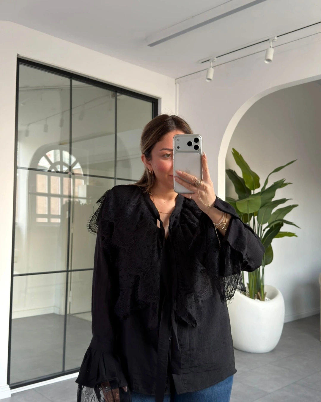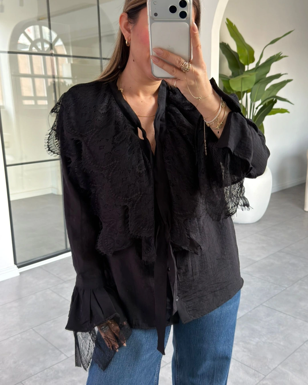 SİYAH DANTEL DETAY GÖMLEK BLUZ