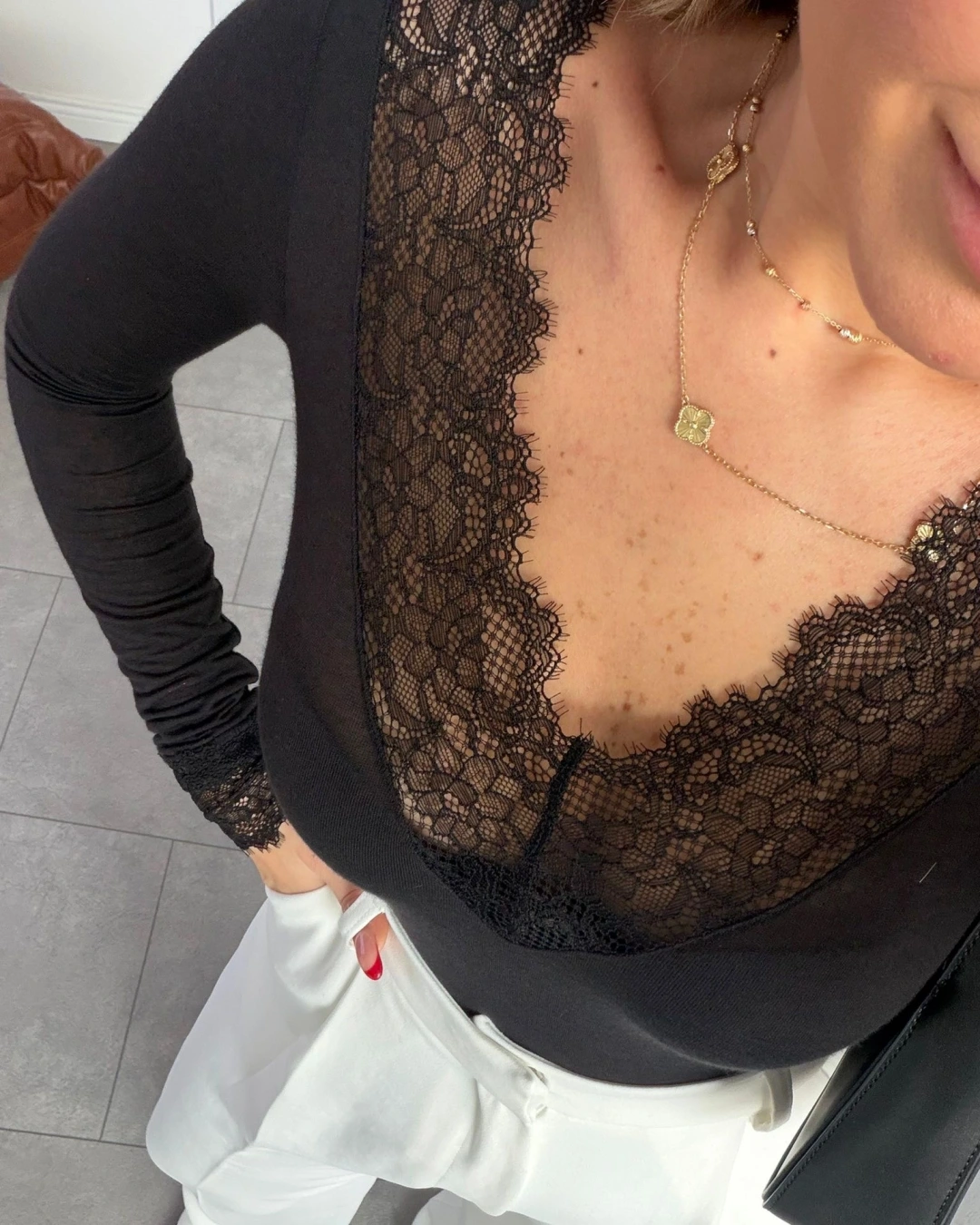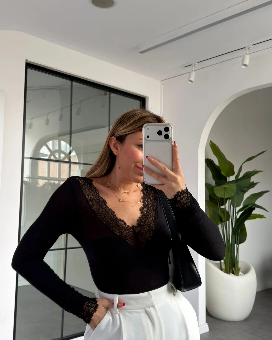 SİYAH DANTELLİ KAŞMİR BLUZ