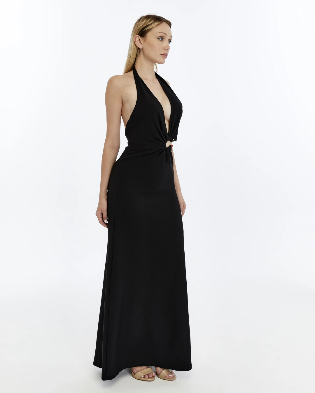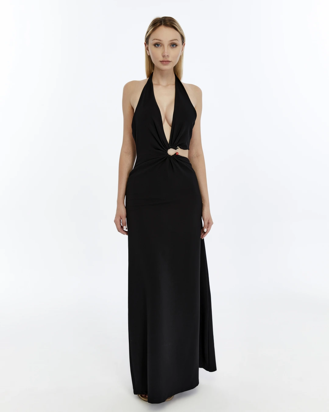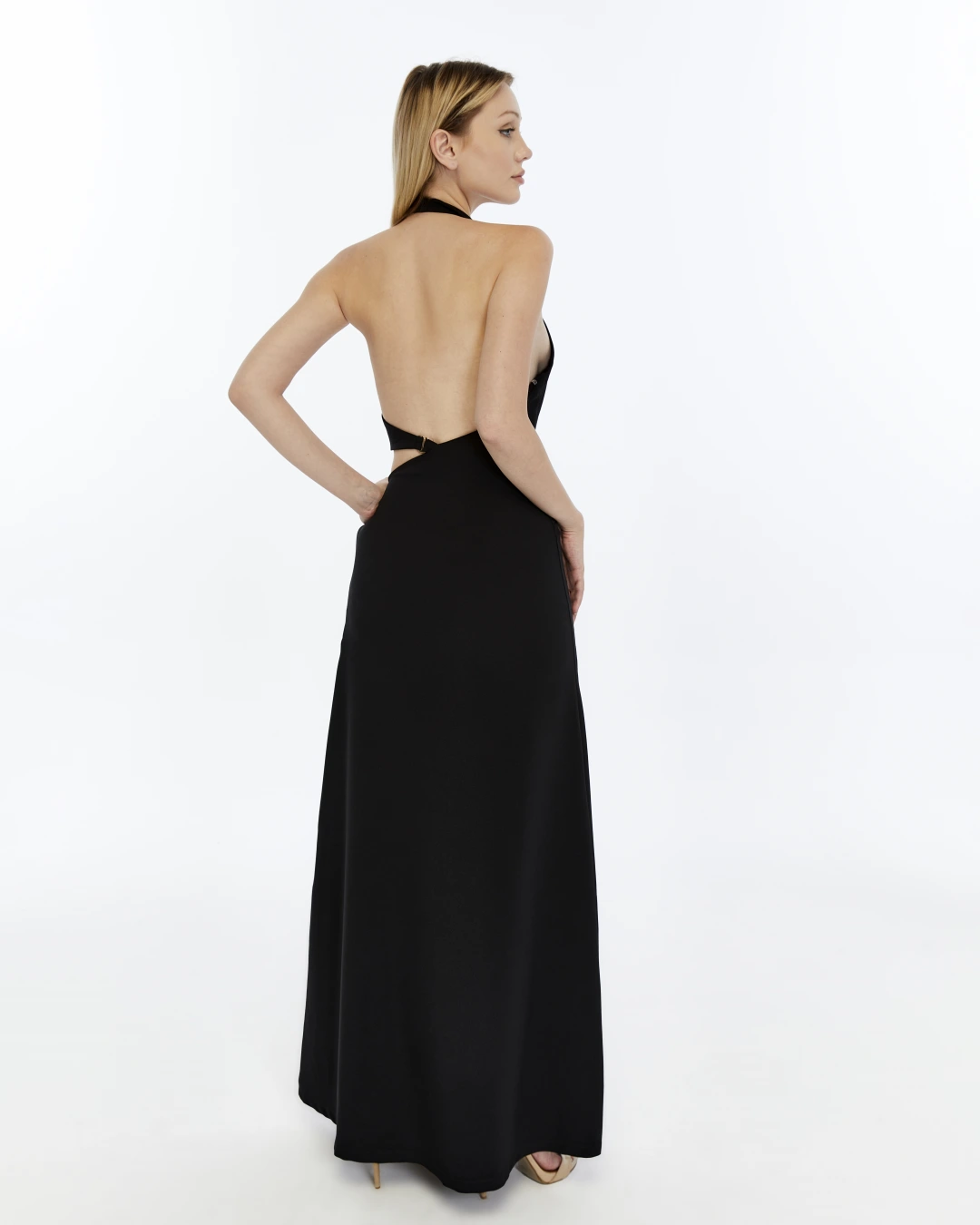 SİYAH DEKOLTE DETAYLI ELBİSE