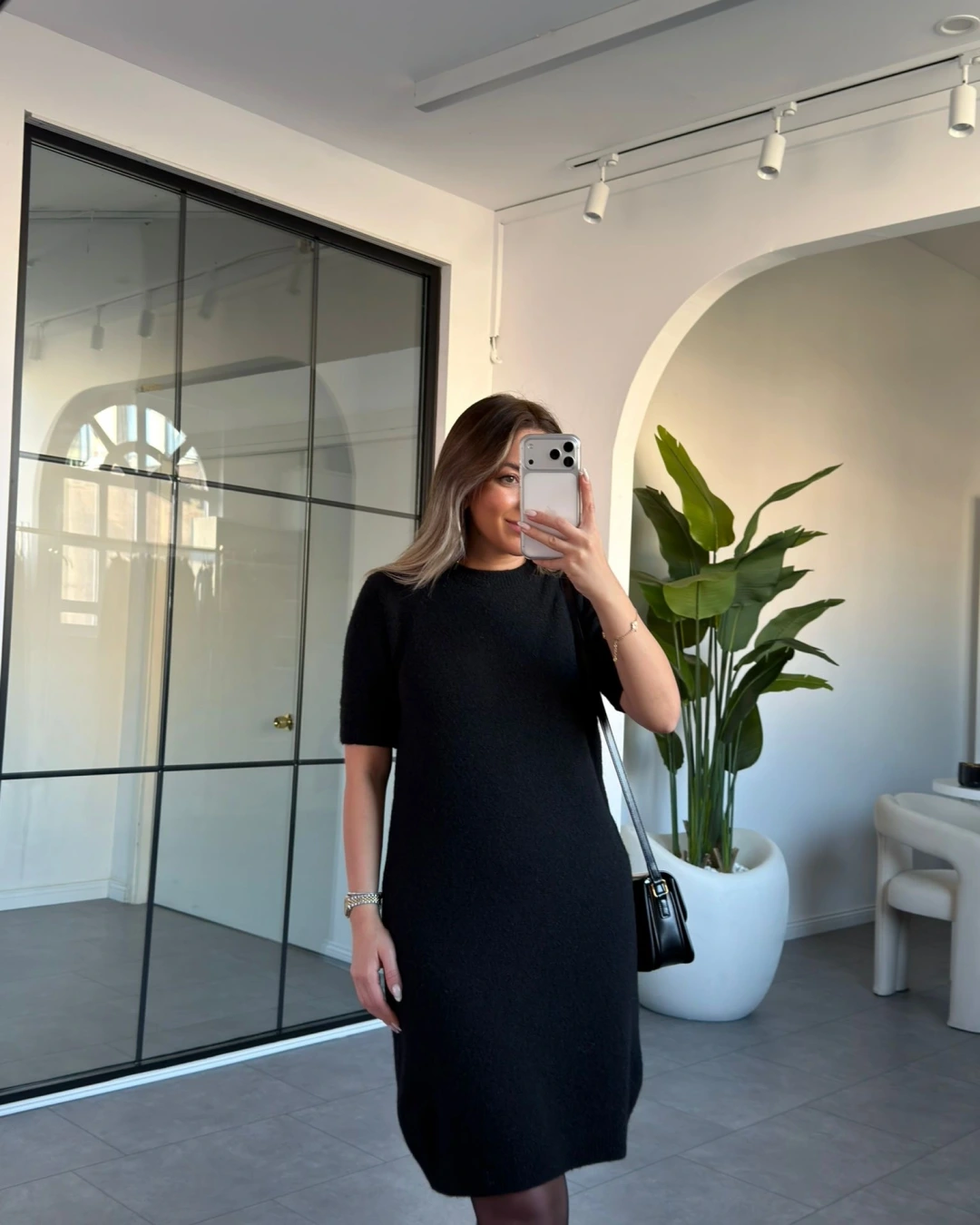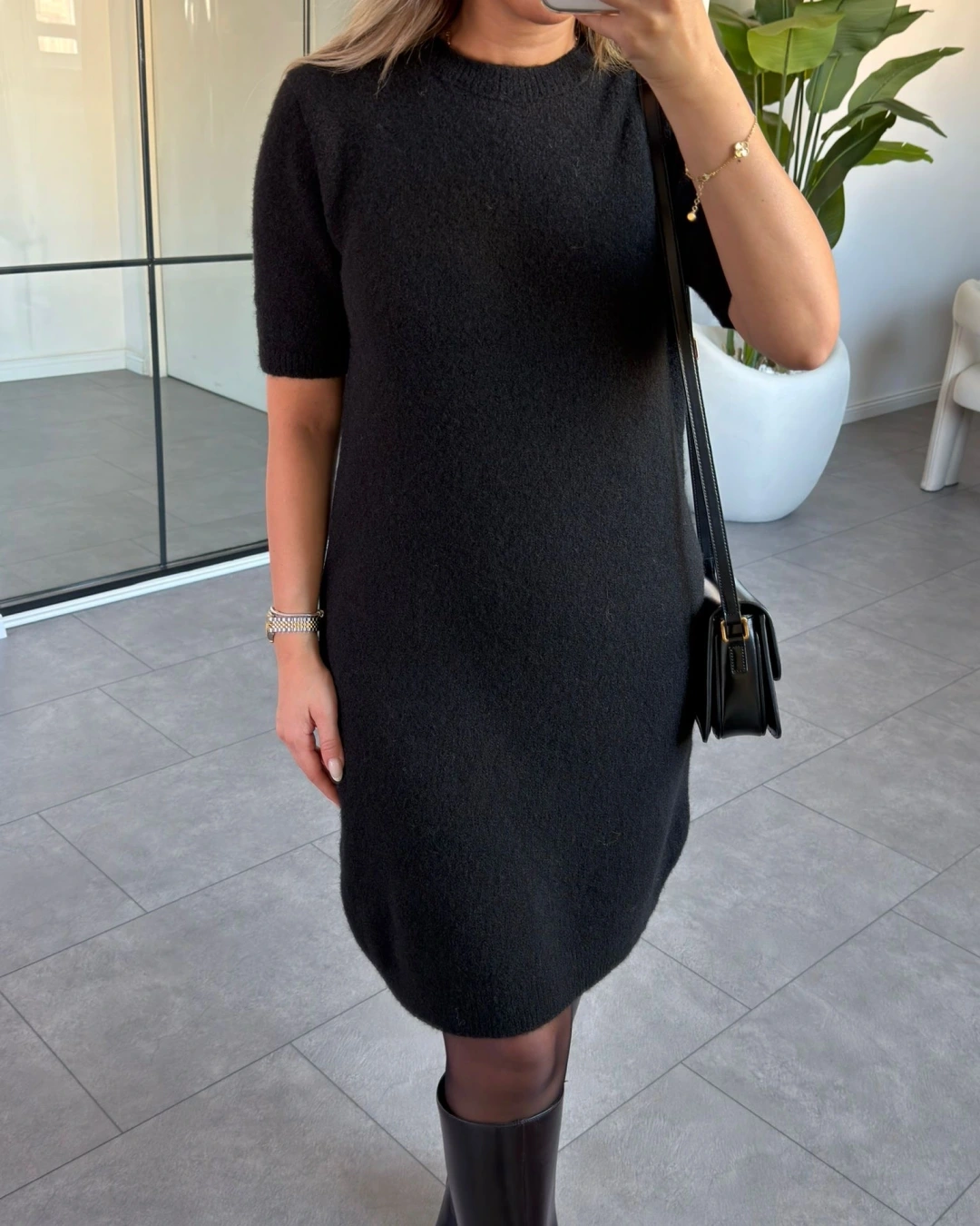 SİYAH DİLVİN BİSİKLET YAKA YUMUŞACIK DOKULU TRİKO ELBİSE