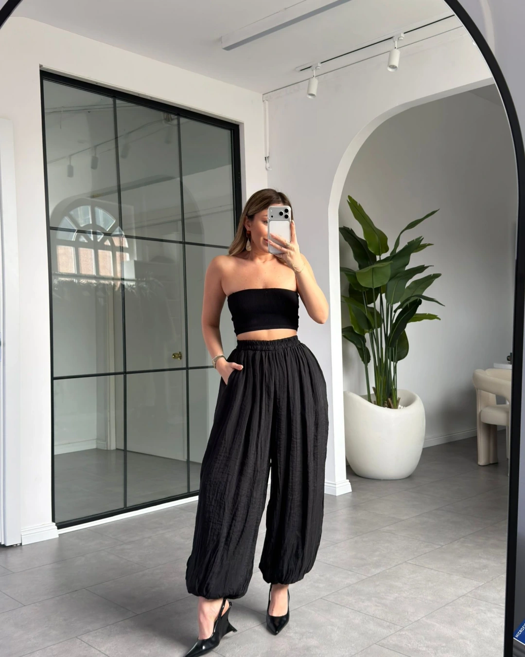 SİYAH DÖKÜMLÜ ŞİFON ŞALVAR PANTOLON