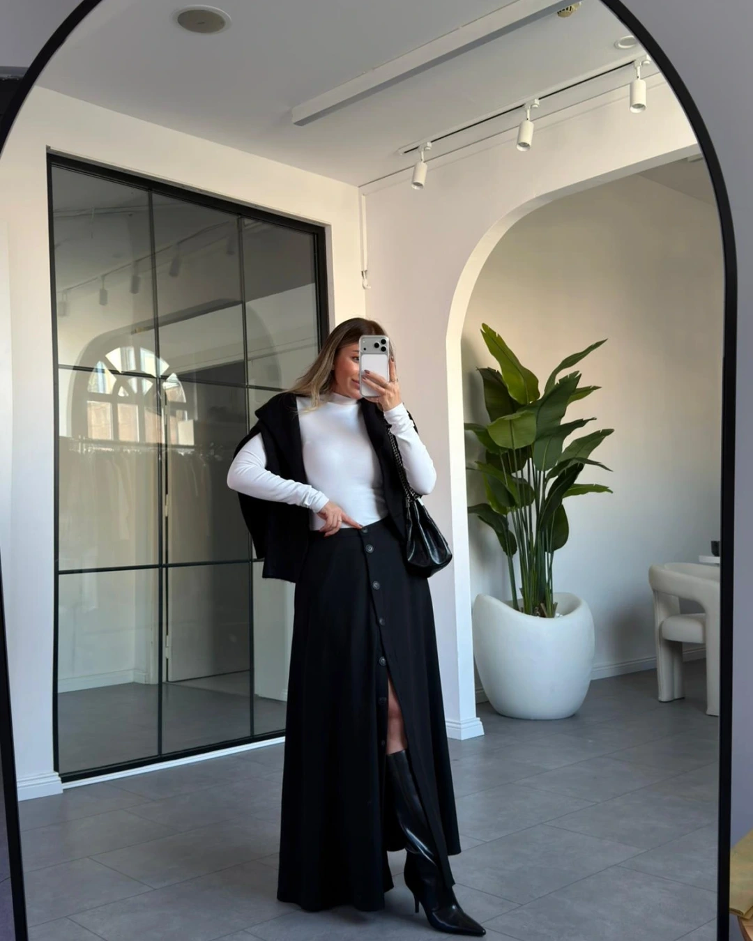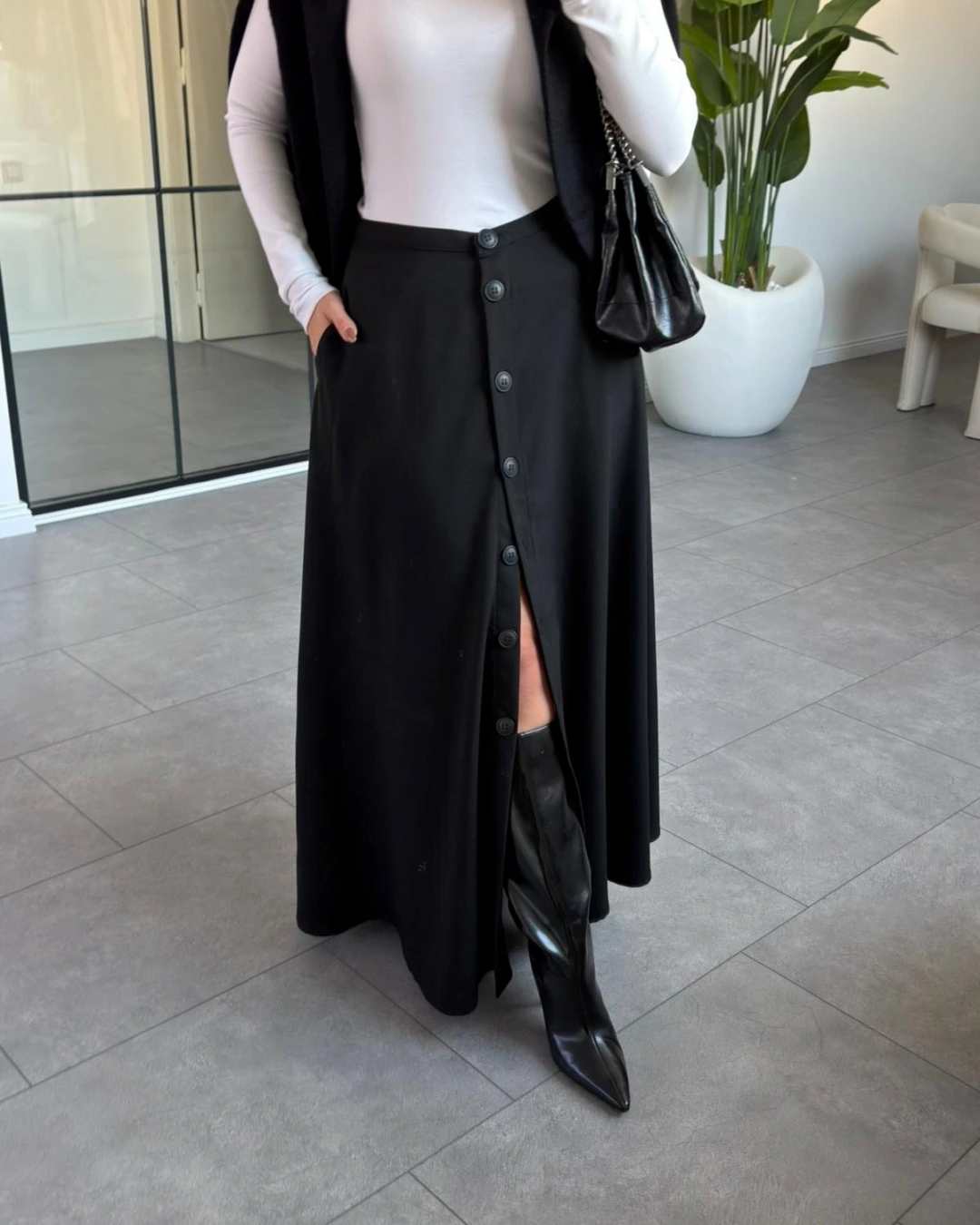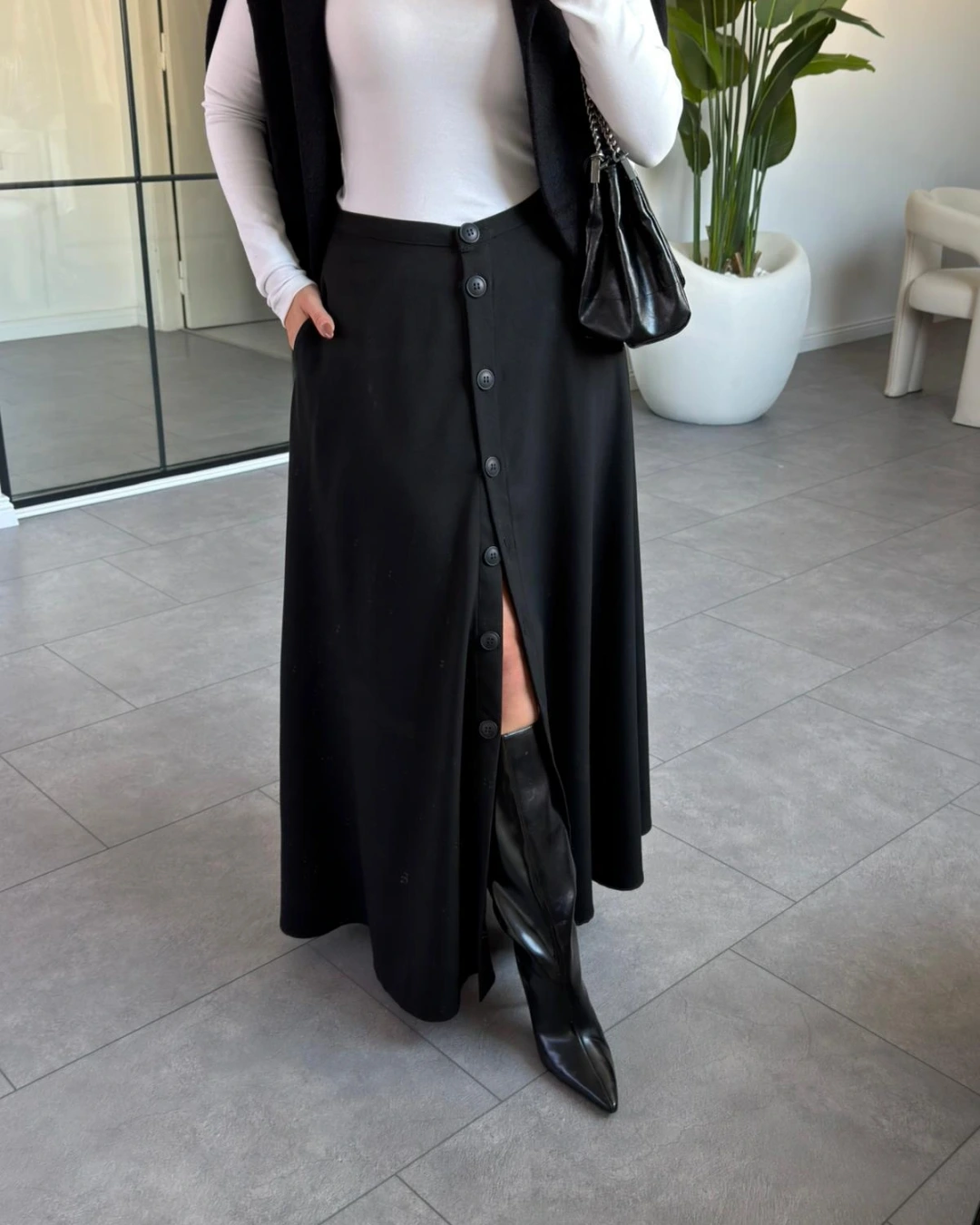 SİYAH DÜĞMELİ KLOŞ ETEK