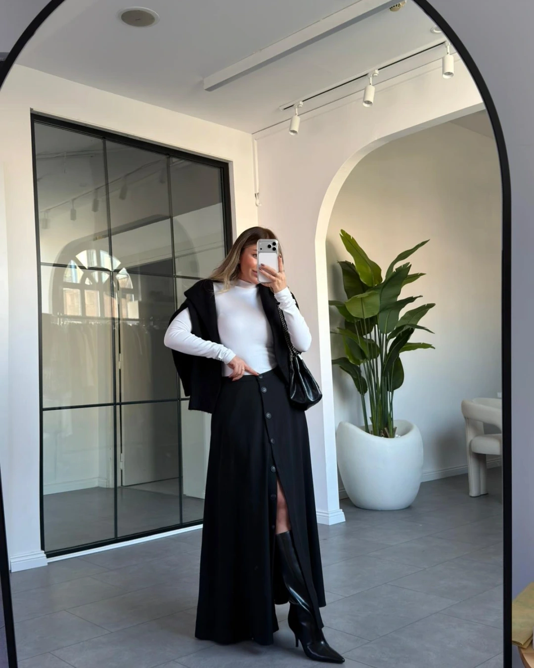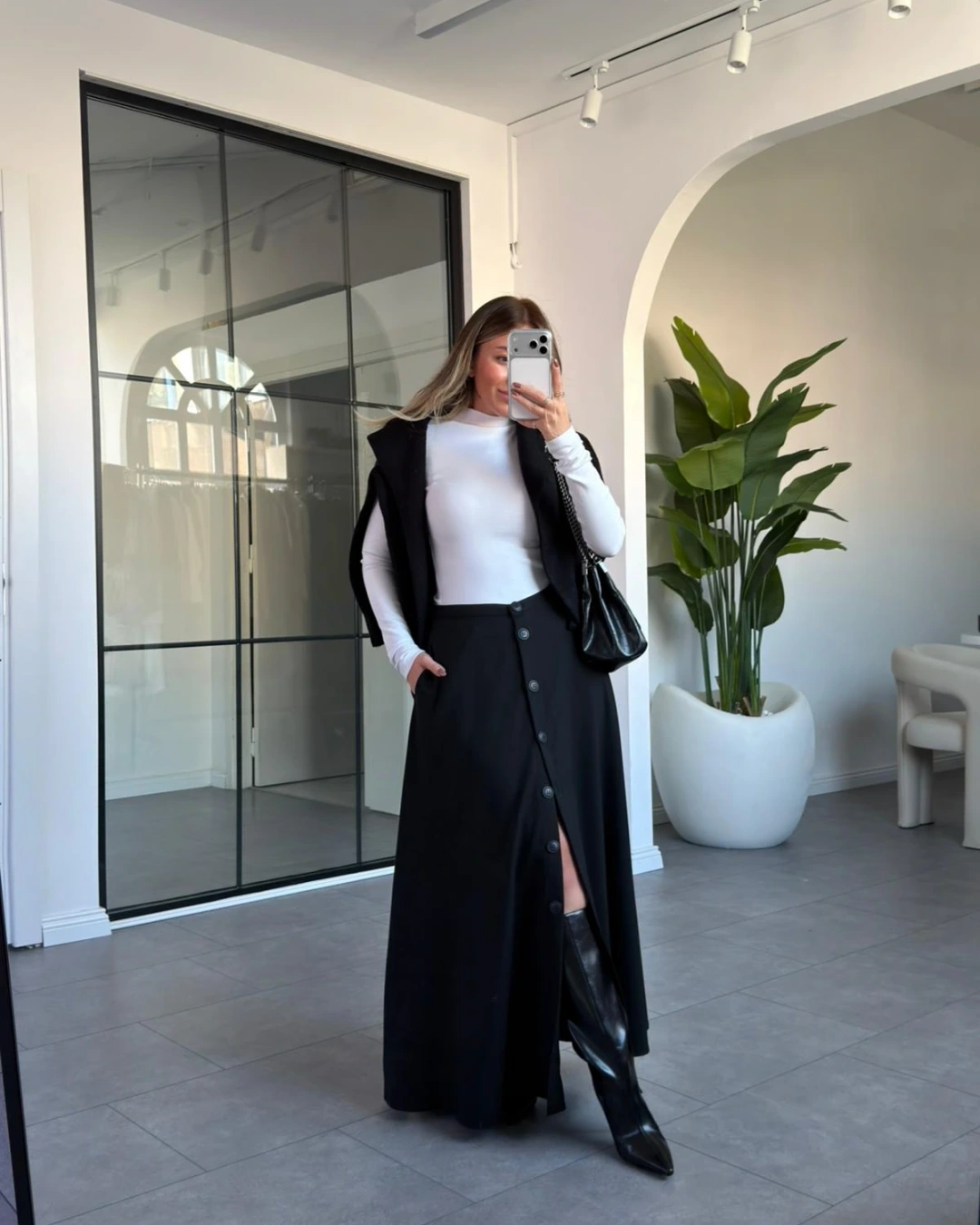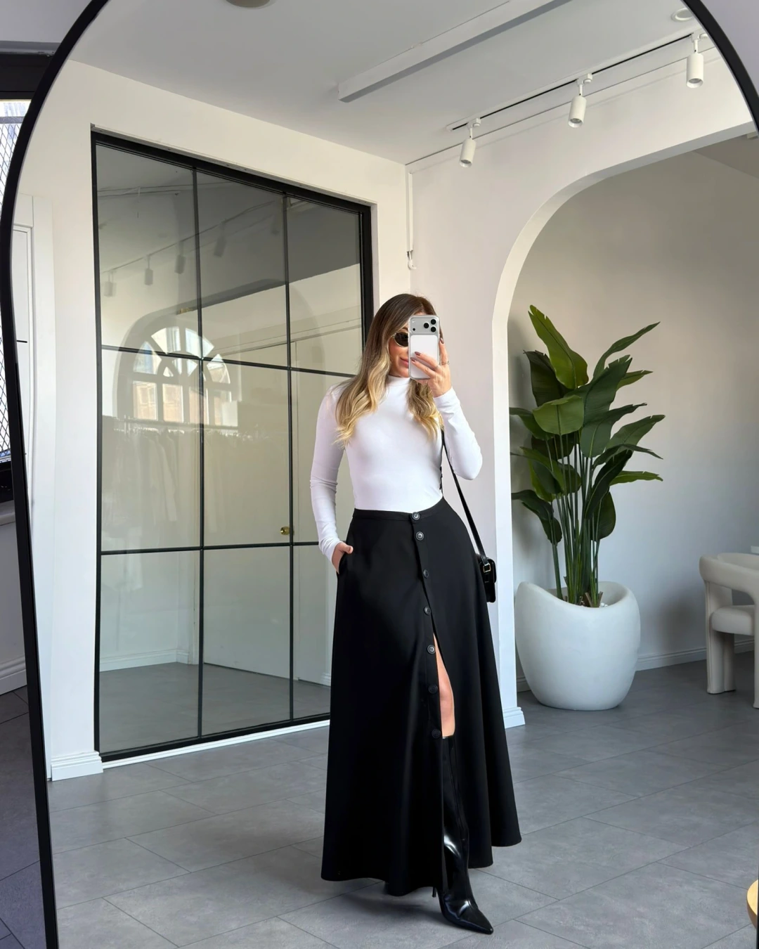 SİYAH DÜĞMELİ KLOŞ ETEK