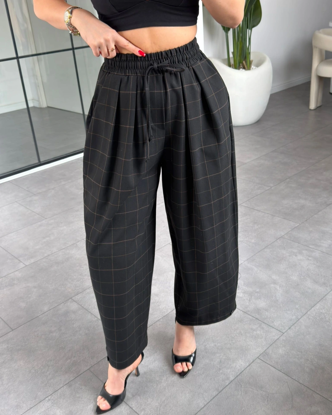 SİYAH EKOSE DESENLİ PANTOLON 51328