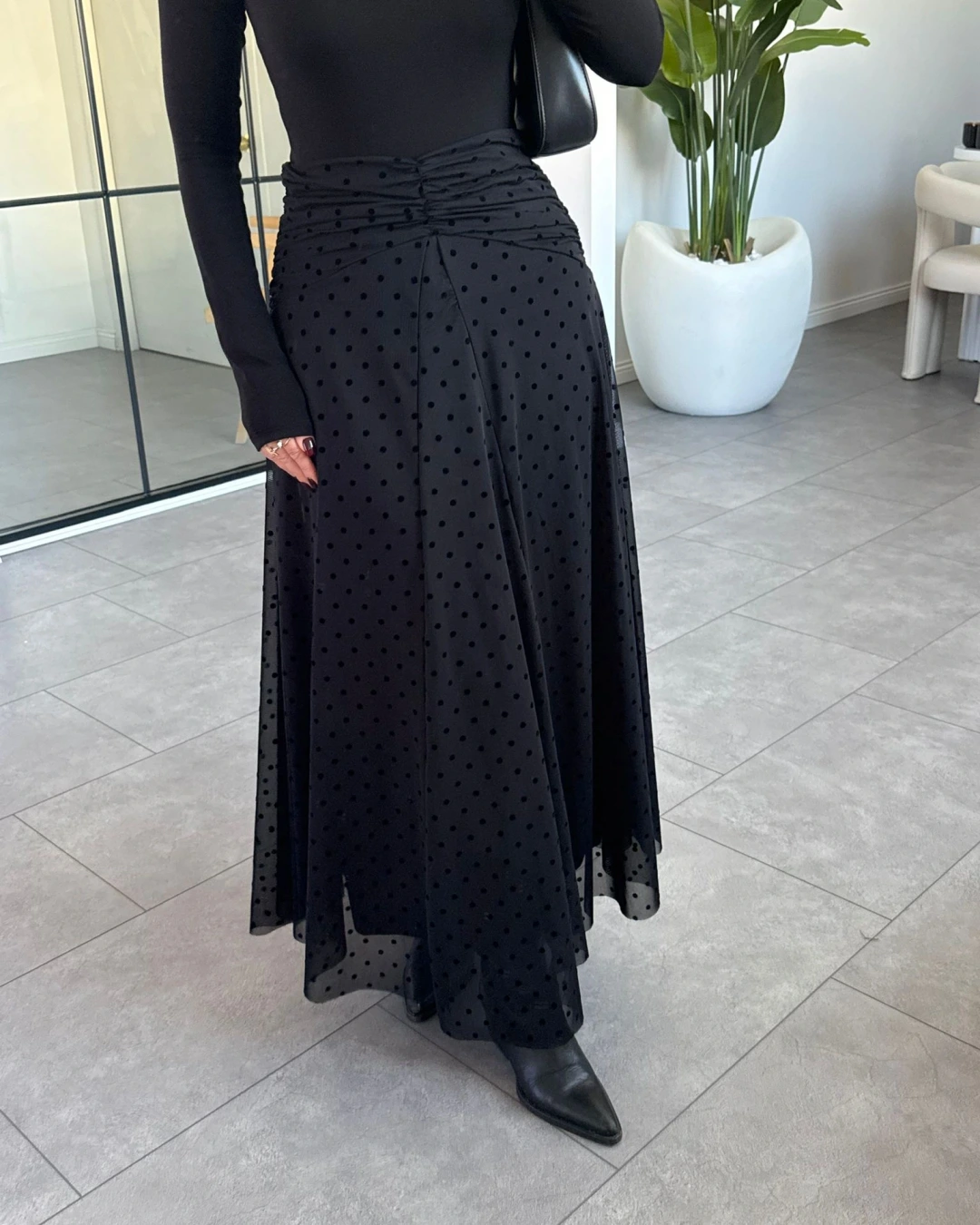 SİYAH FLOK BASKI PUANTİYELİ ETEK