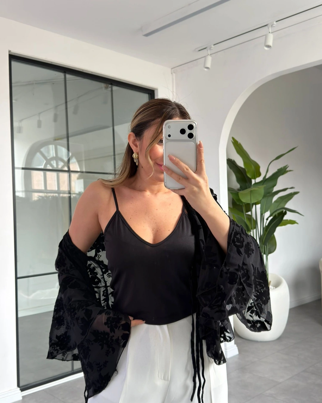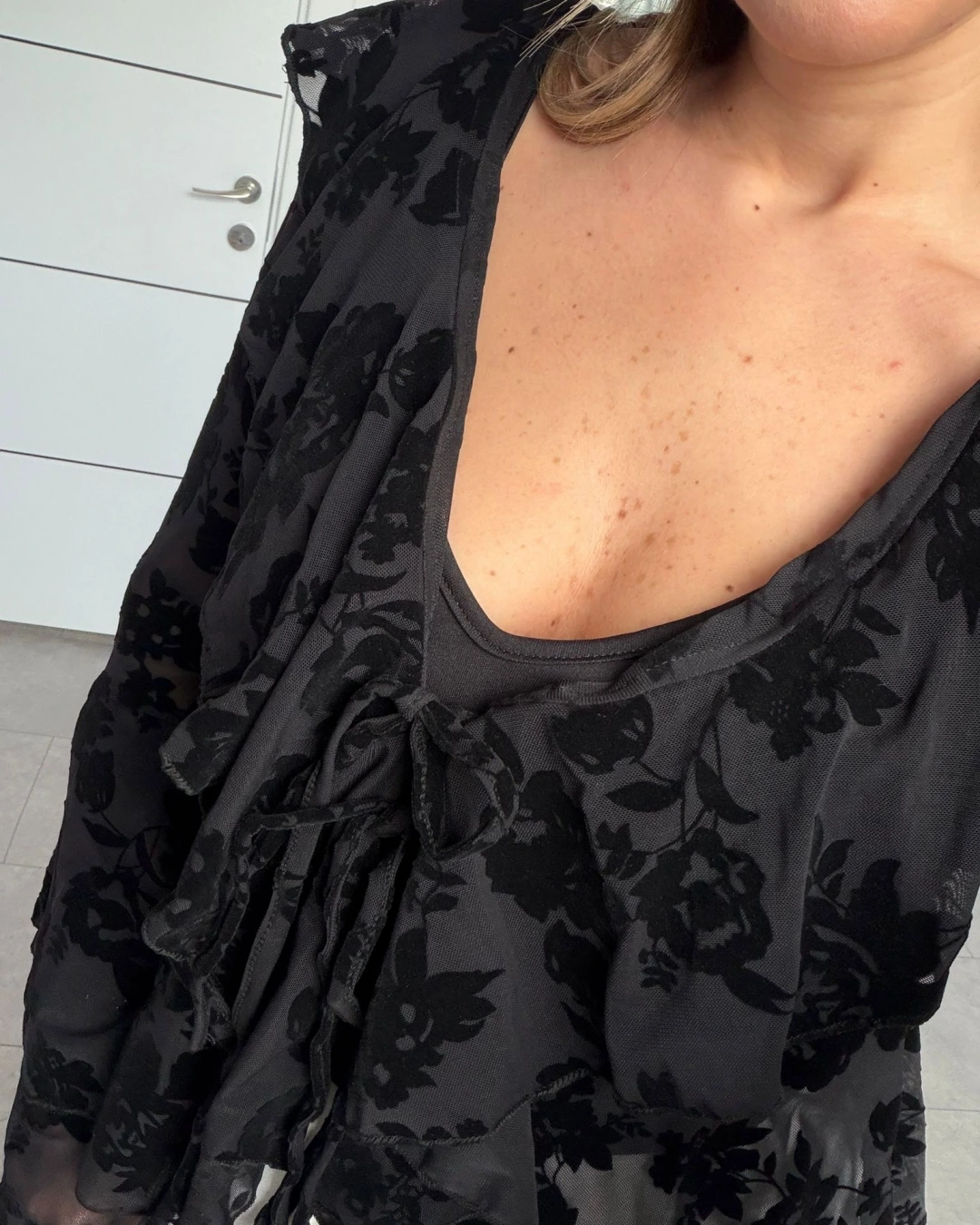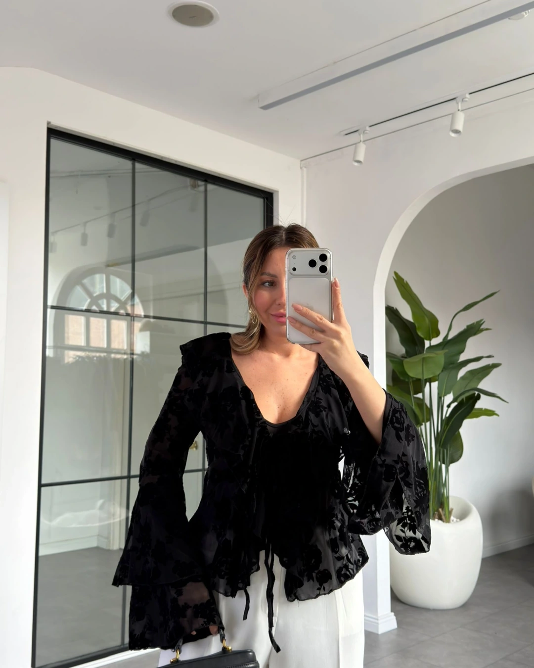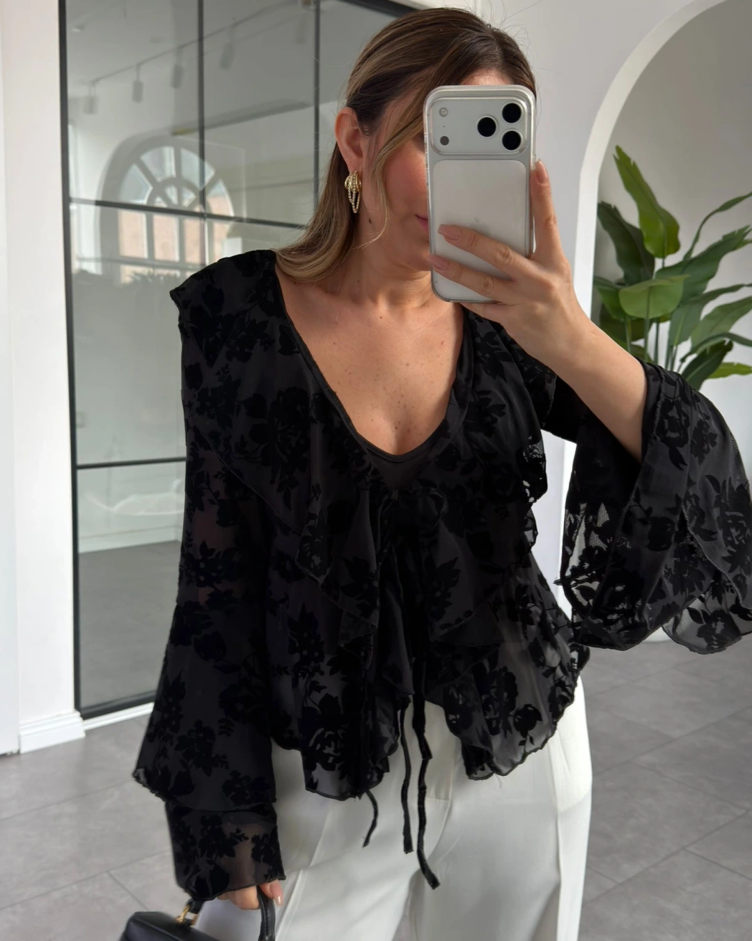 SİYAH FLOK BASKILI BLUZ 0908