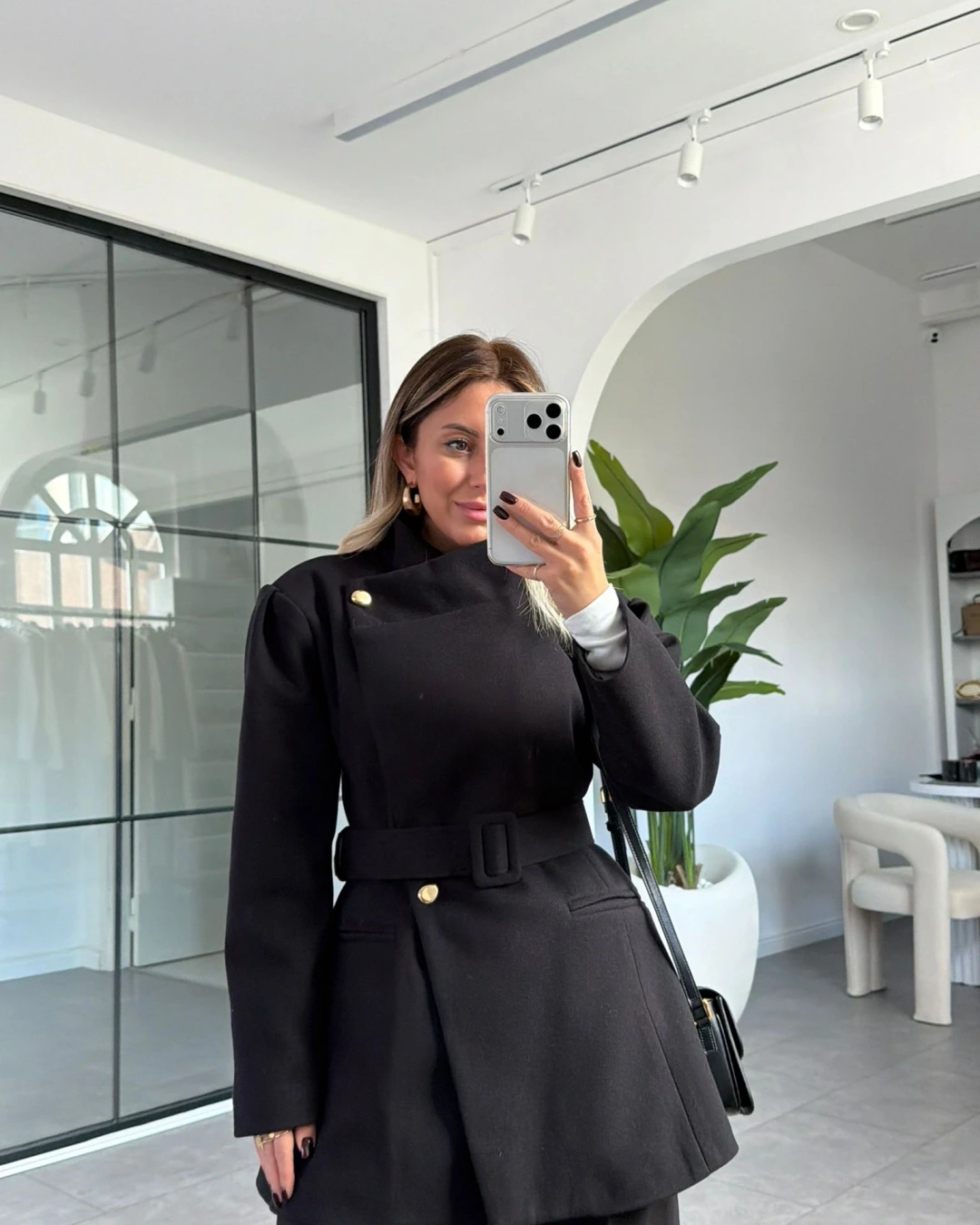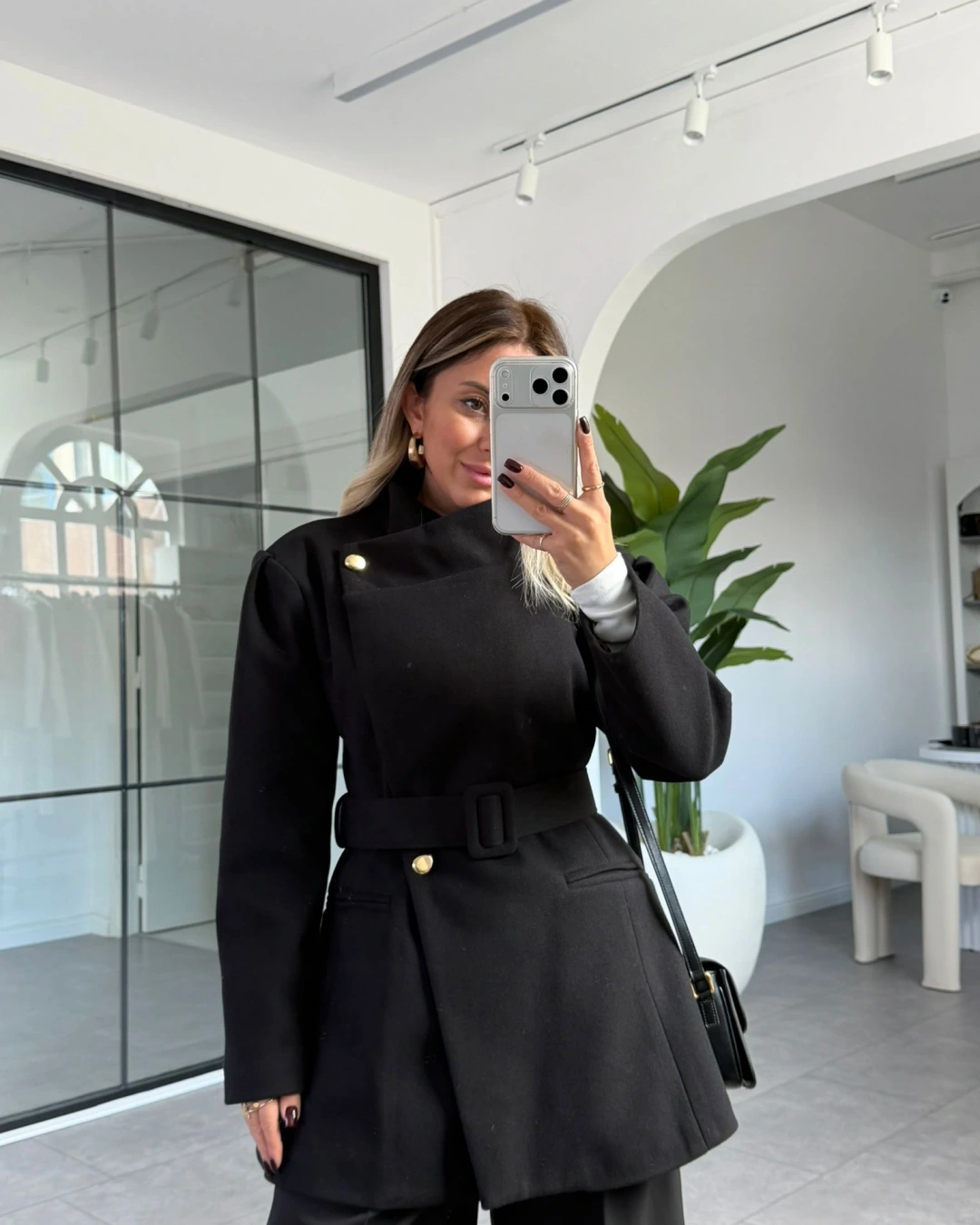 SİYAH GENİŞ YAKALI KAŞE KABAN
