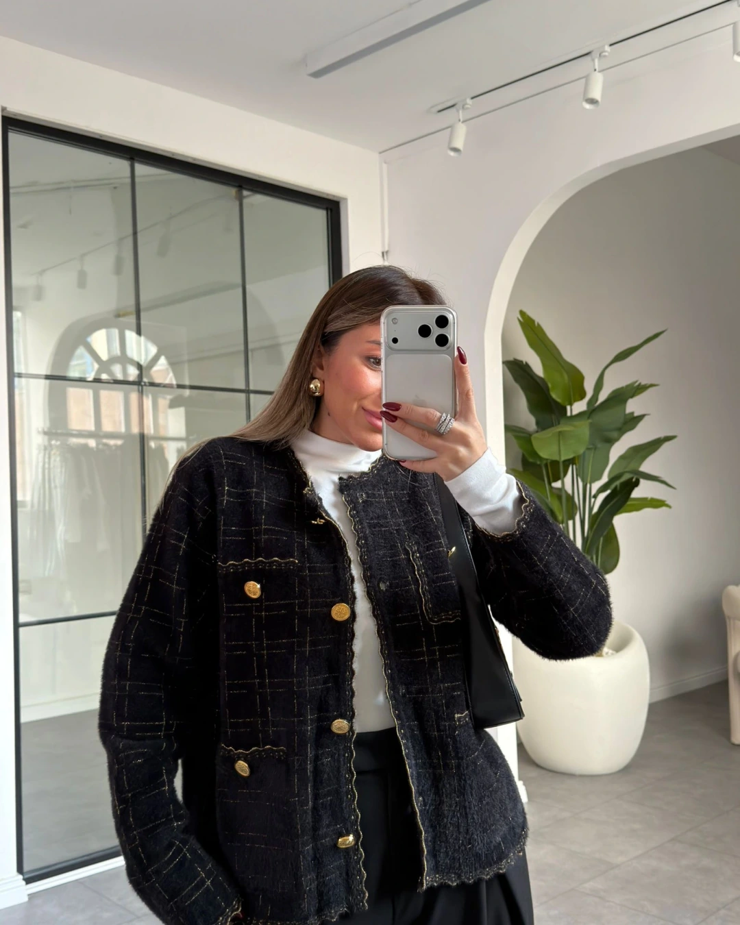 SİYAH GOLD DETAYLI YUMOŞ HIRKA