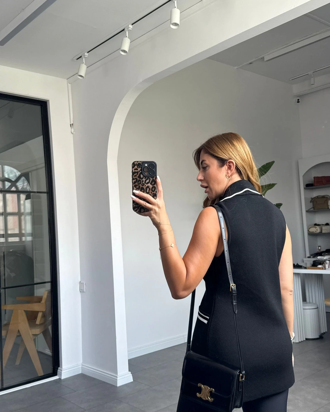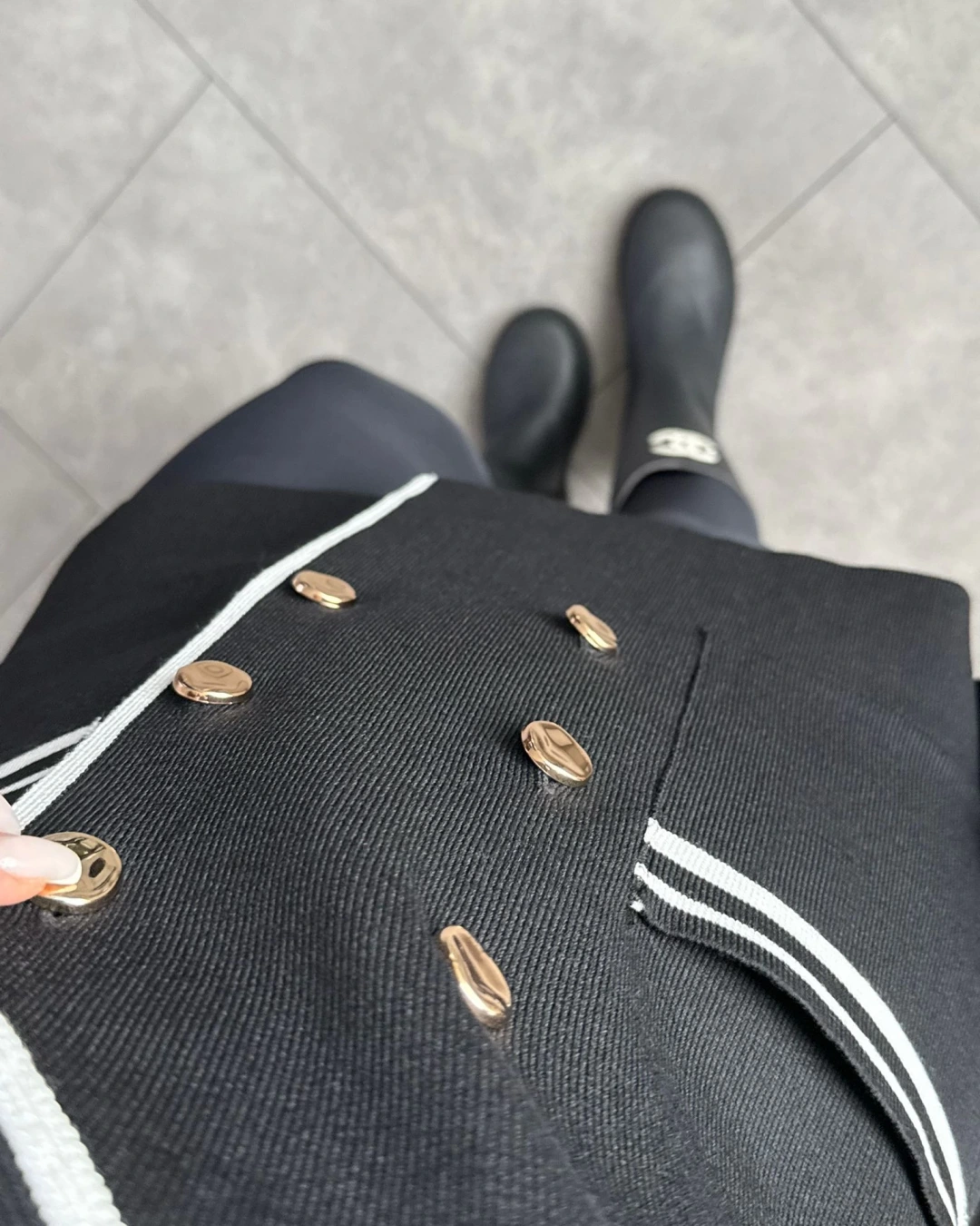 SİYAH GOLD DÜĞME DETAYLI TRİKO CEPLİ YELEK