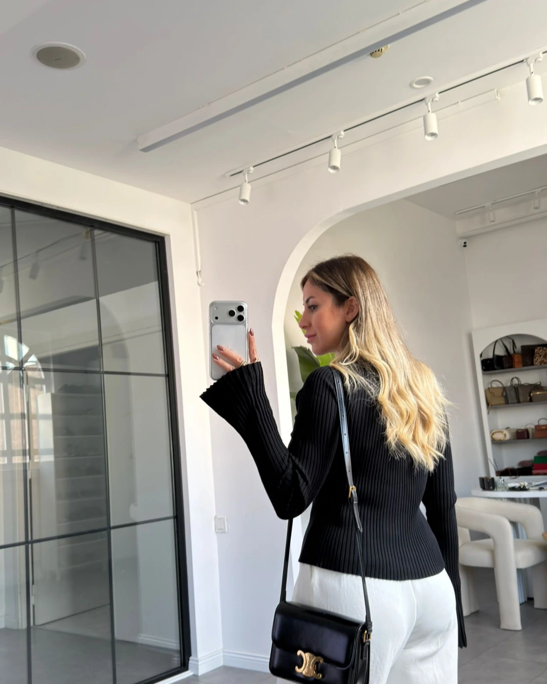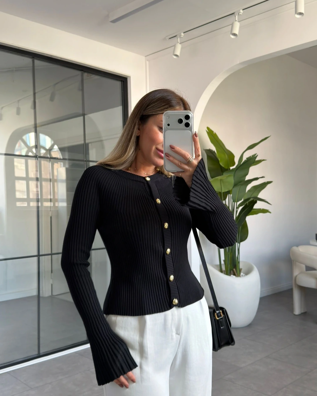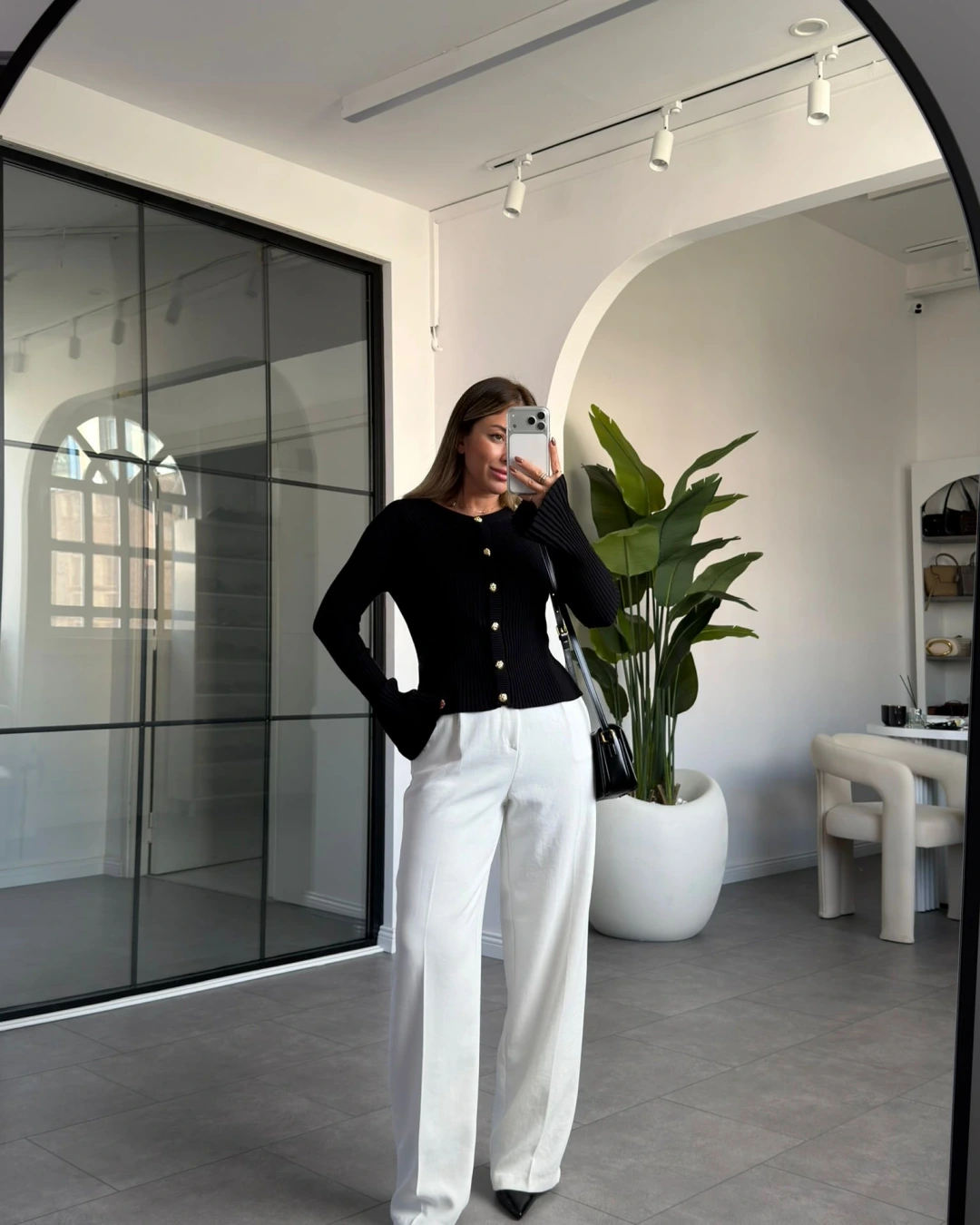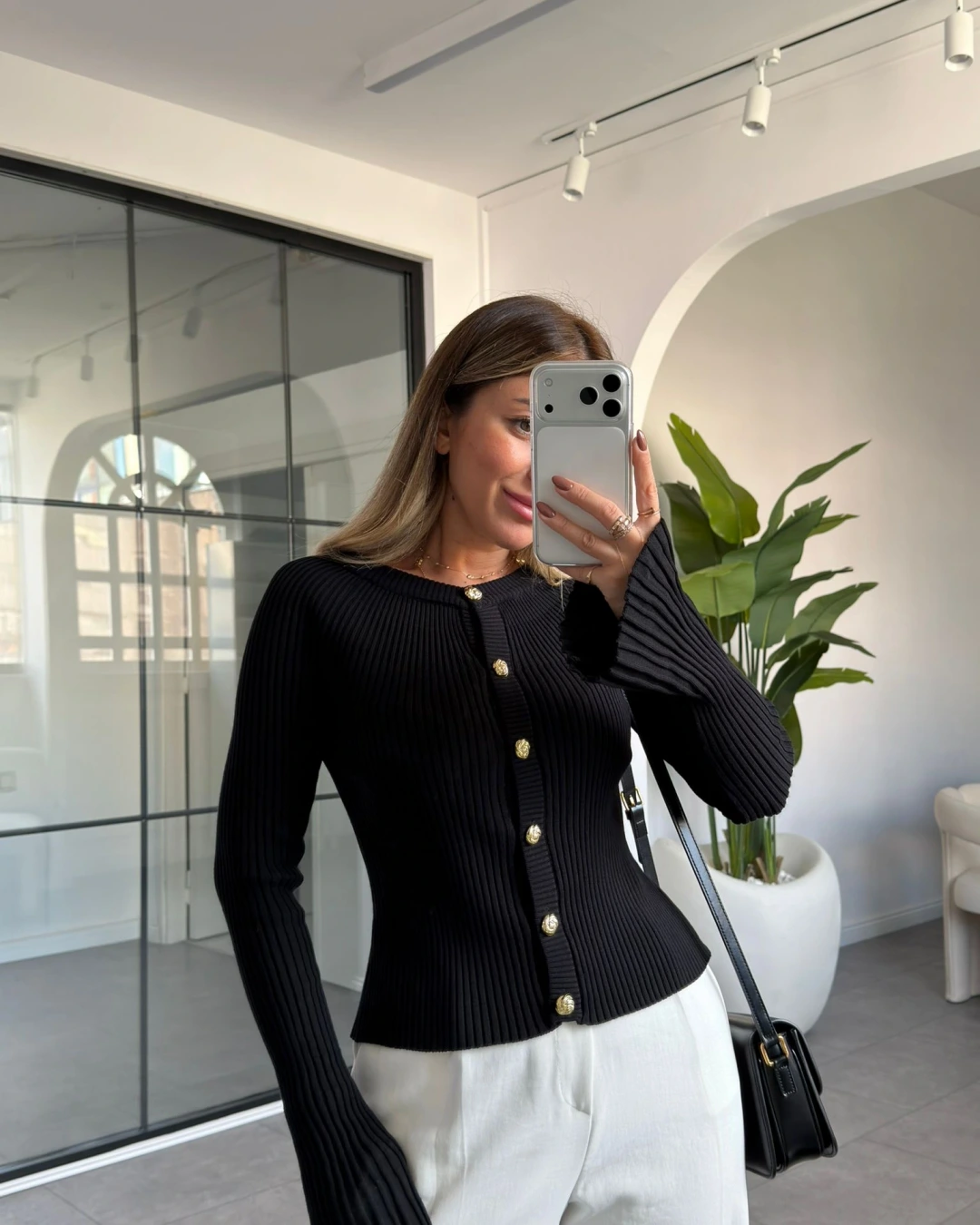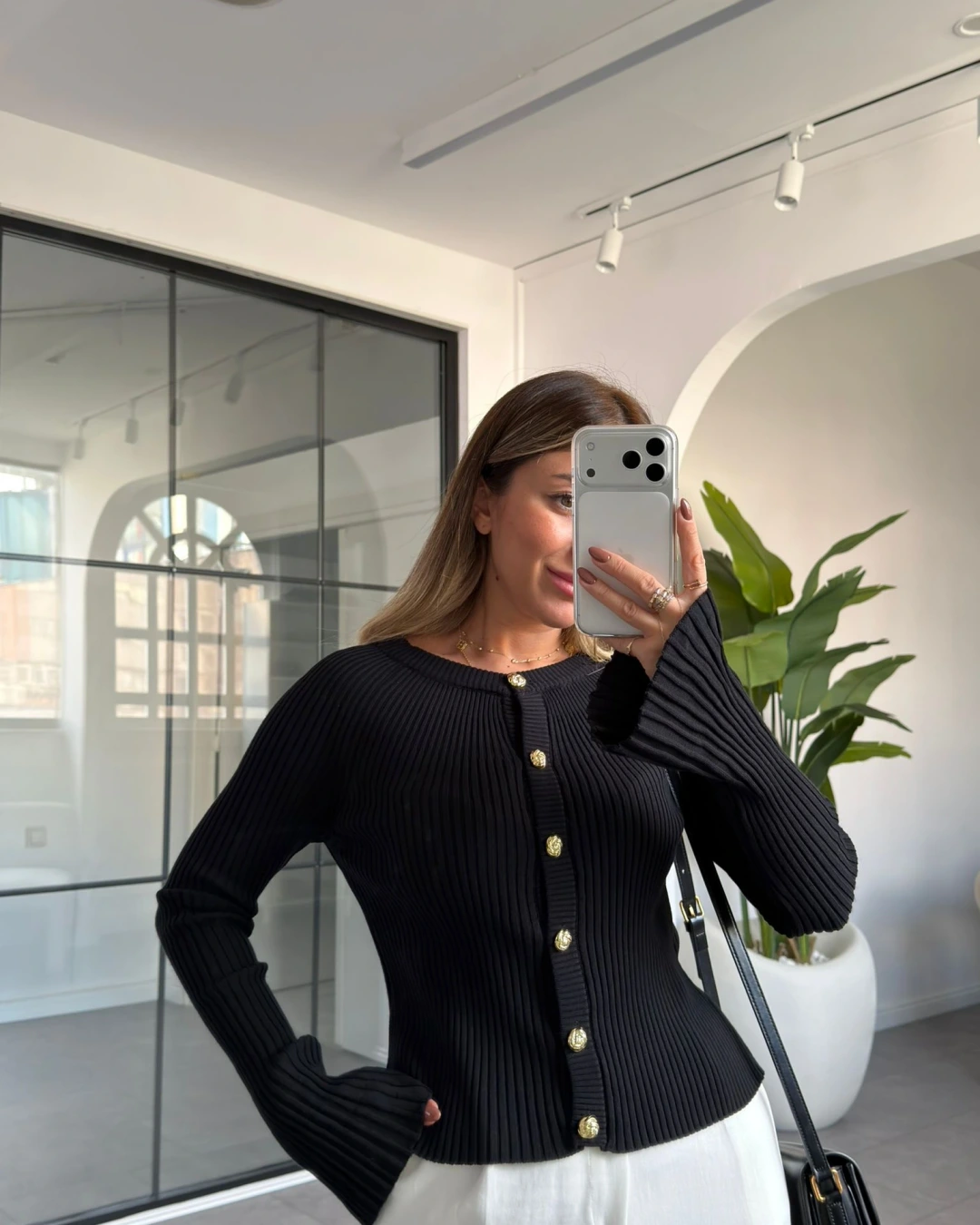 SİYAH GOLD DÜĞME DETAYLI TRİKO HIRKA
