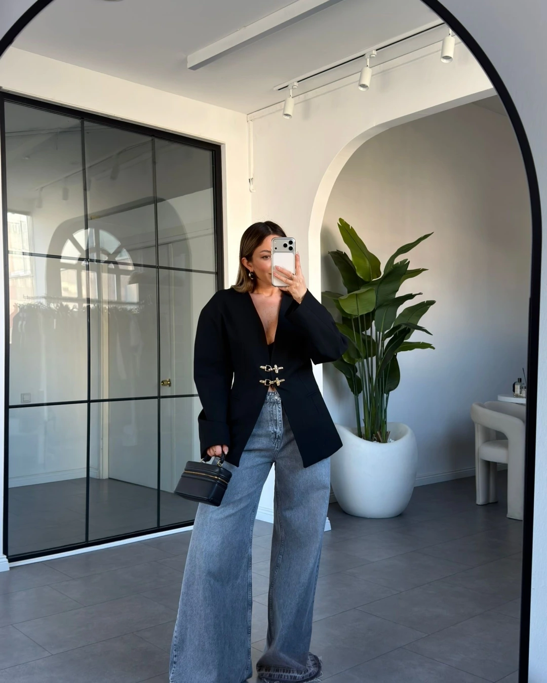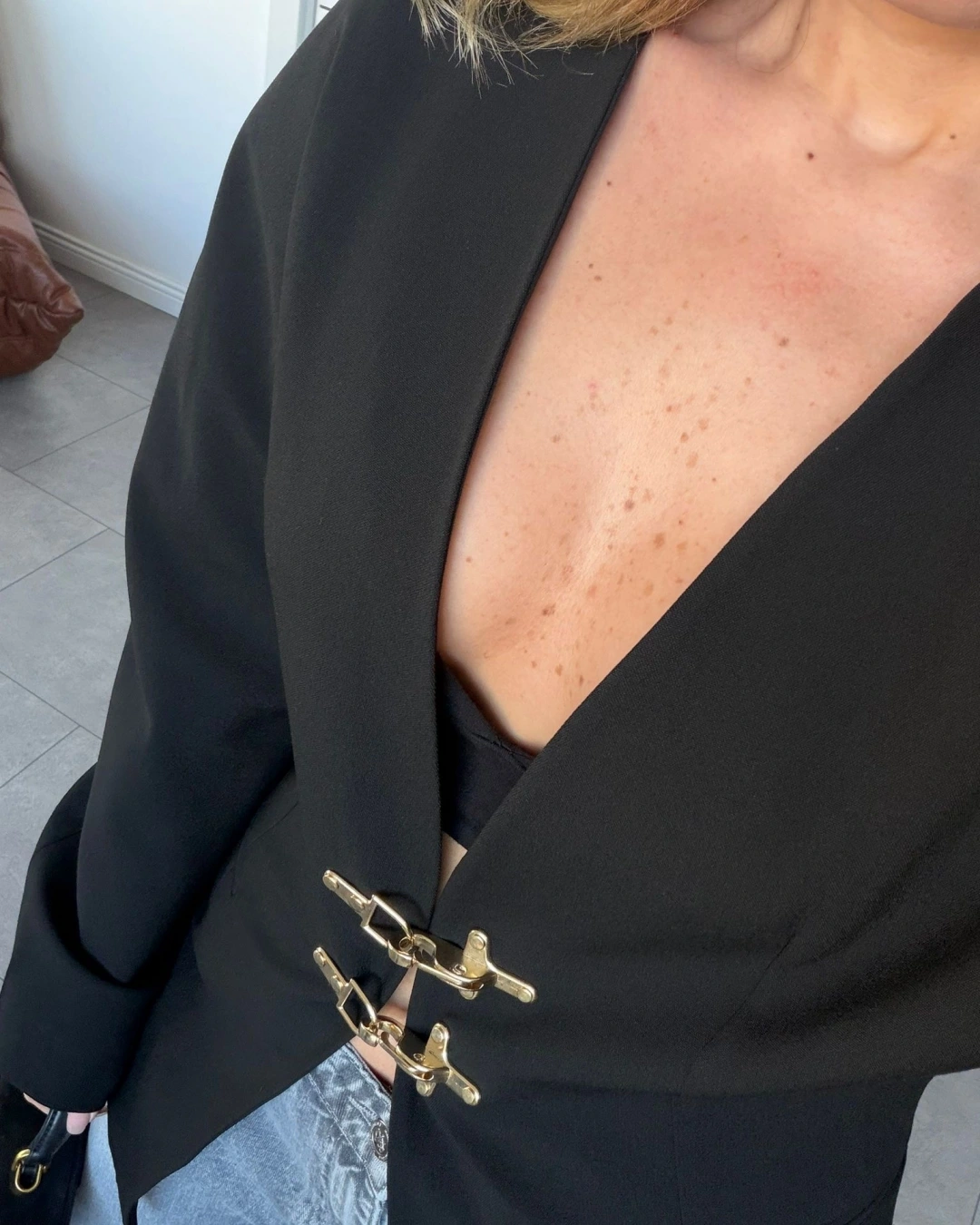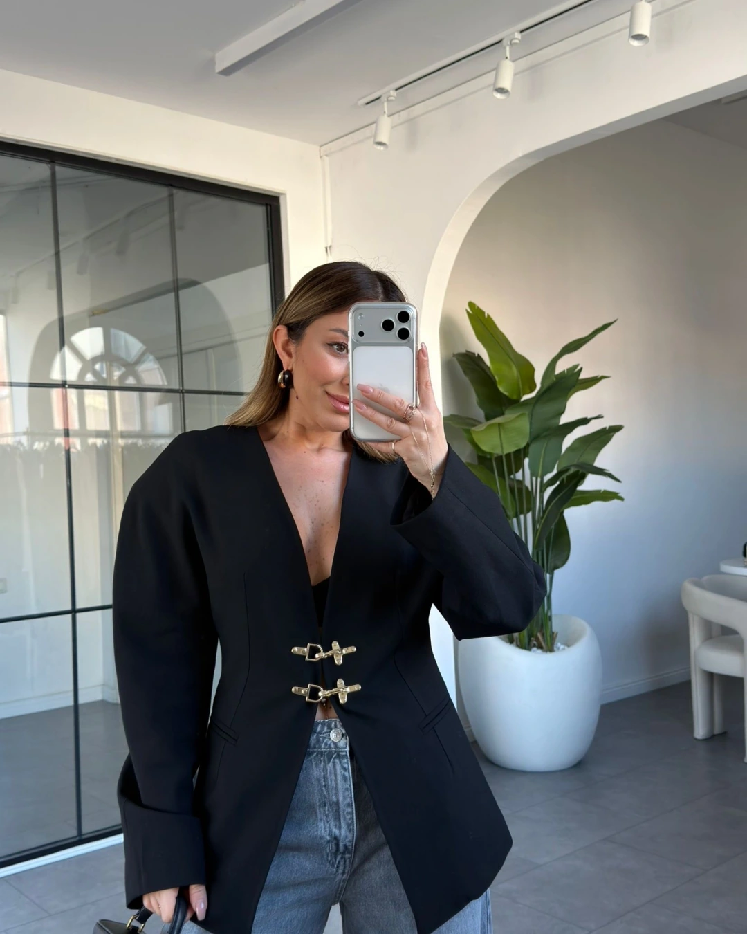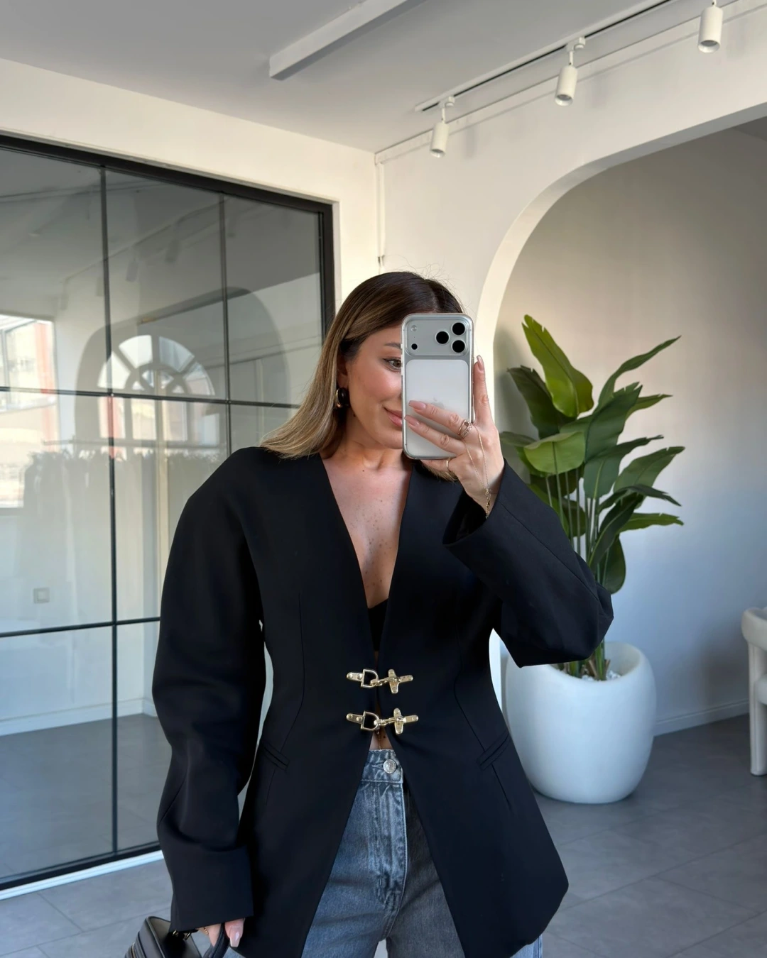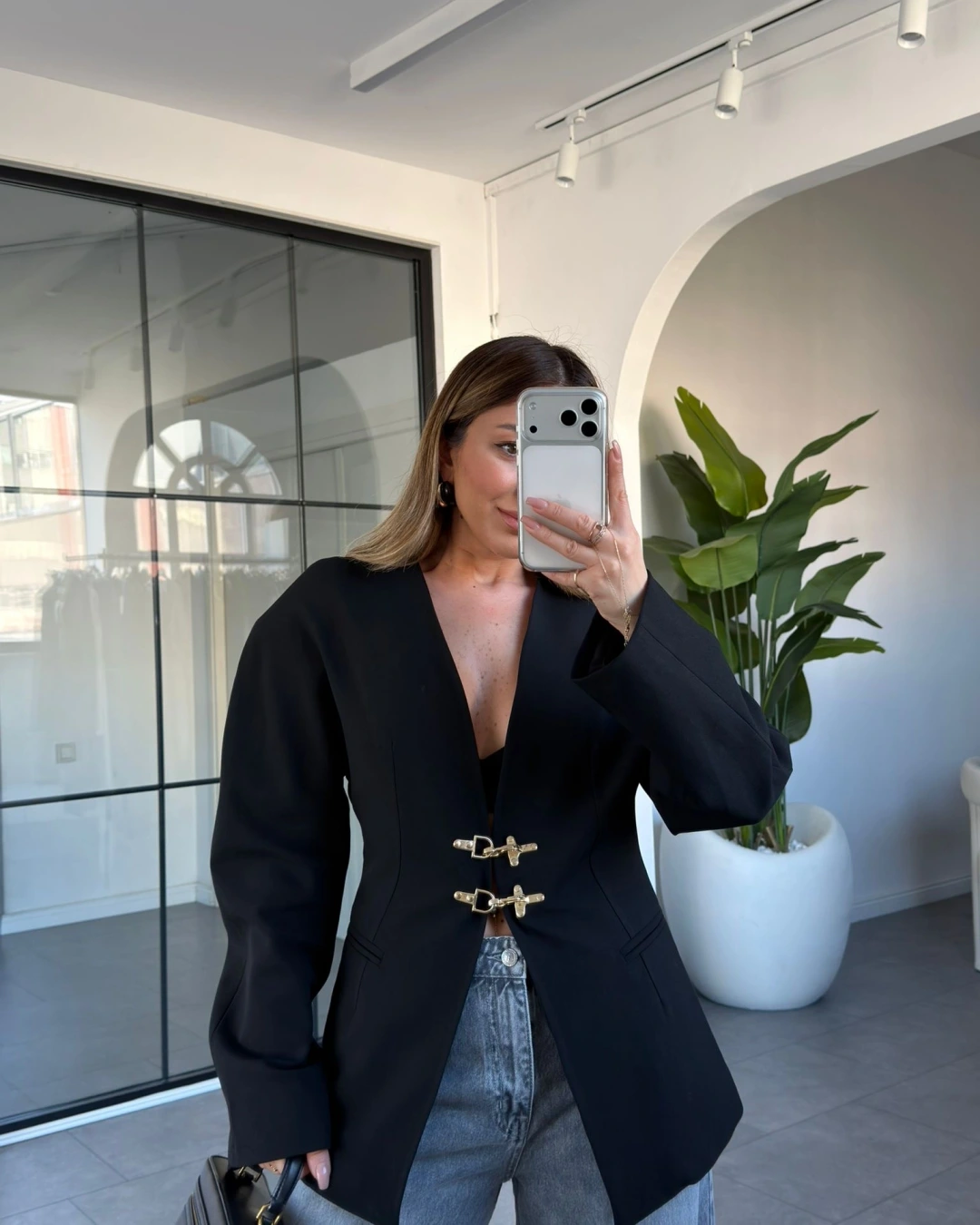 SİYAH GOLD KANCA DETAYLI CEKET 9726