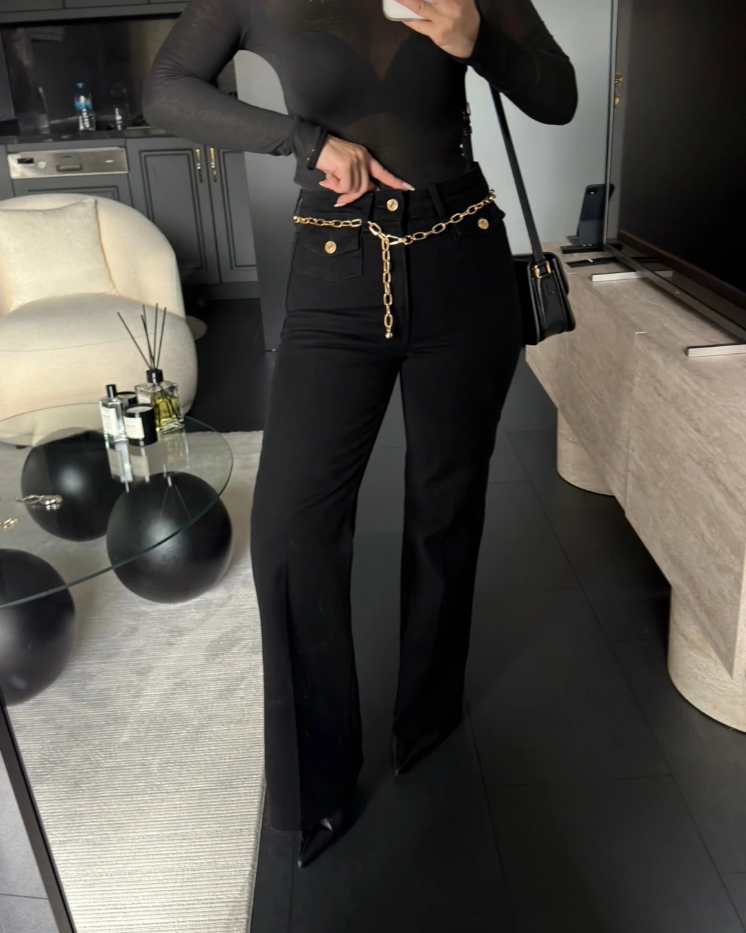 SİYAH GOLD KEMERLİ WİDELEG JEAN