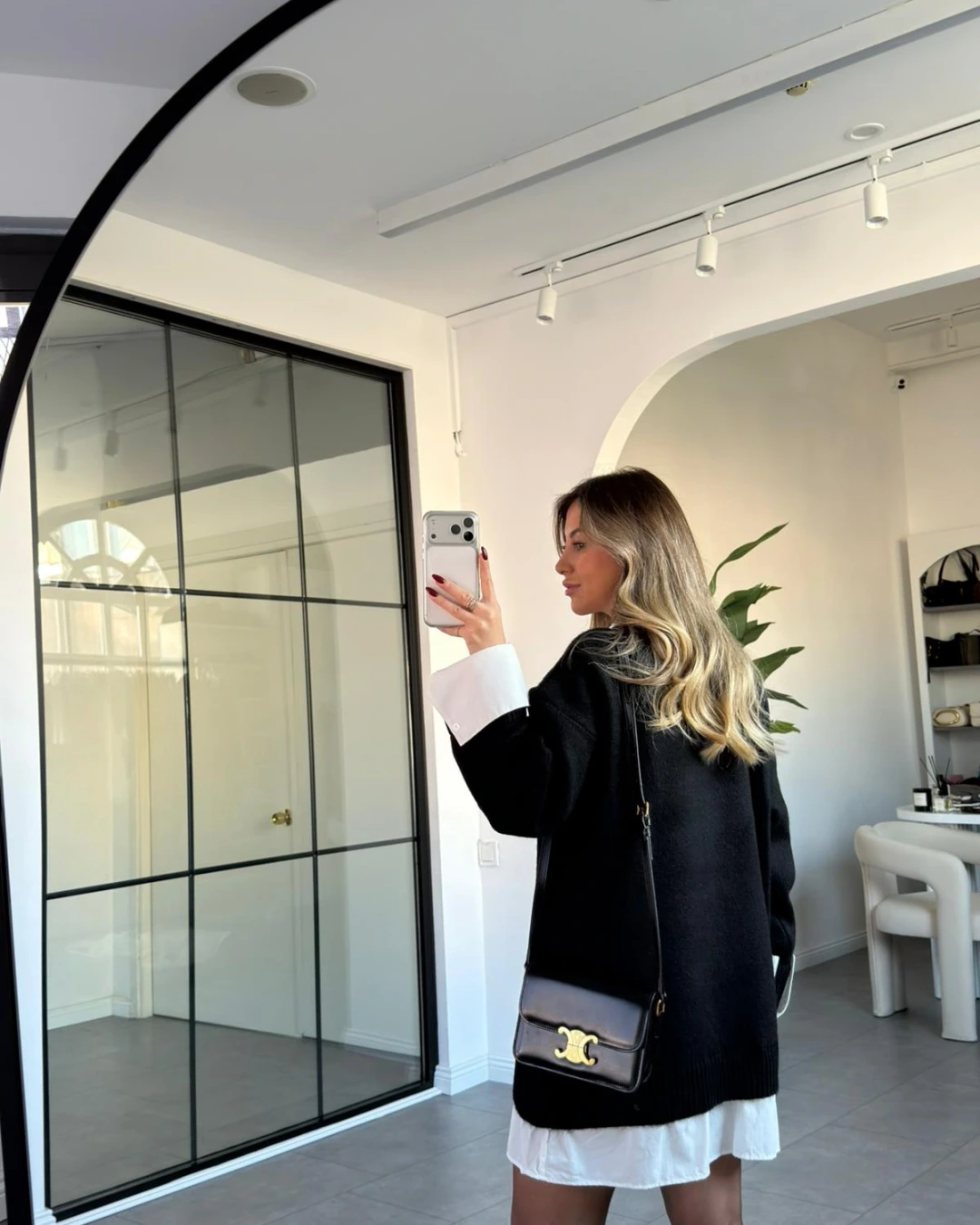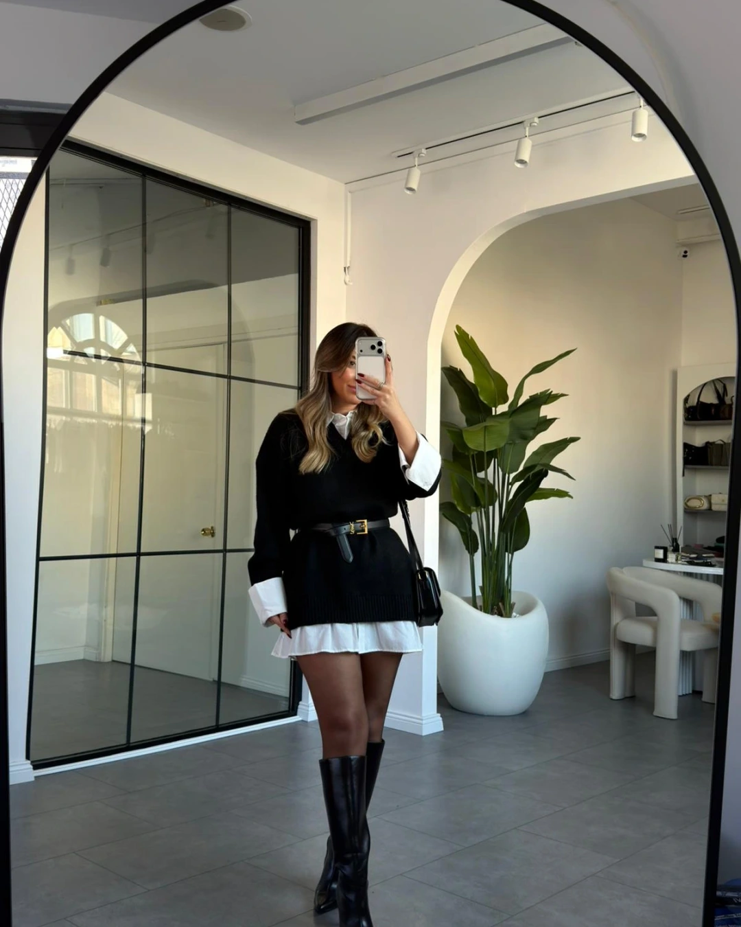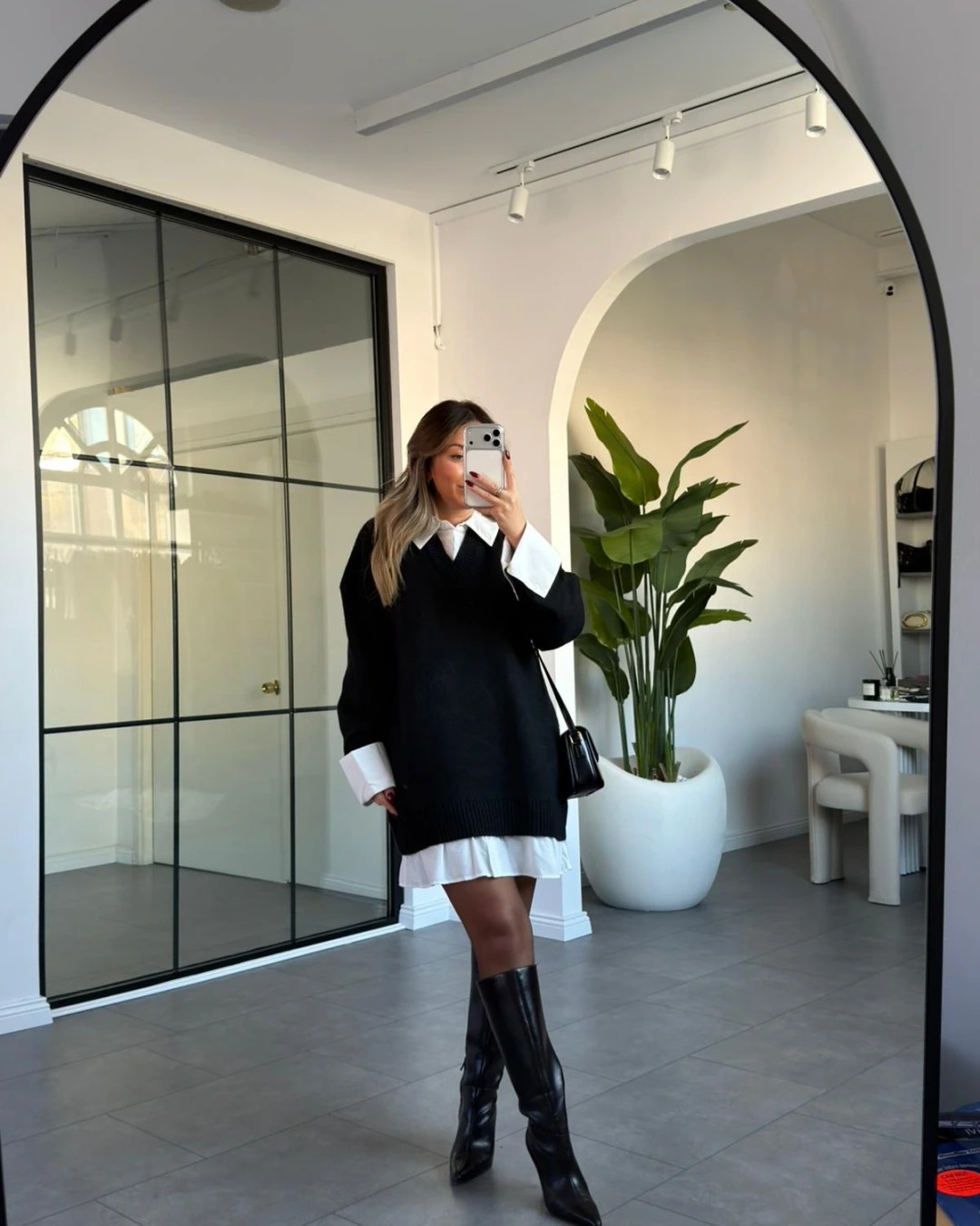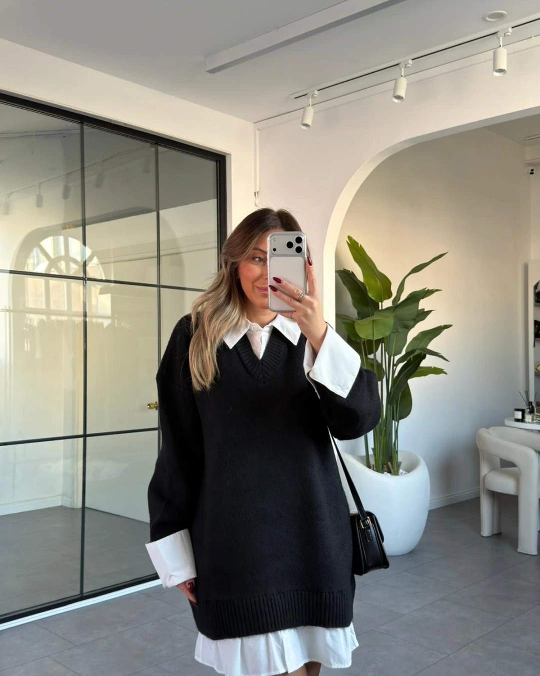 SİYAH GÖMLEK DETAY TRİKO ELBİSE