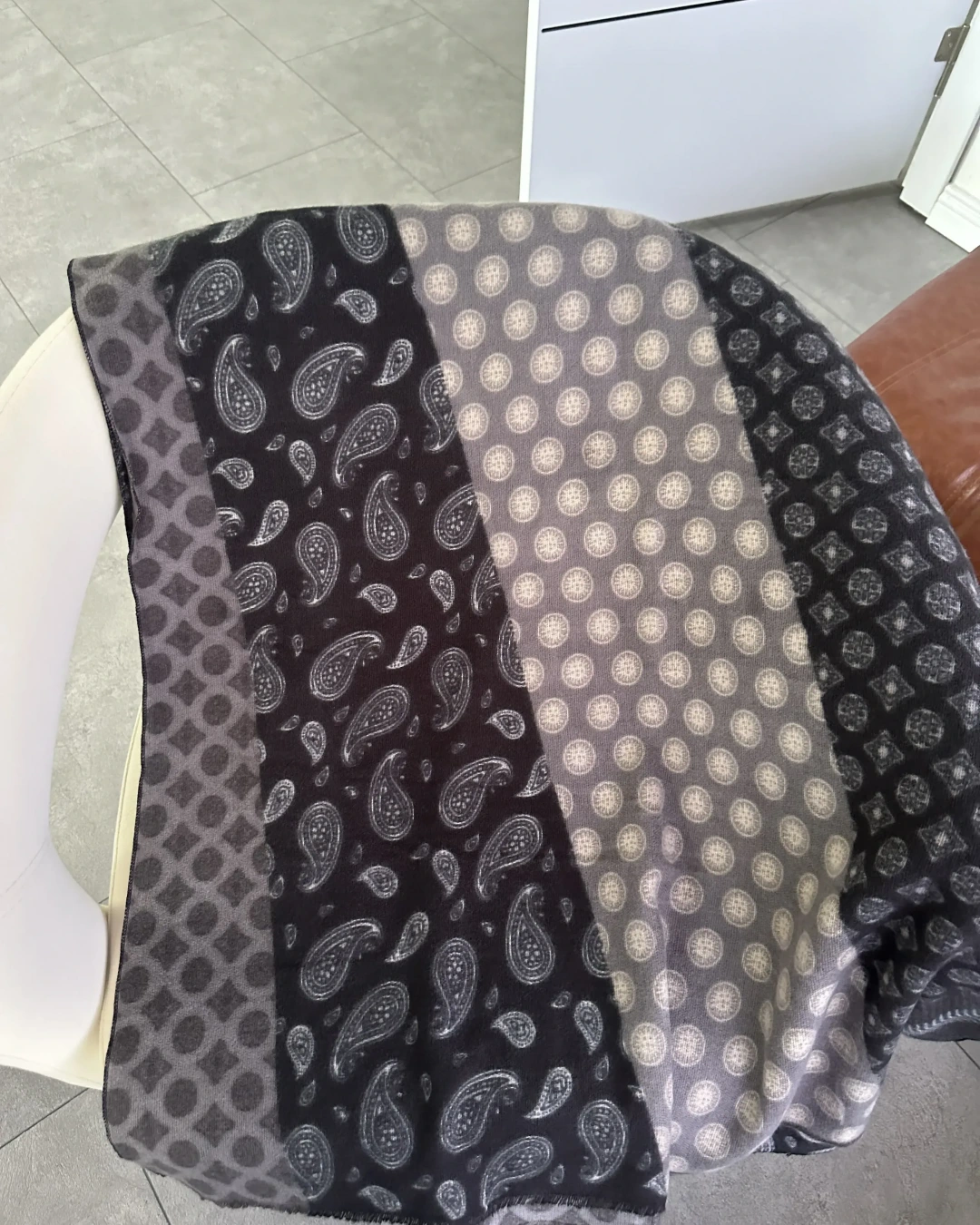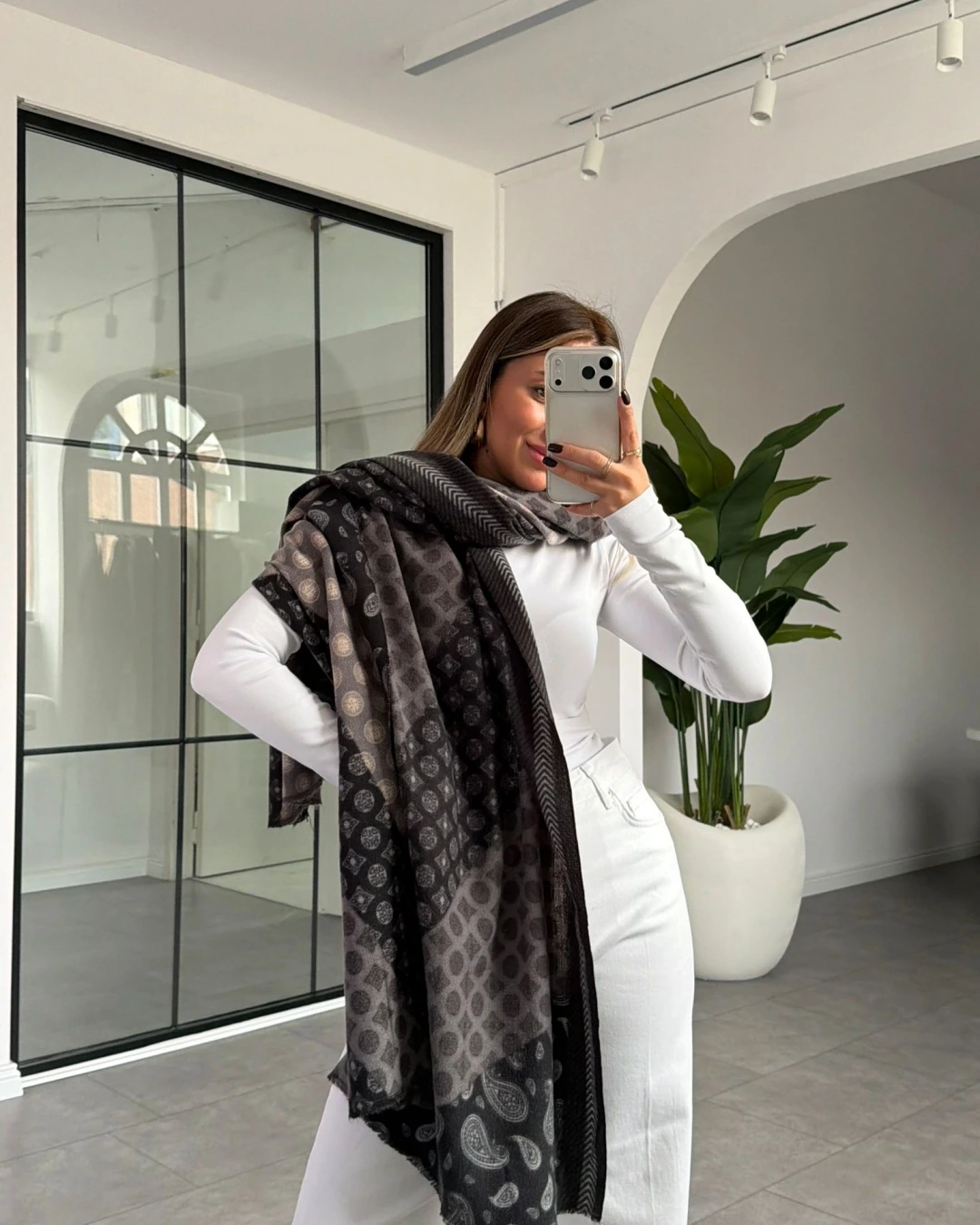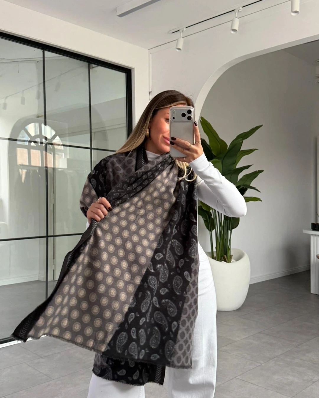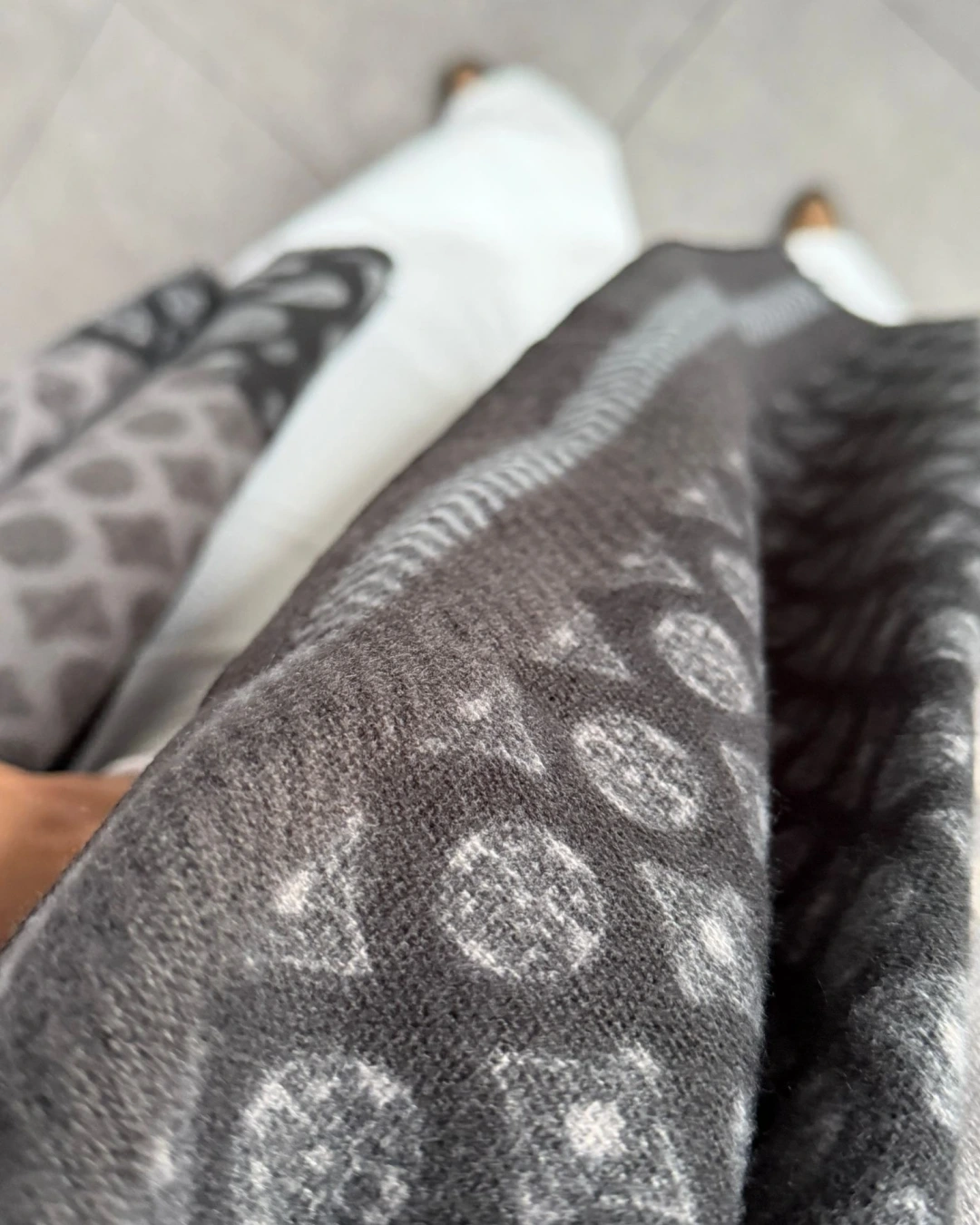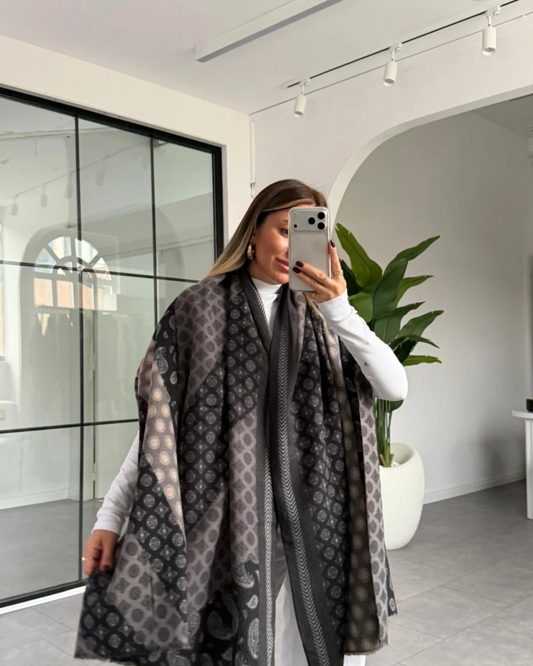 SİYAH GRİ ETNİK DESEN KALIN ŞAL