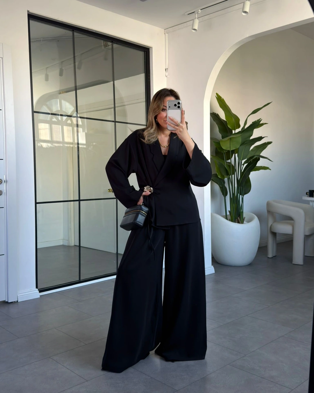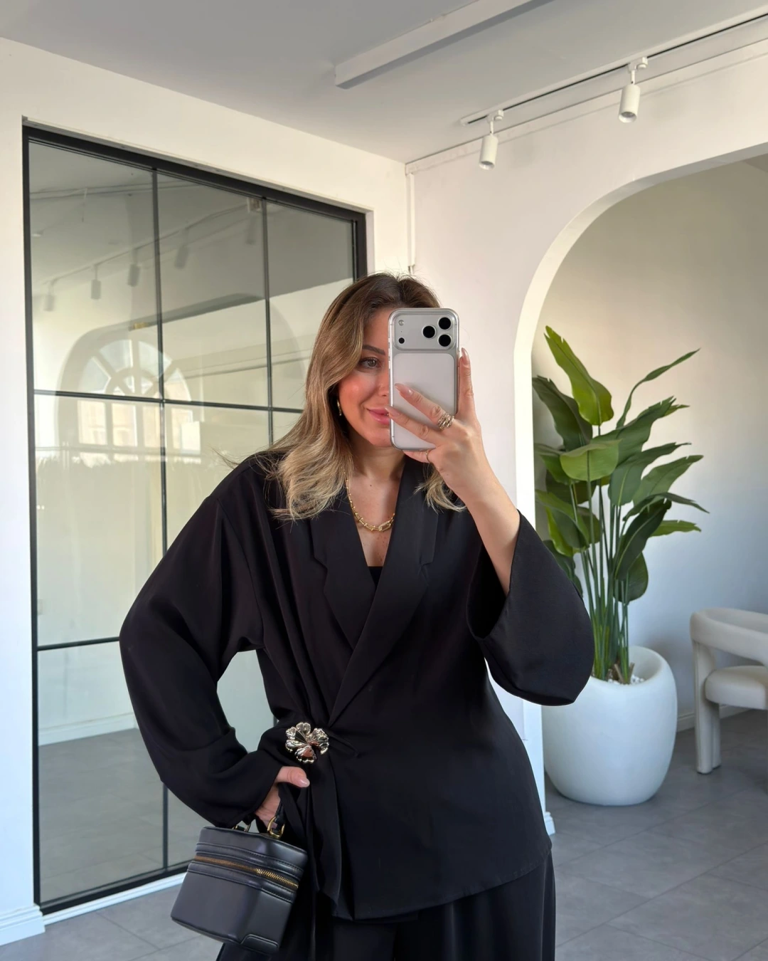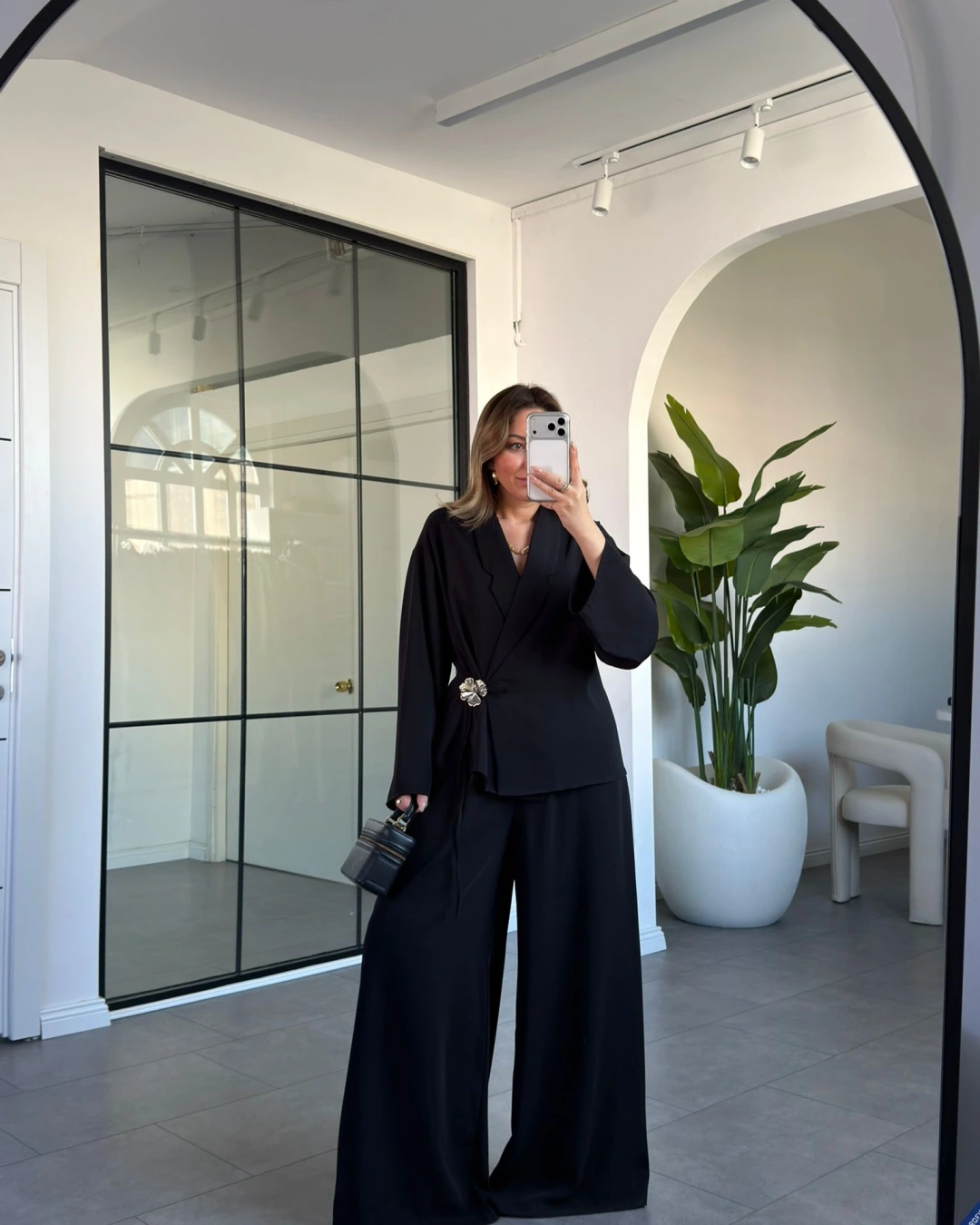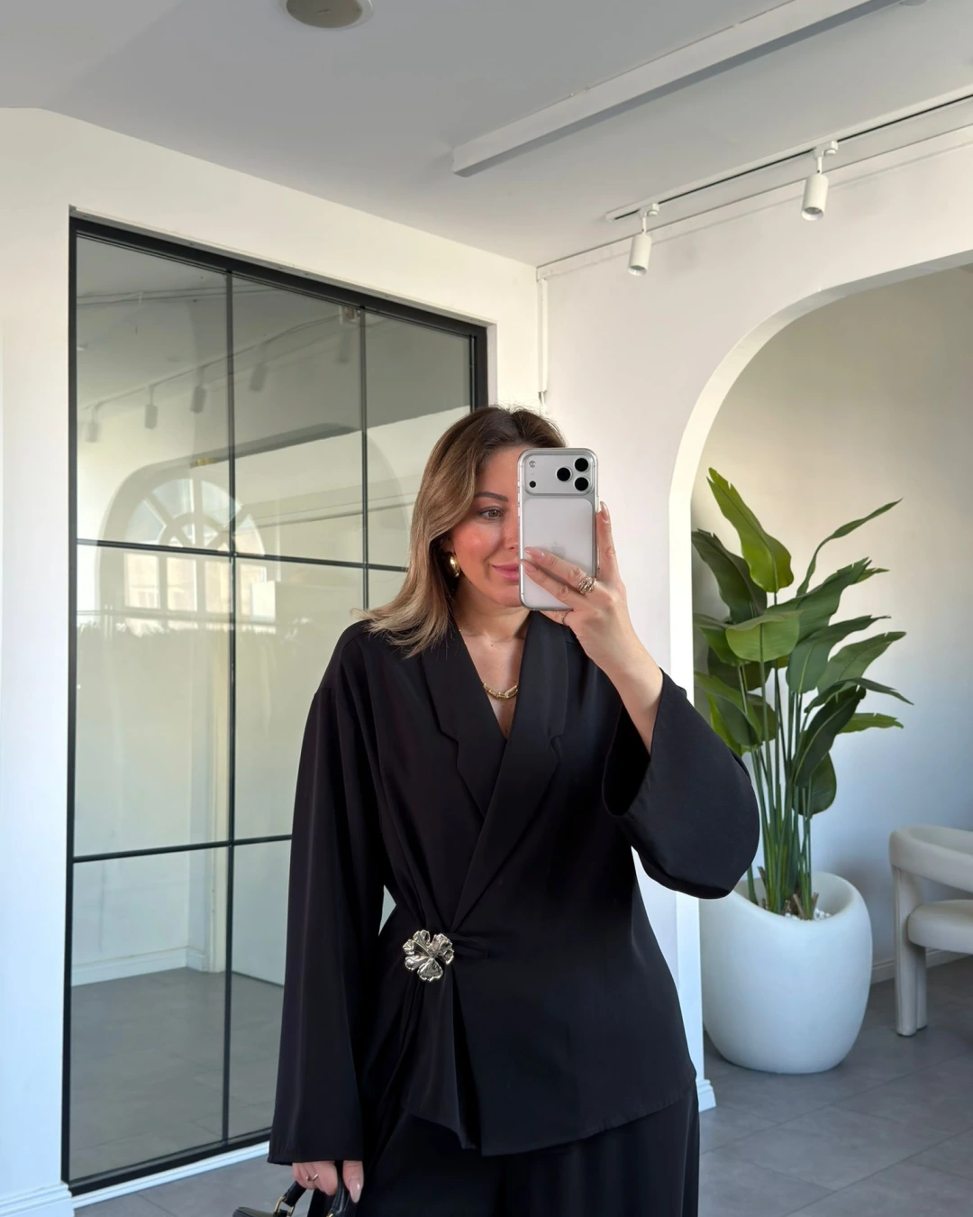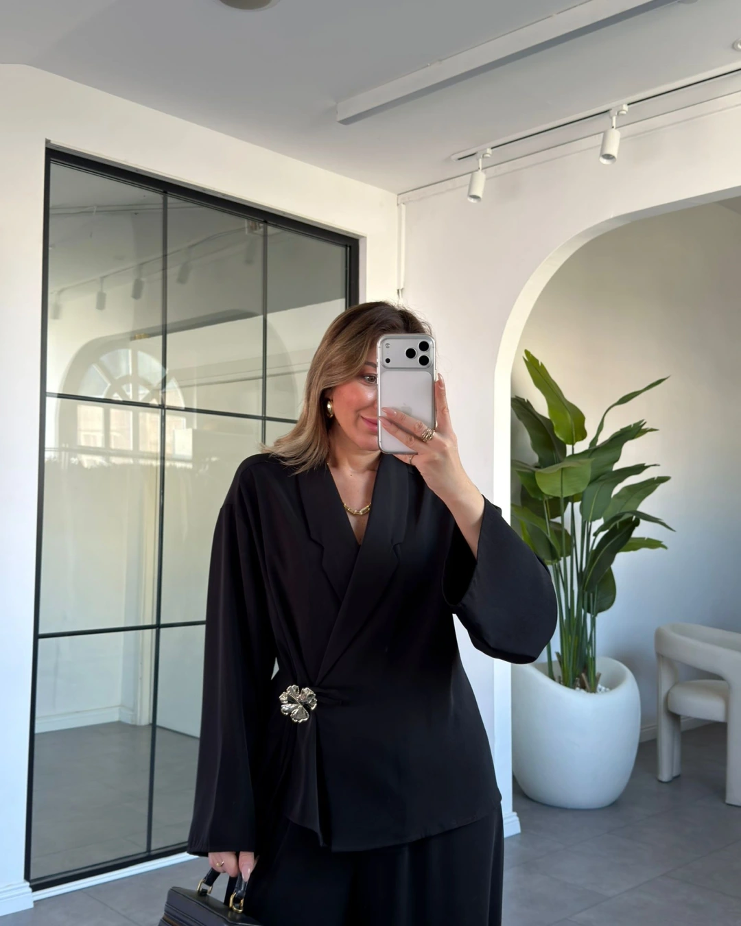 SİYAH GÜL BROŞLU KİMONO TAKIM 8896