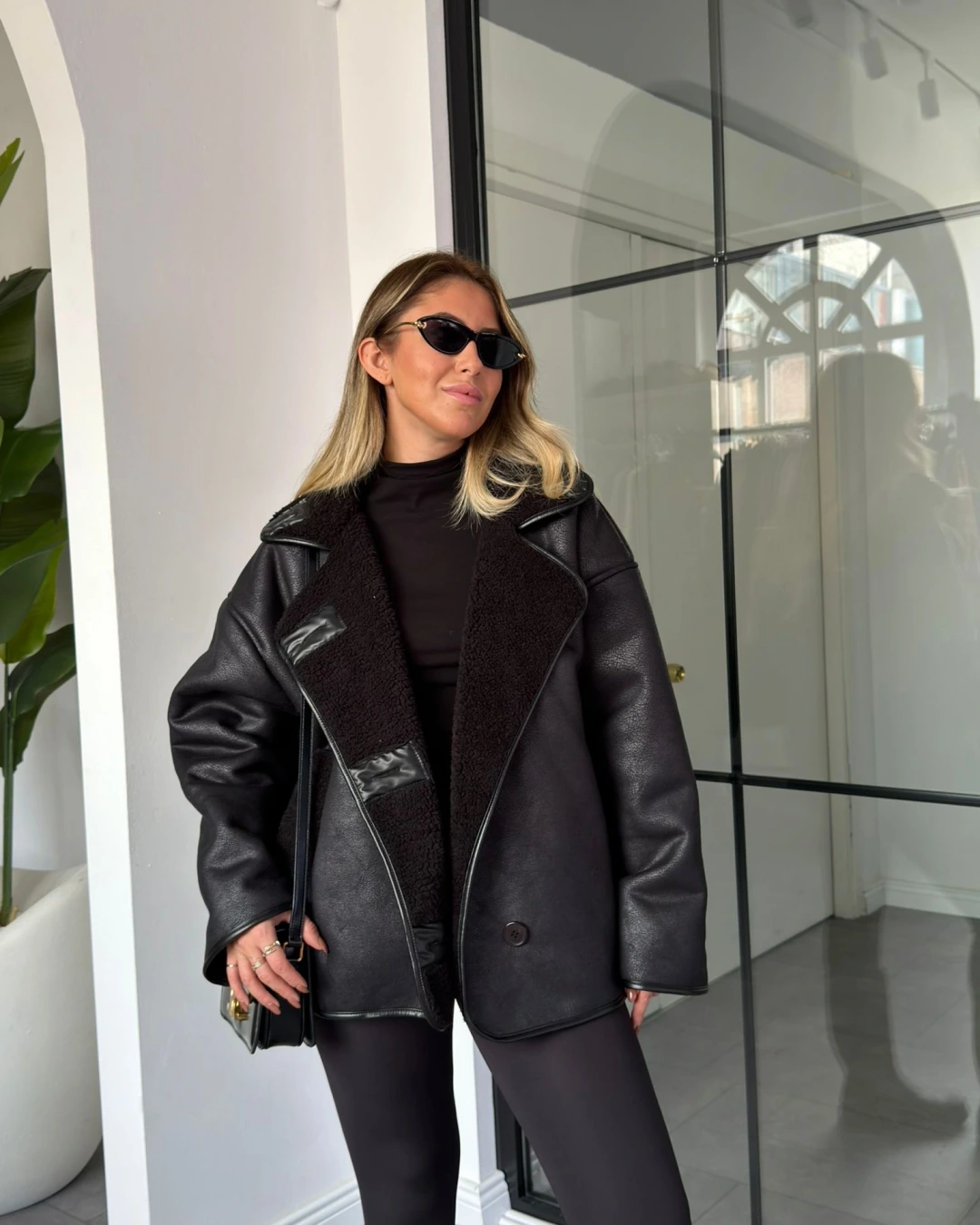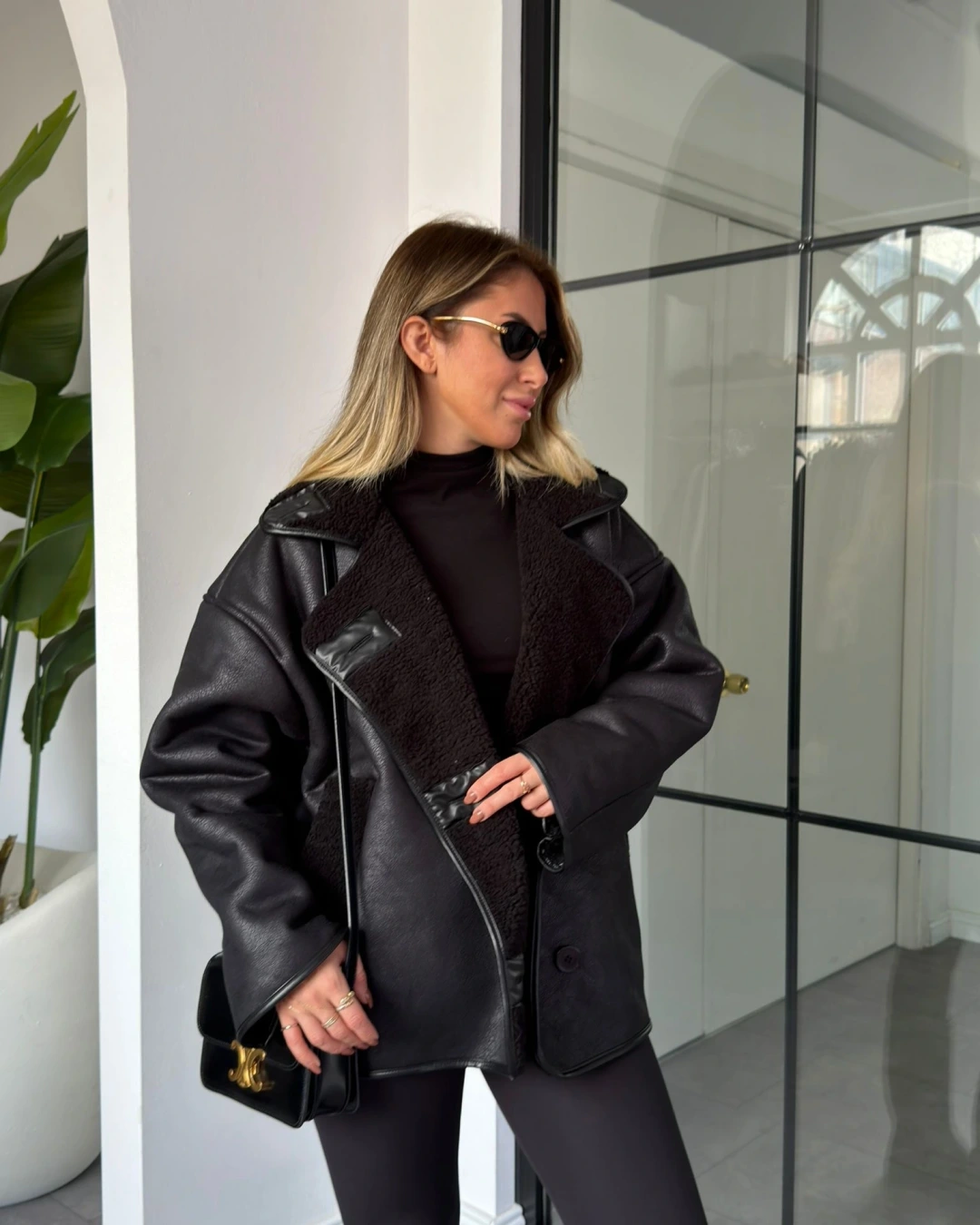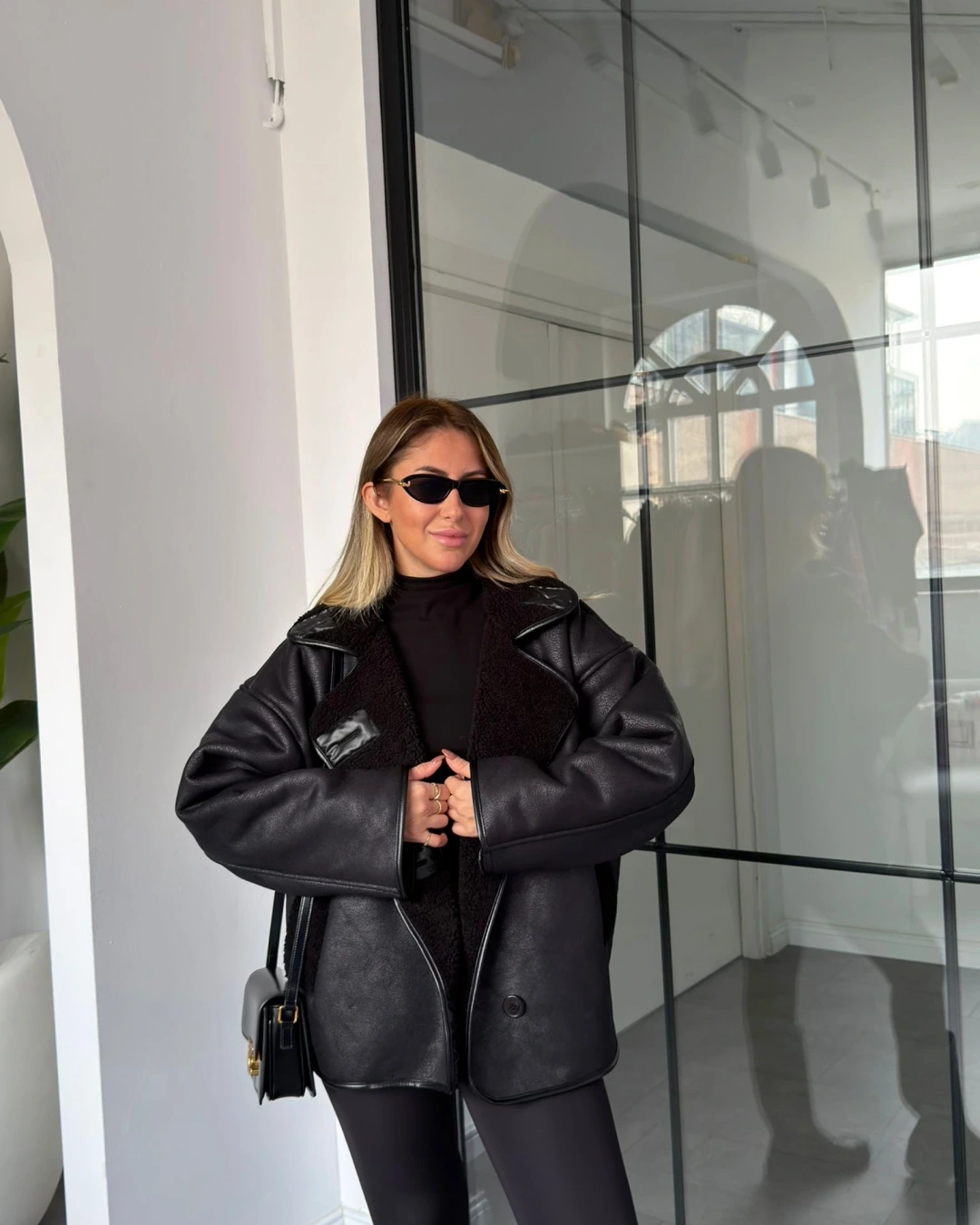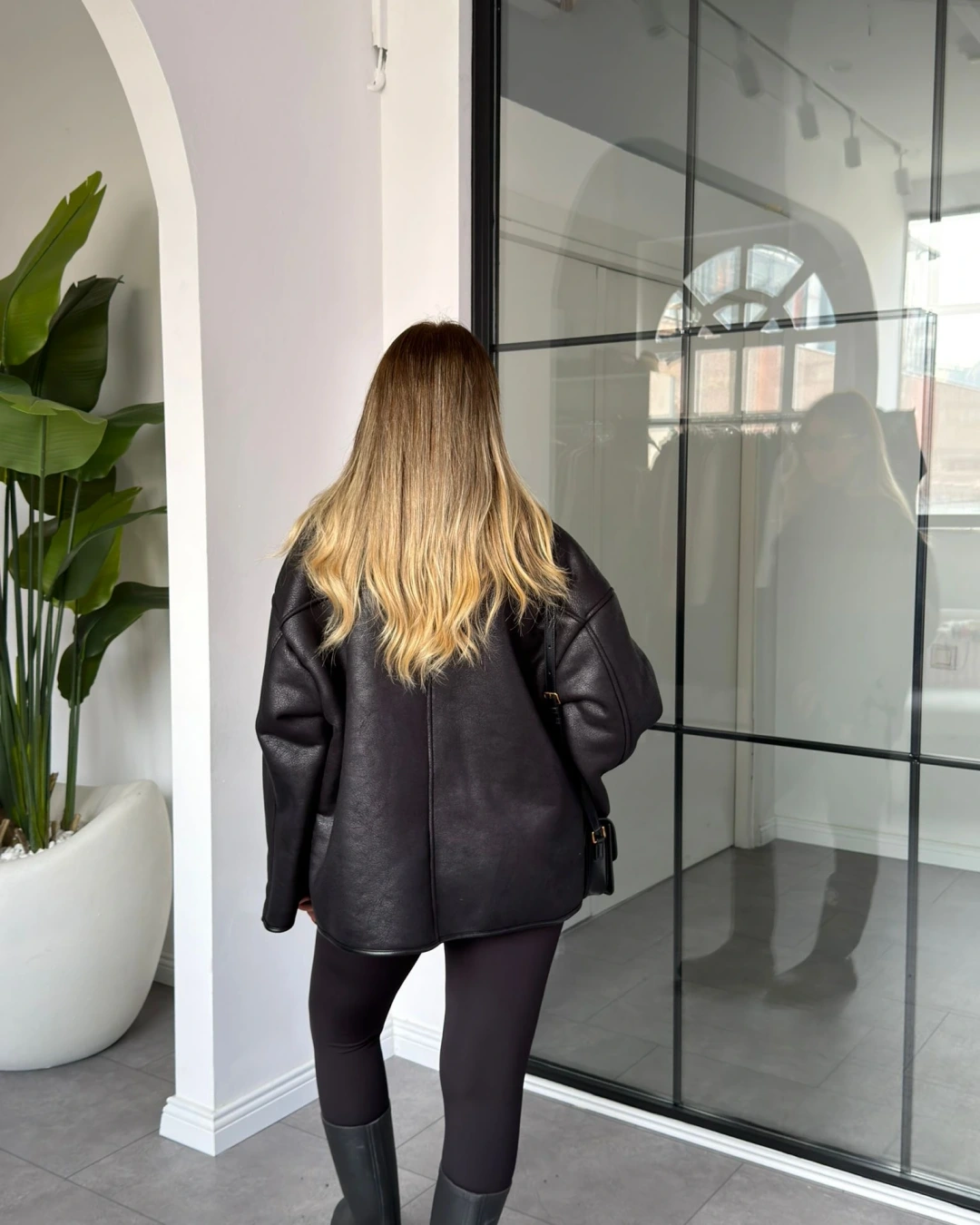 SİYAH İÇİ KÜRKLÜ NUBUK DERİ CEKET