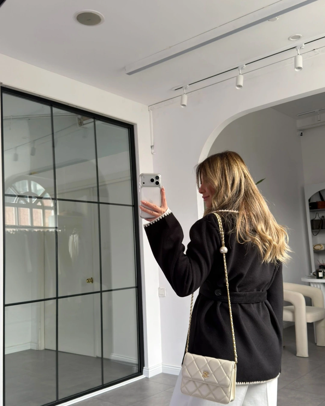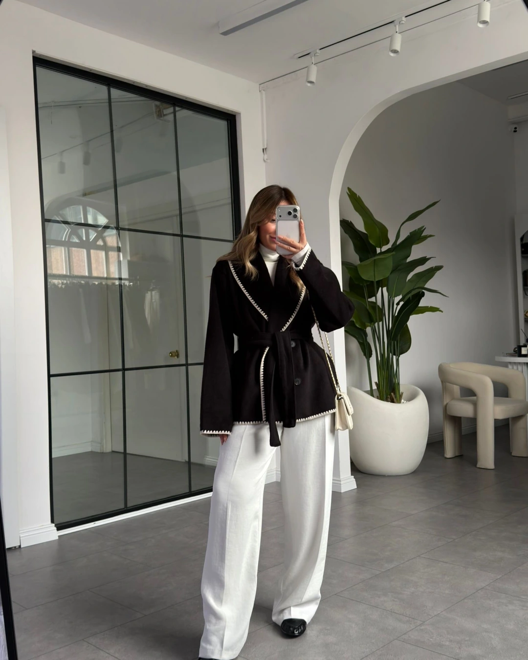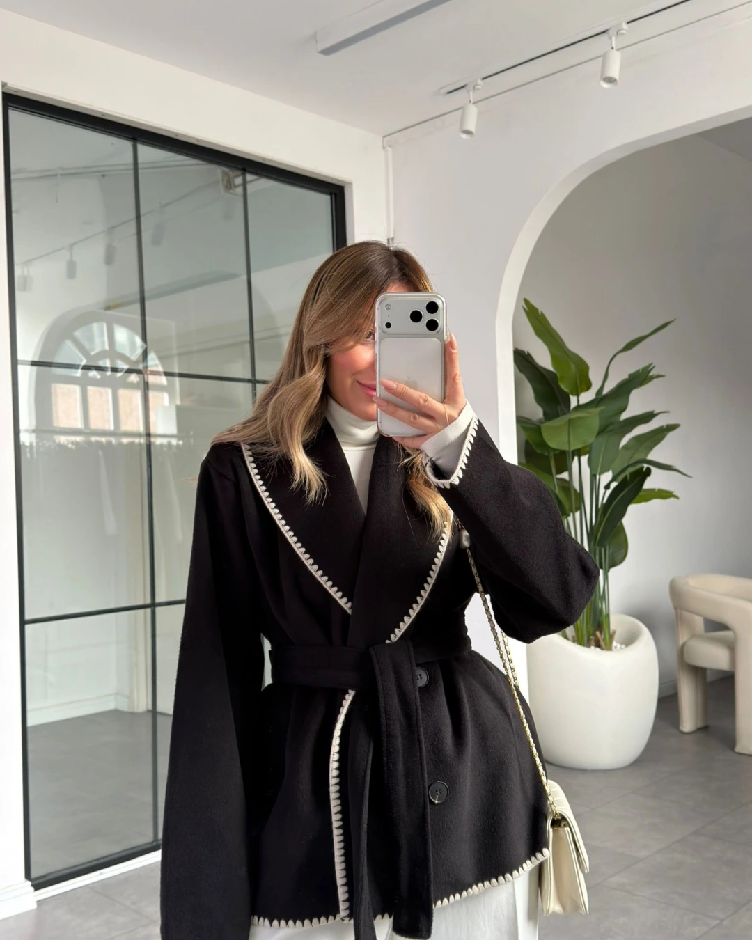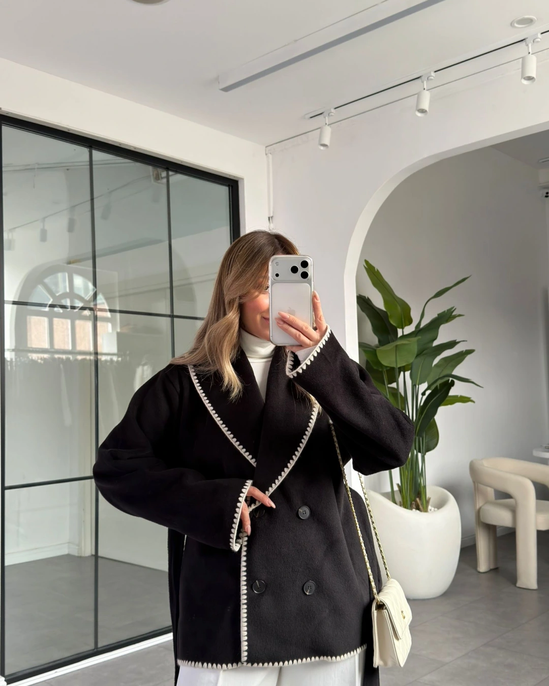 SİYAH KENAR DİKİŞLİ YÜN DOKULU CEKET