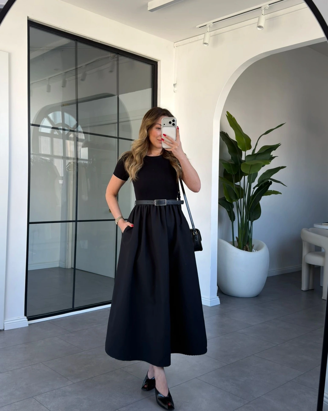 SİYAH KISA KOL KEMERLİ ELBİSE