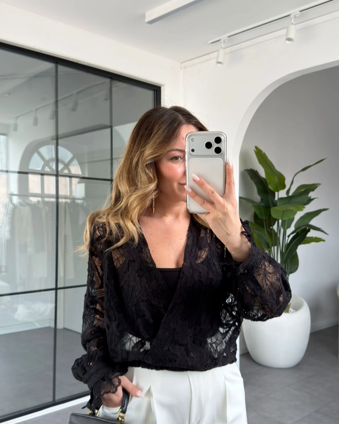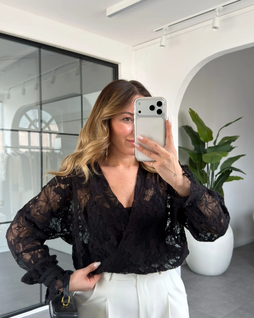 SİYAH KRUVAZE YAKA GÜPÜR BLUZ 3150