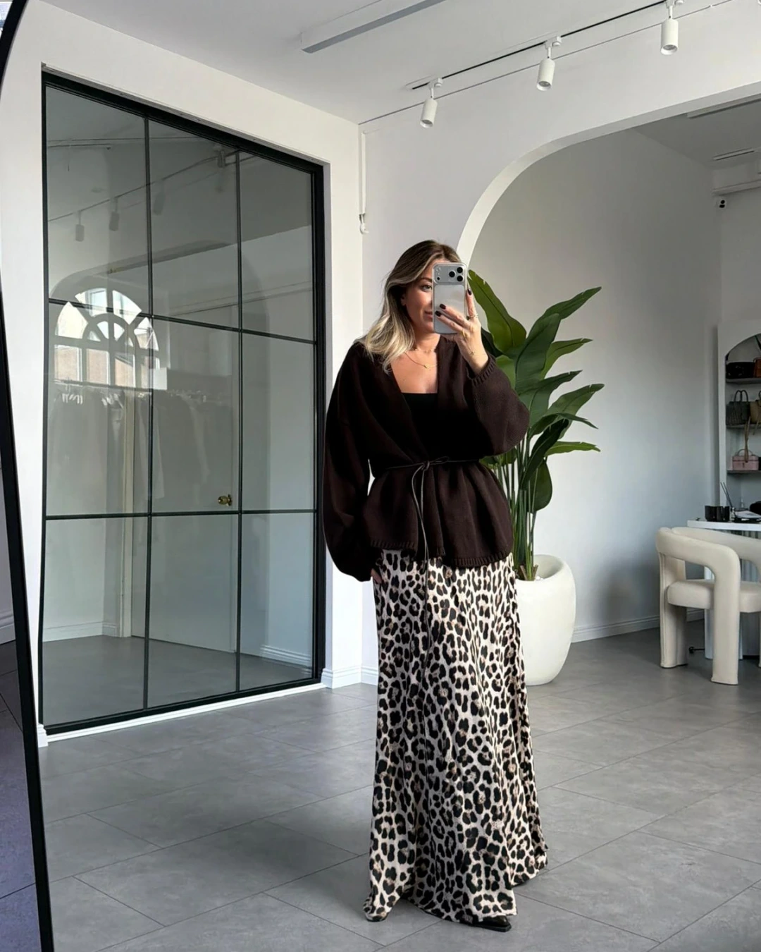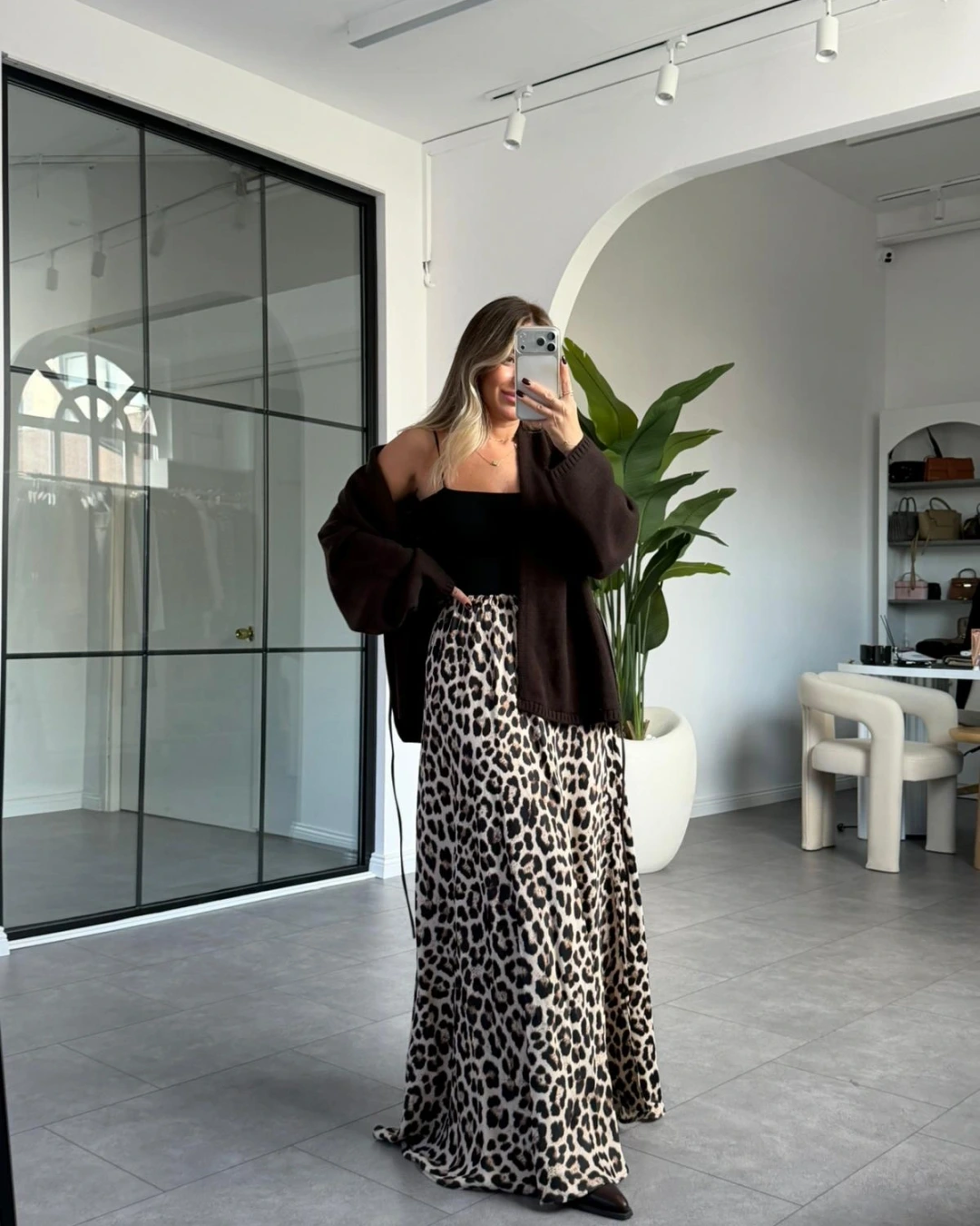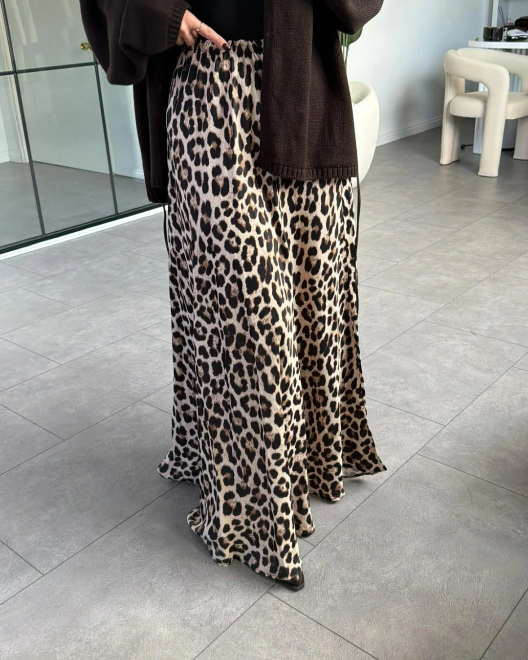 SİYAH LEOPAR DESEN SATEN ETEK