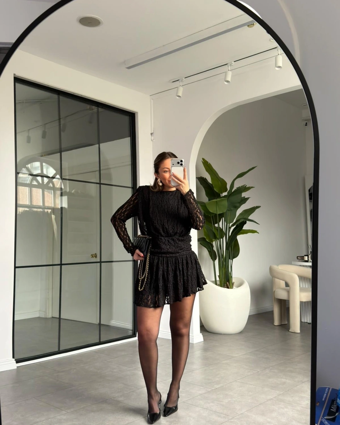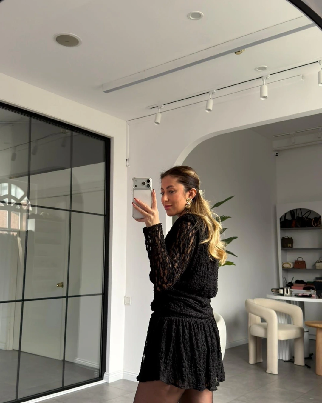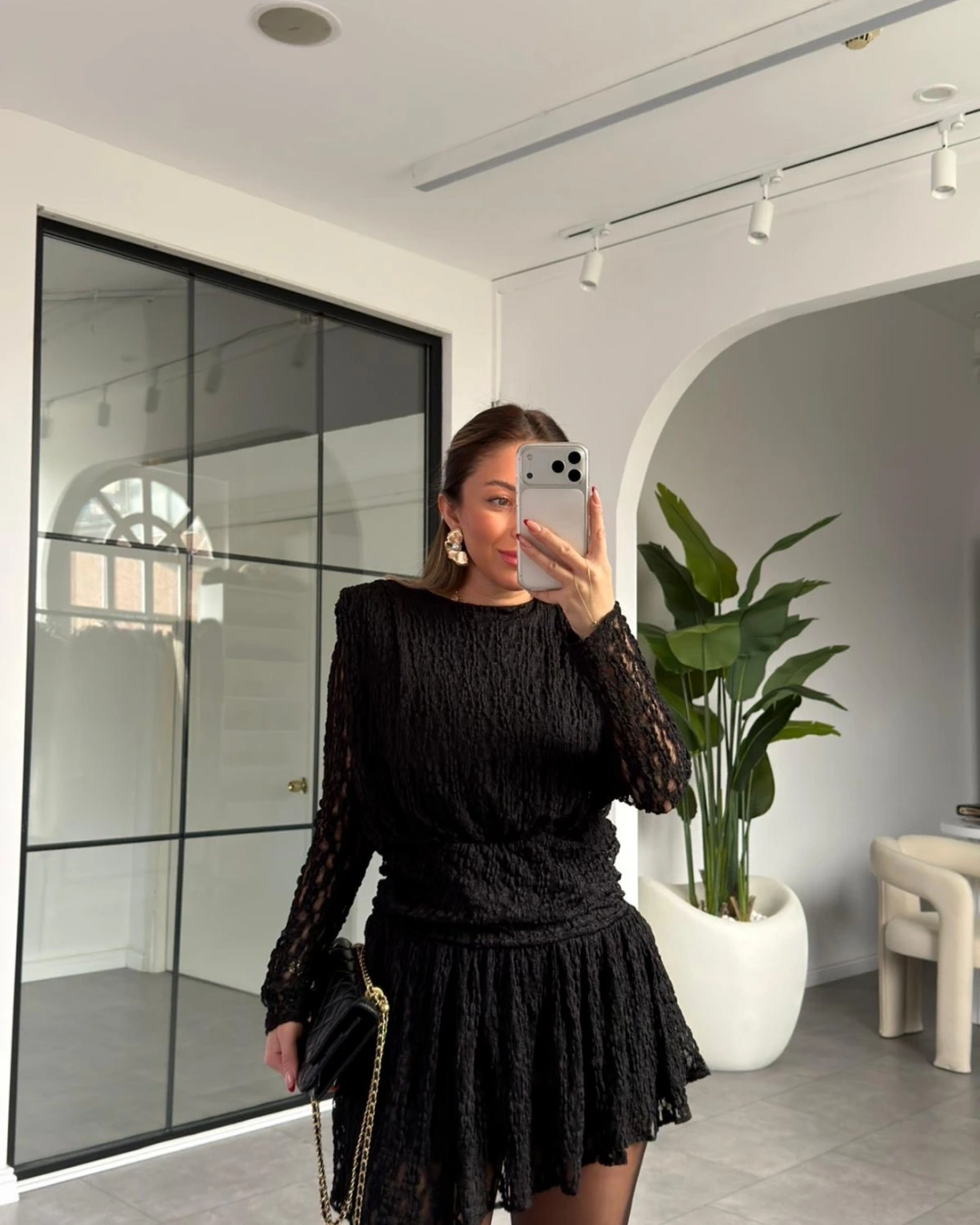 SİYAH OMUZ VATKALI DANTEL ELBİSE