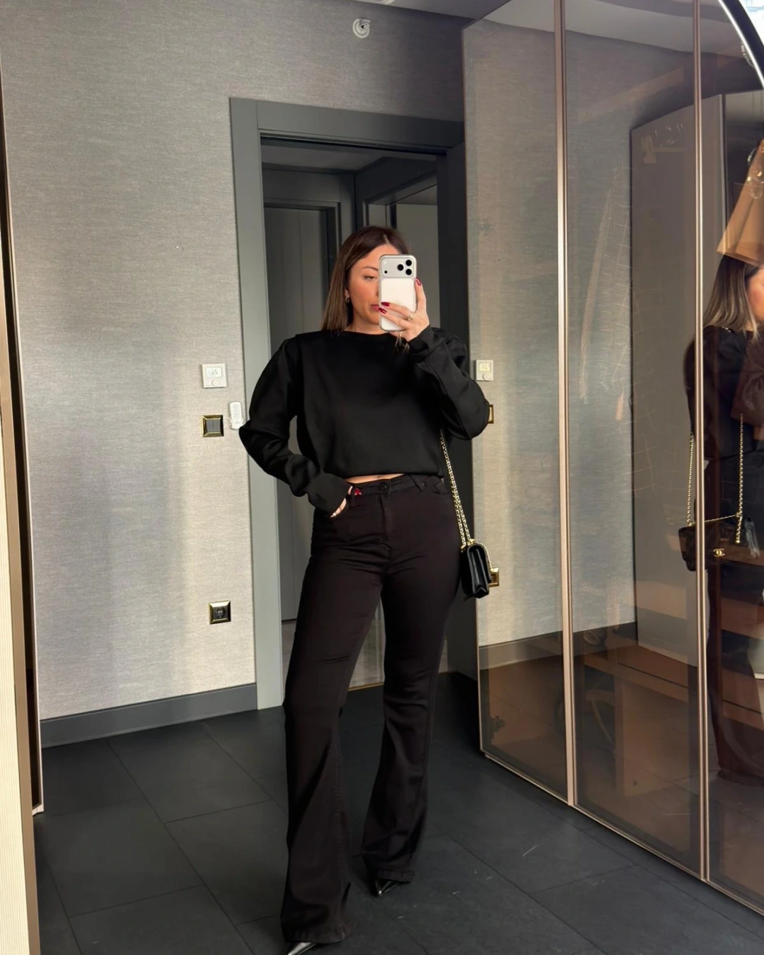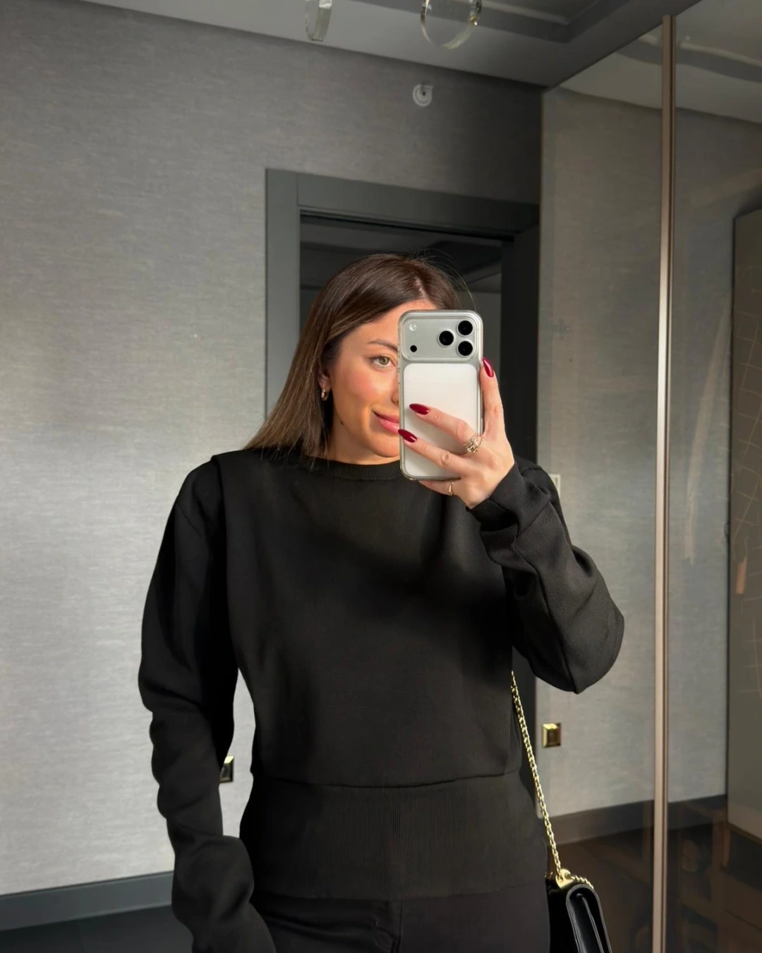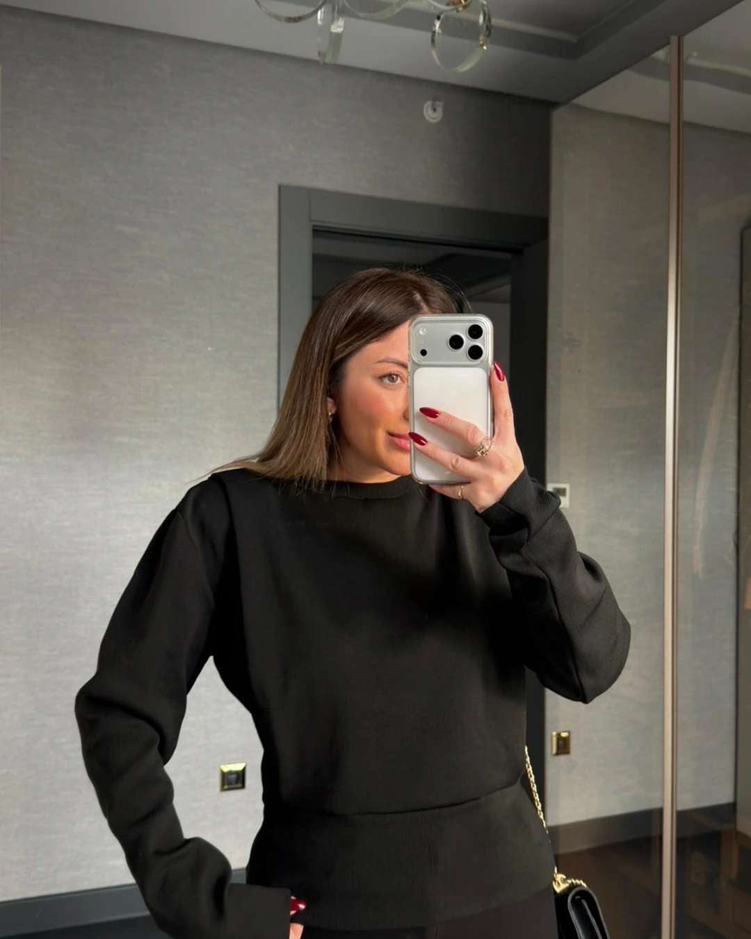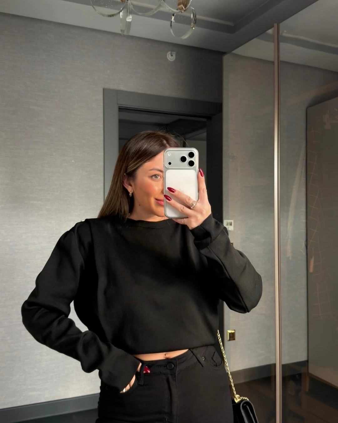 SİYAH OMUZU VATKALI TRİKO KAZAK