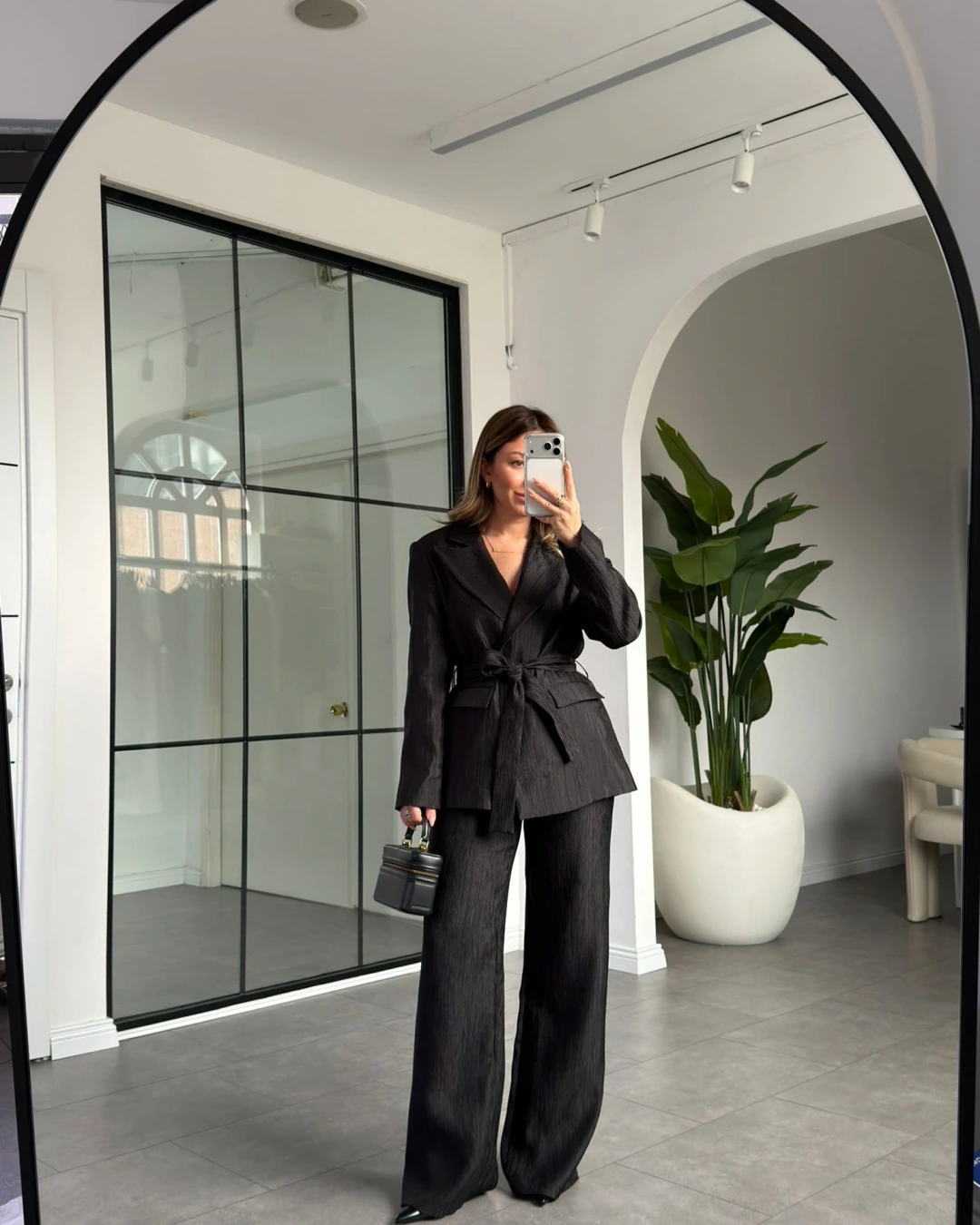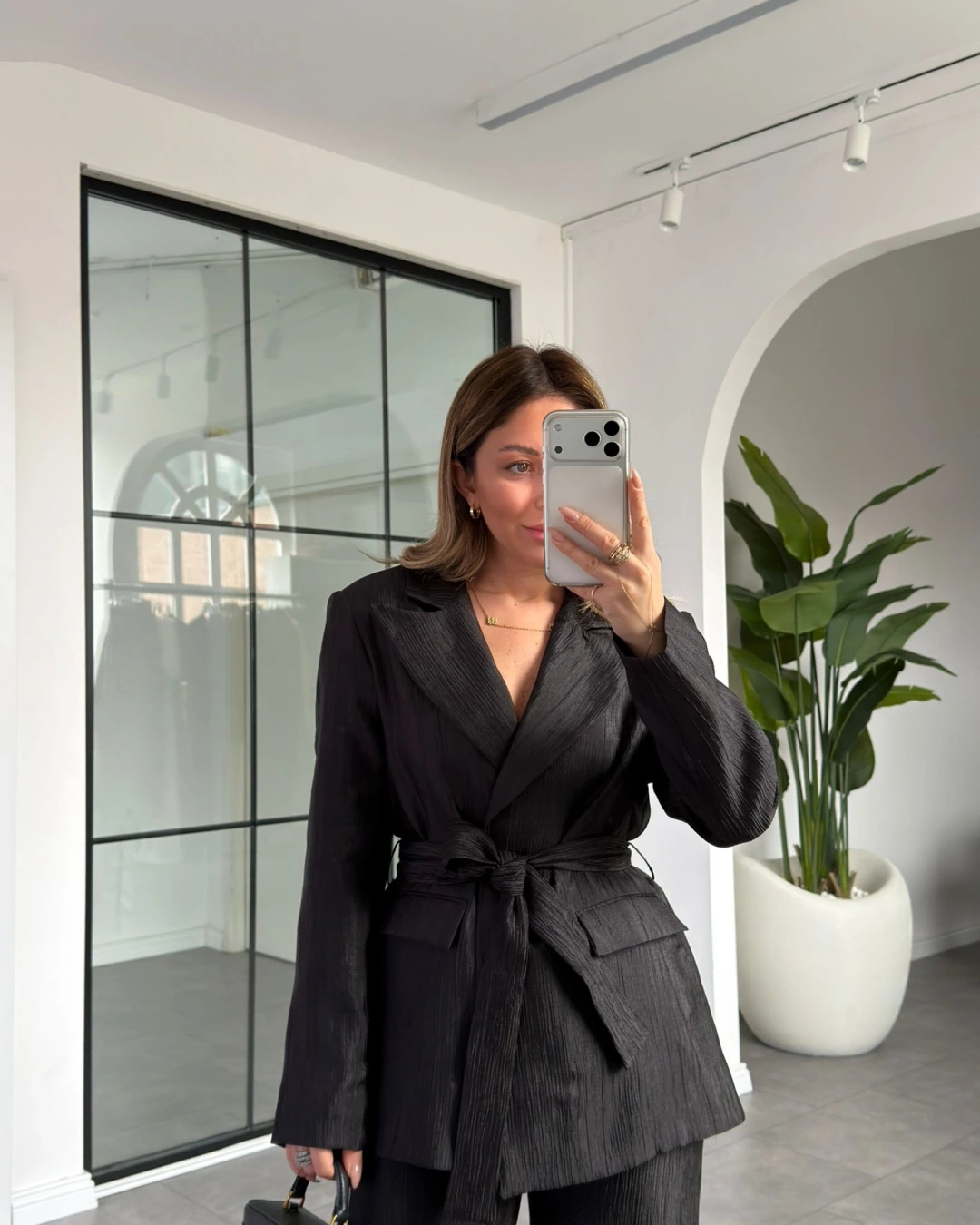 SİYAH PARLAK BELİ KUŞAKLI TAKIM