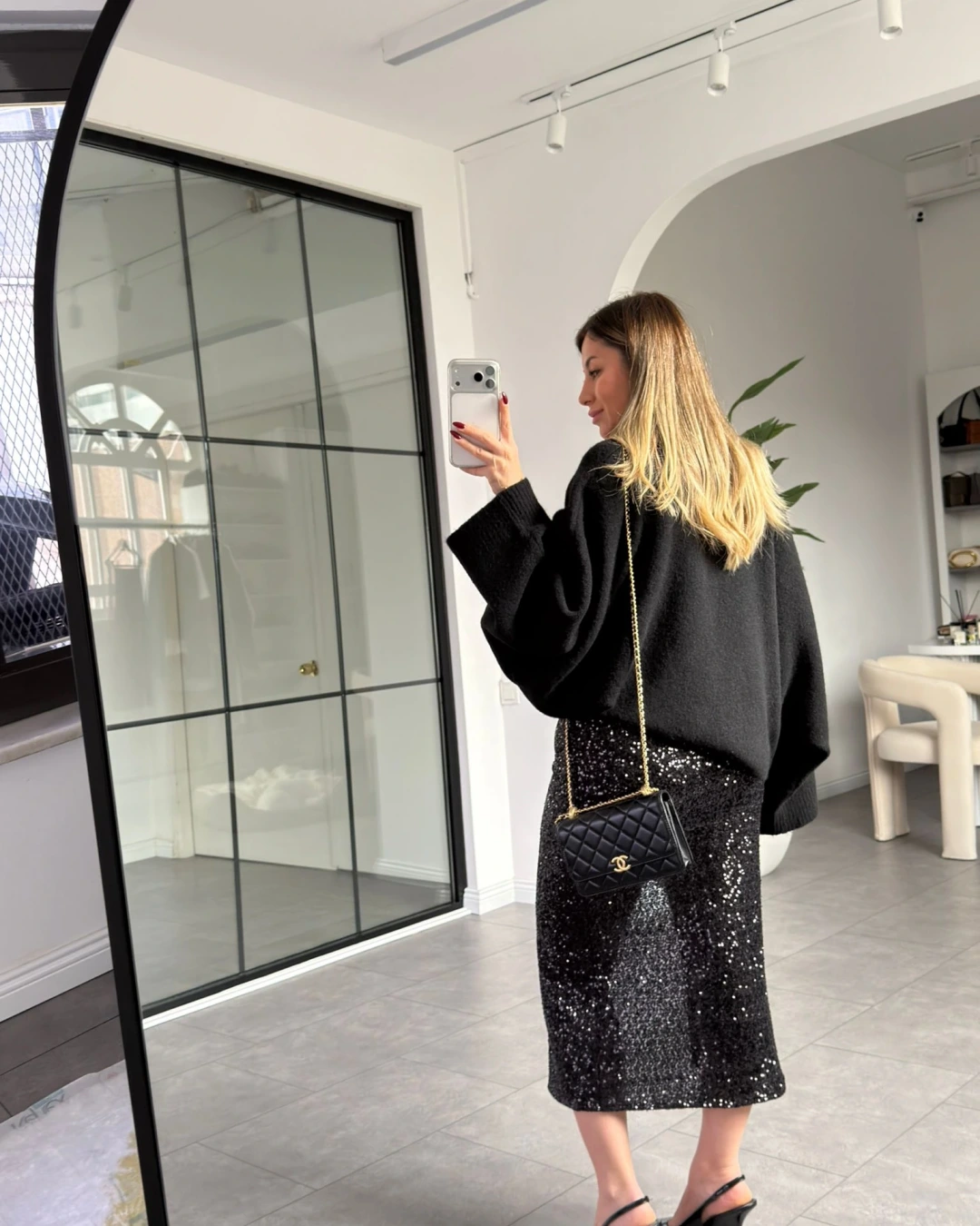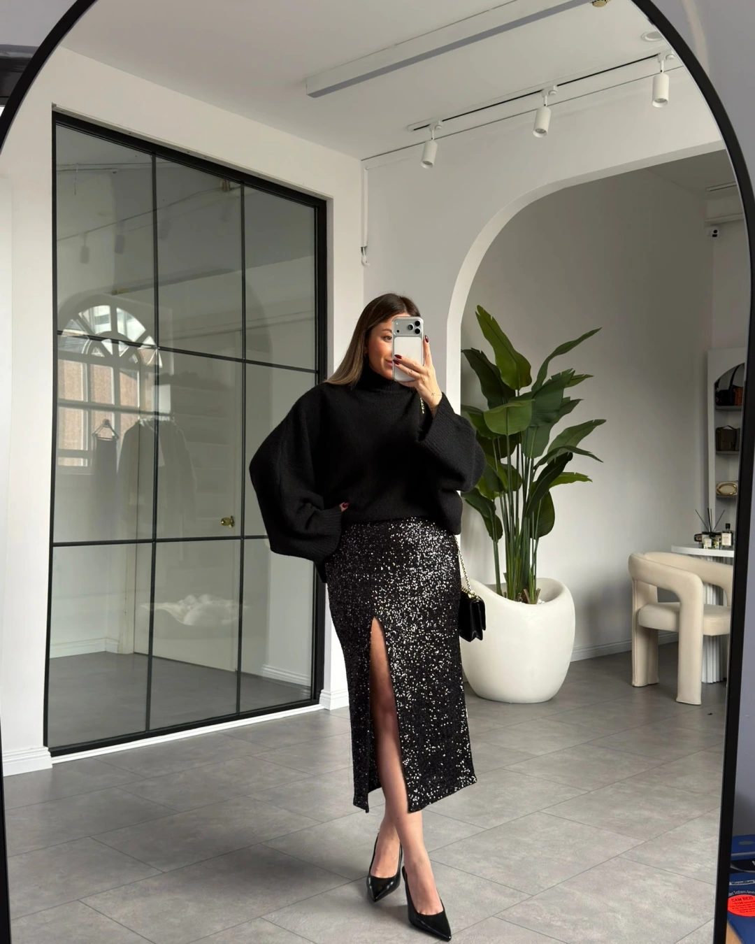 SİYAH PAYETLİ ETEK