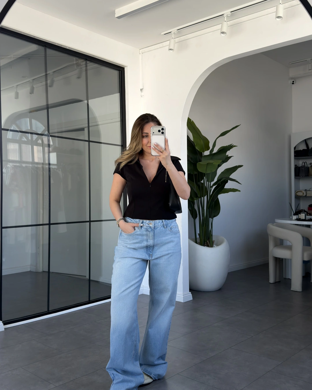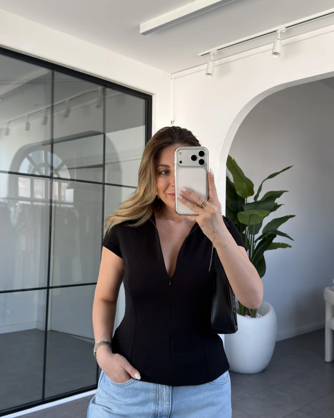 SİYAH POLO YAKA FERMUARLI BLUZ 3232