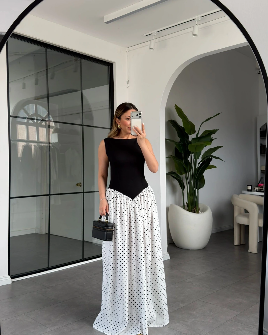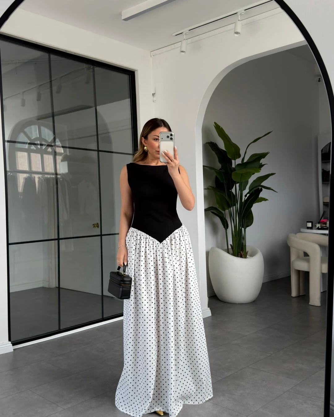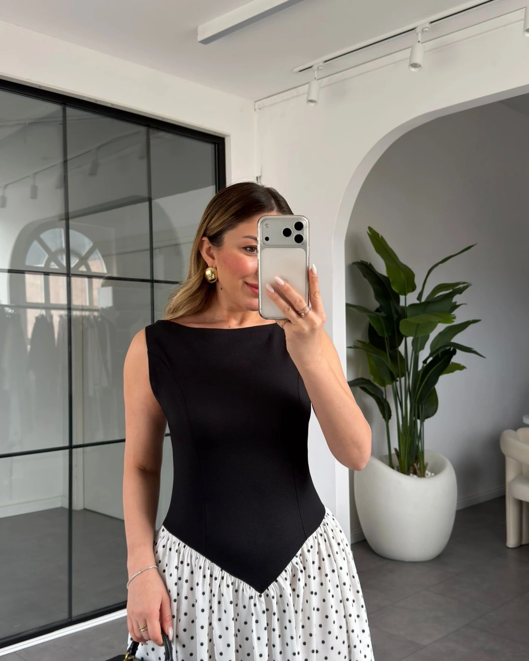 SİYAH PUANTİYE DETAYLI ELBİSE