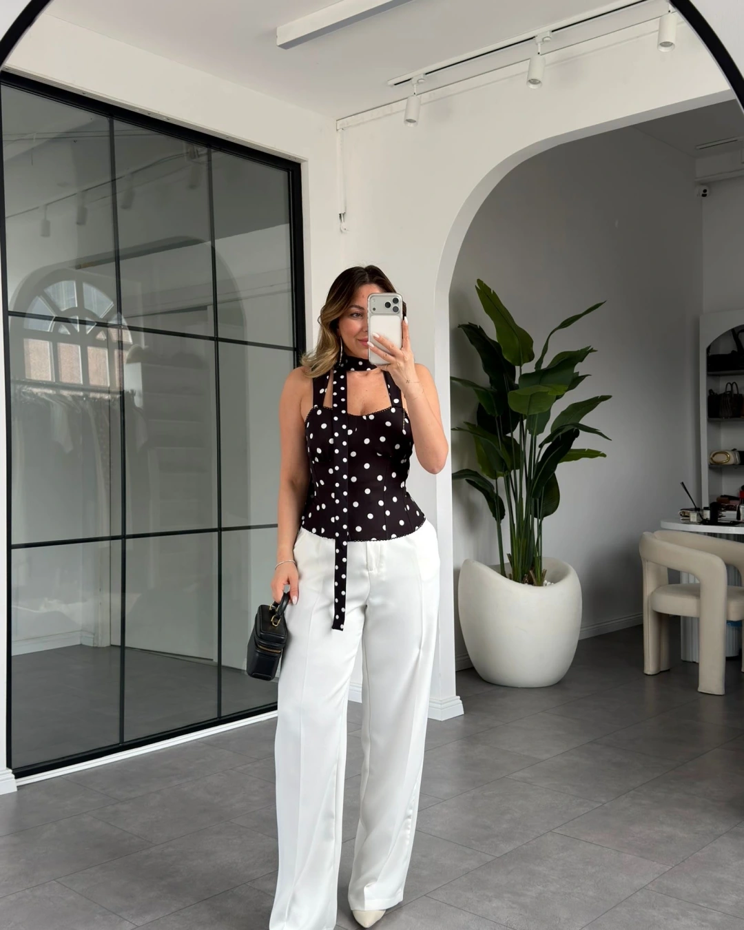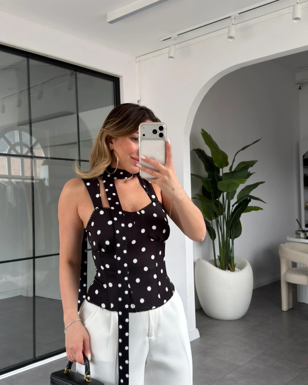 SİYAH PUANTİYE FULARLI KORSE BLUZ 1037