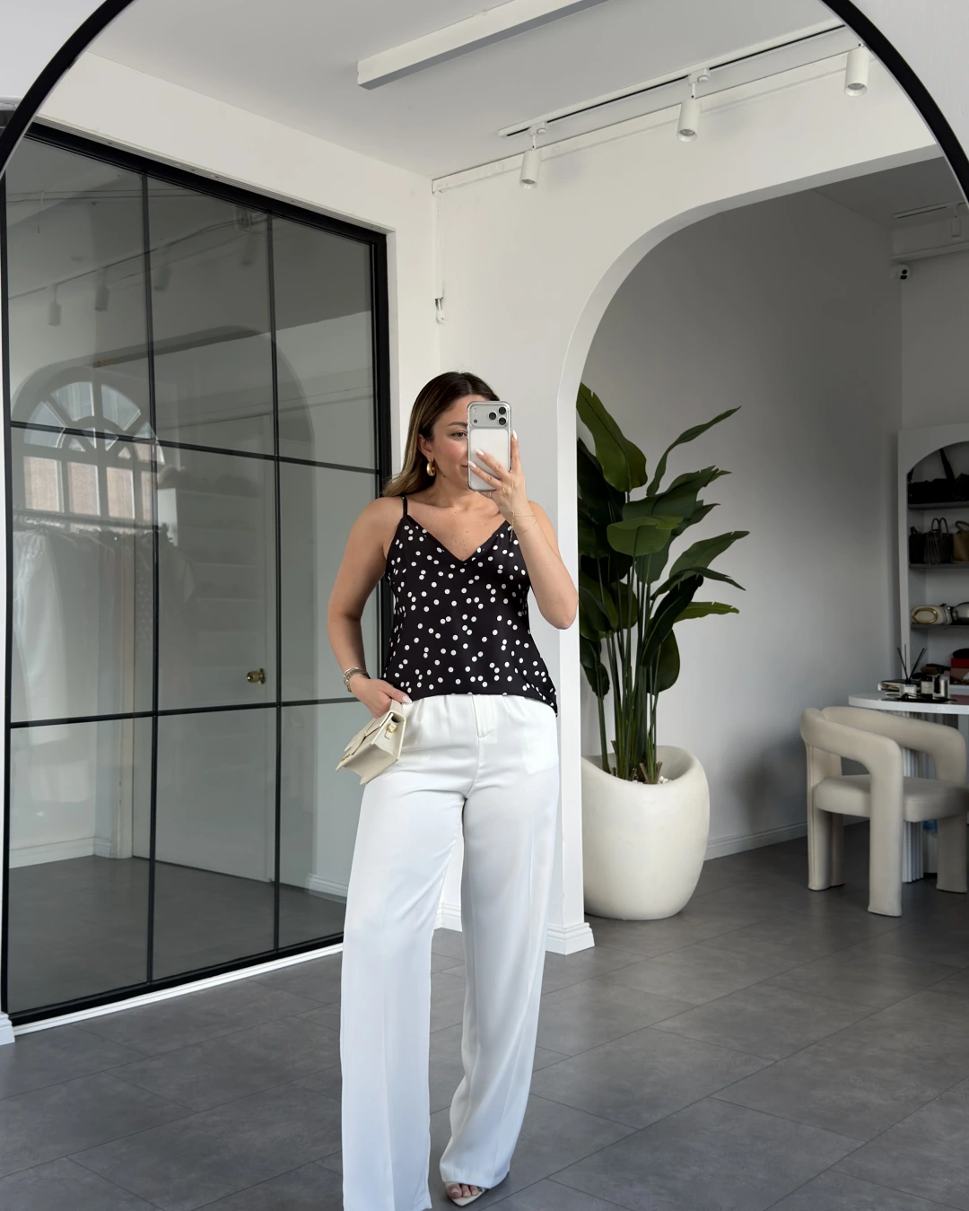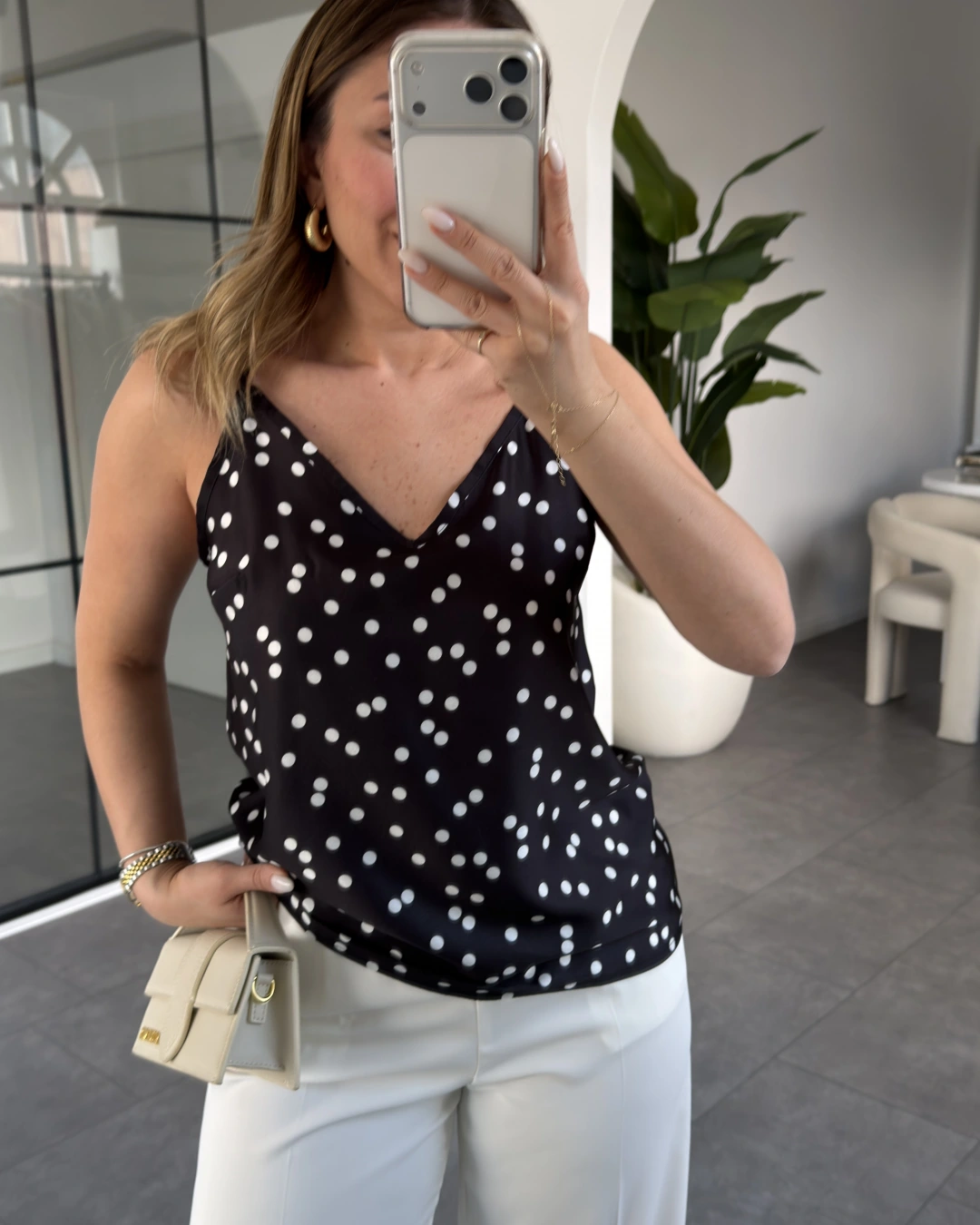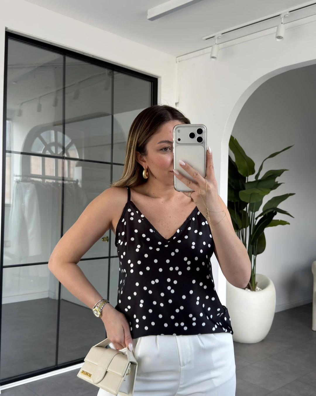 SİYAH PUANTİYE İP ASKILI BLUZ 8577