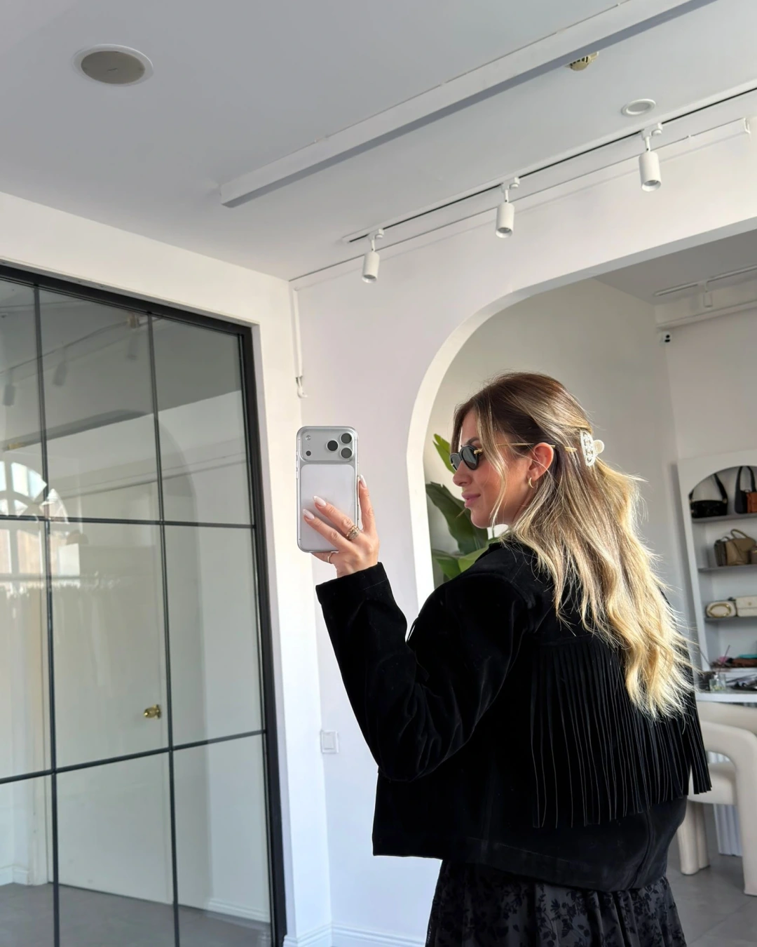 SİYAH PÜSKÜL DETAYLI SÜET CEKET