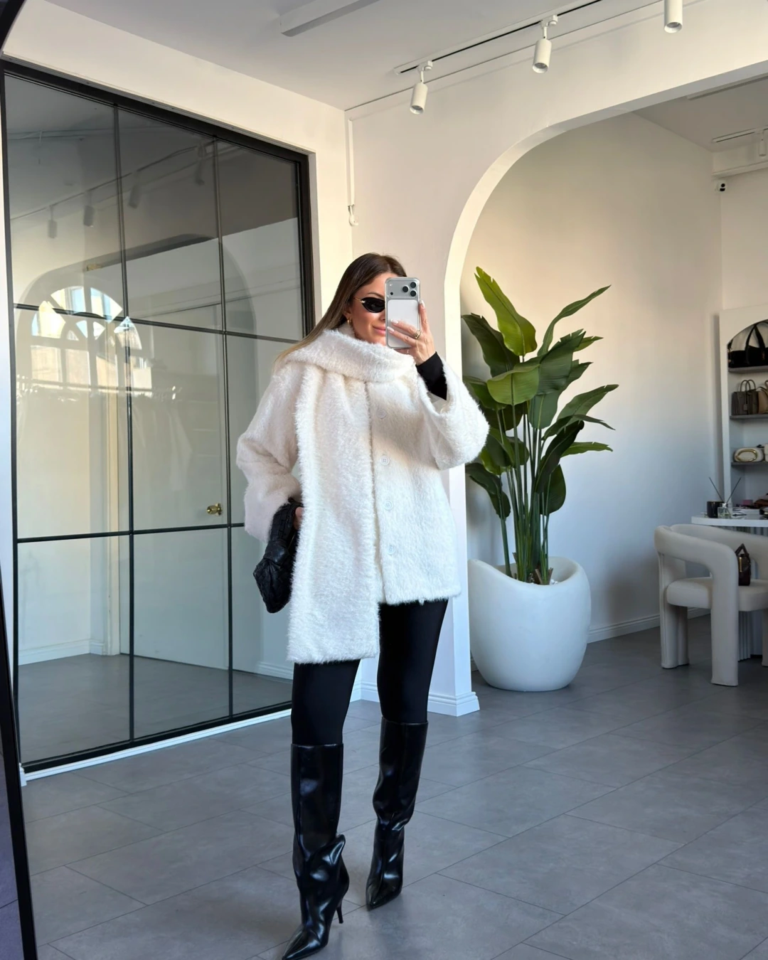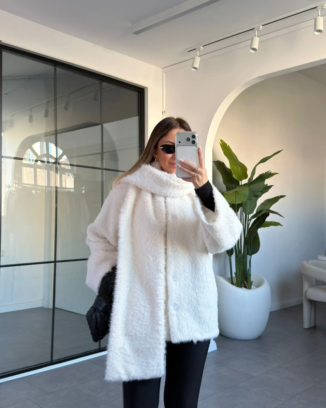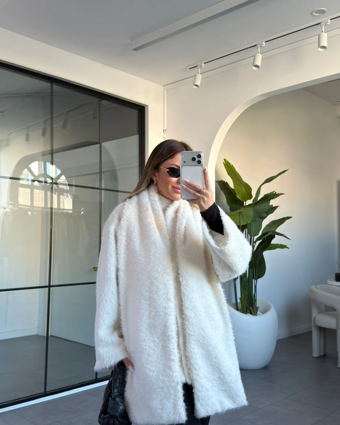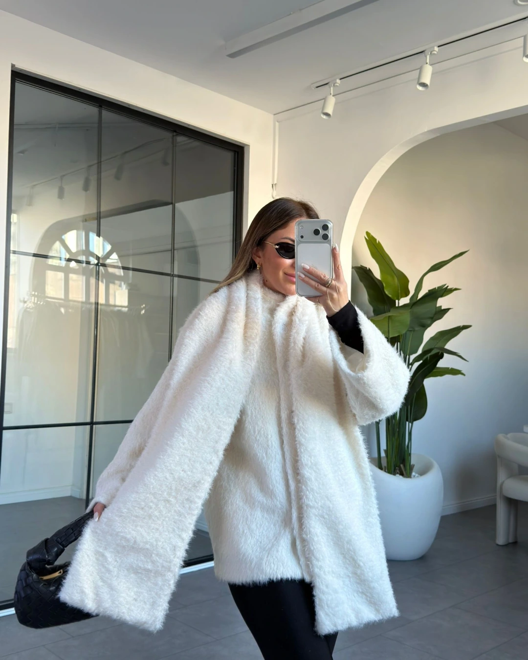 KREM ŞAL AKSESUARLI SAKALLI CEKET
