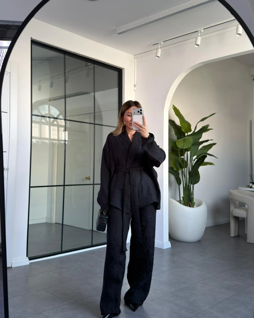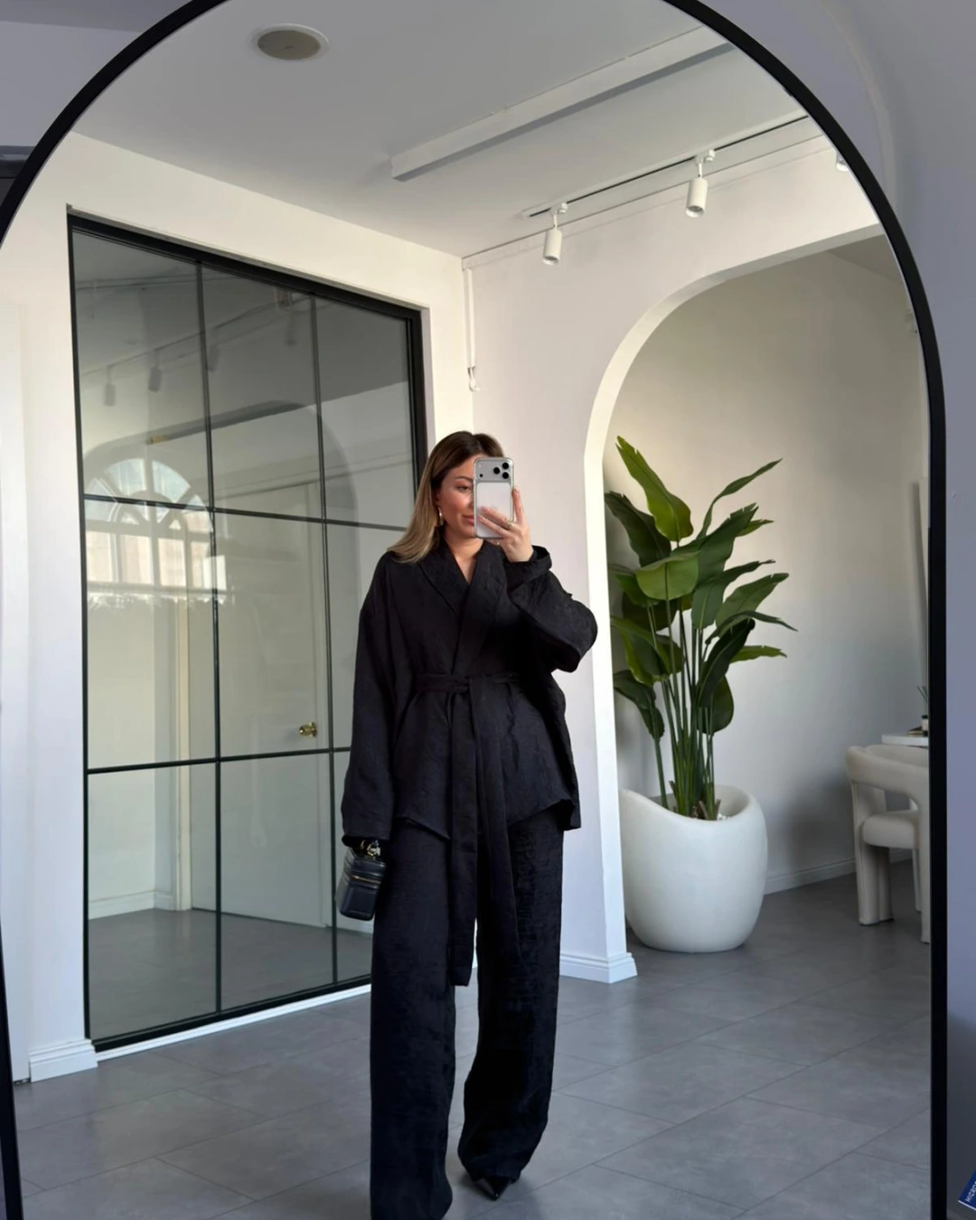 SİYAH ŞAL YAKA KİMONO TAKIM