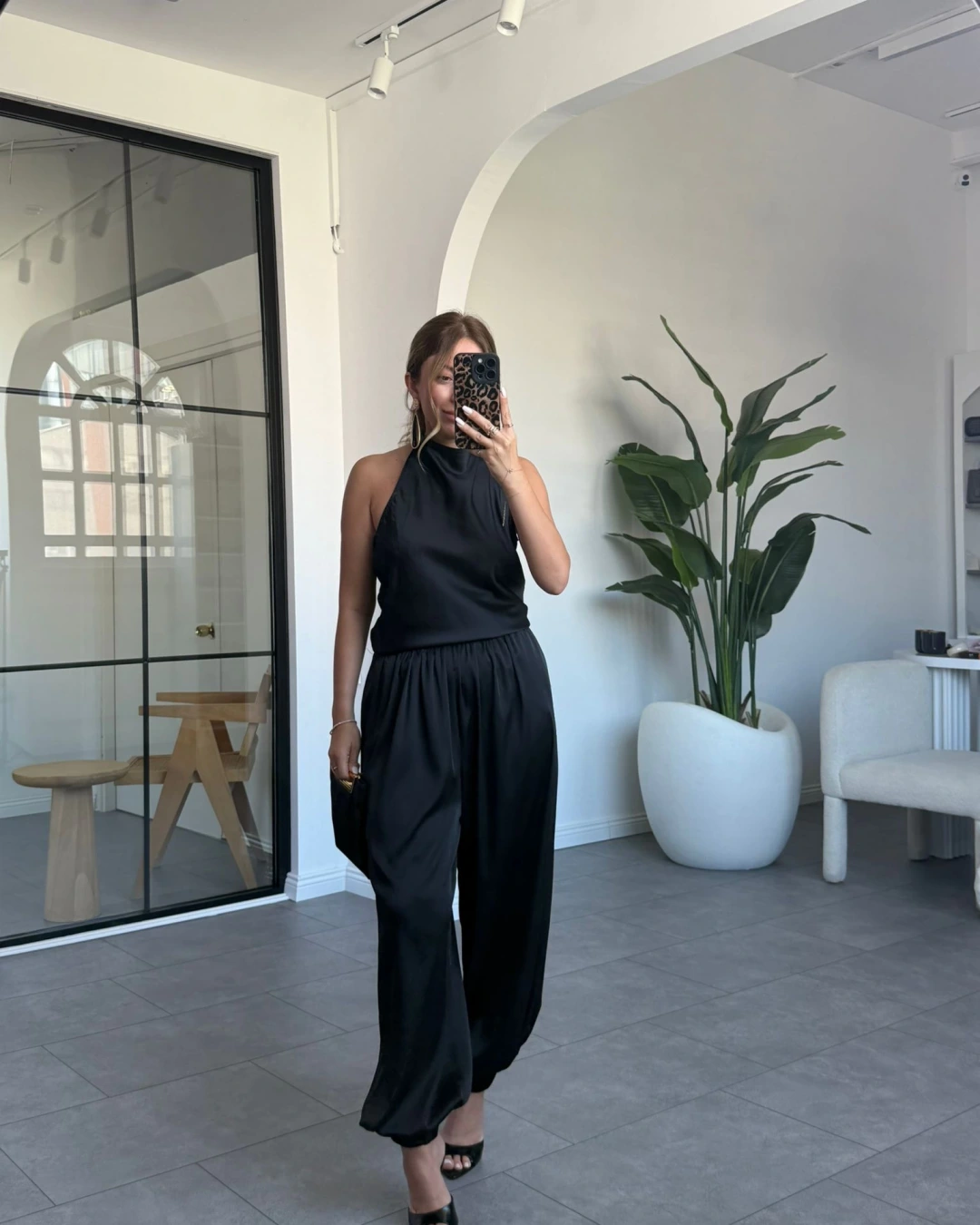 SİYAH ŞALVAR MODEL SATEN TAKIM